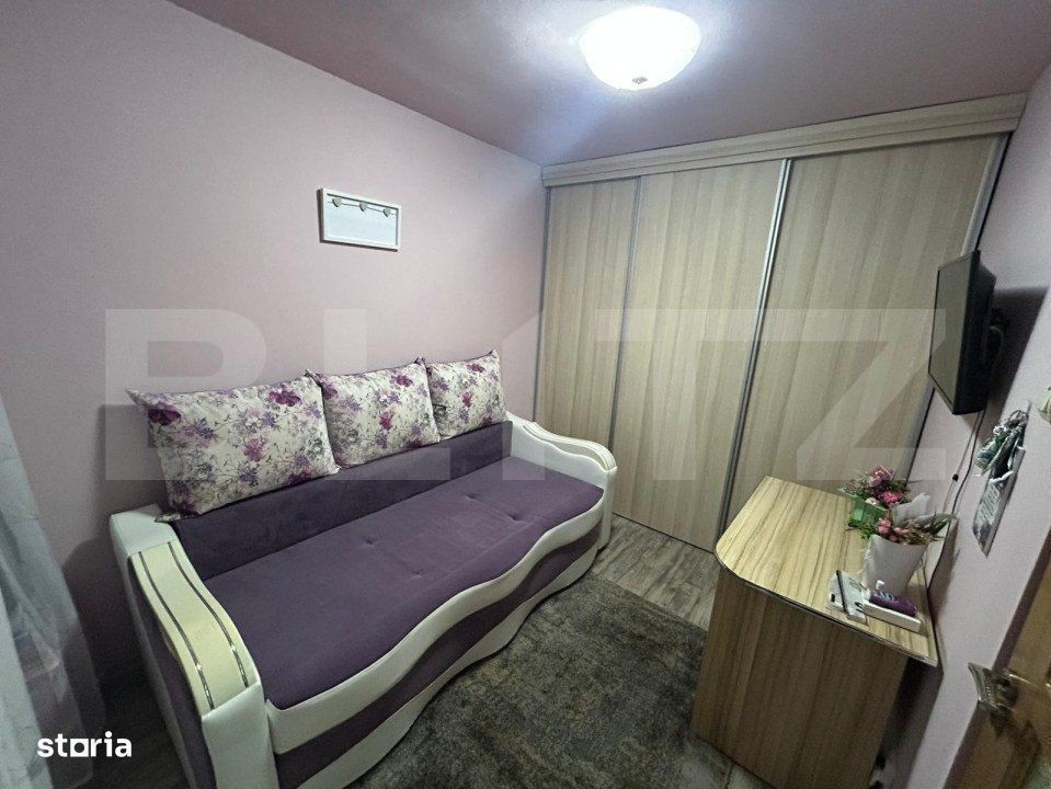Blitz vă propune spre vânzare un apartament cochet cu 2 camere, având o suprafață utilă de 38 mp, situat într-o zonă bine conectată din Aiud. Compartimentarea este eficientă și practică: 2 camere (dormitoare), bucătărie, baie și hol de acces. Confortul termic este asigurat de centrală termică proprie, oferind un ambient plăcut pe tot parcursul anului. Apartamentul se vinde complet mobilat și utilat, fiind pregătit pentru mutare imediată - ideal pentru locuire sau investiție. În apropiere se găsesc magazine alimentare, școli, grădinițe, spații de joacă pentru copii și alte facilități esențiale. Nu ratați această oportunitate! Vă așteptăm cu drag la vizionare.