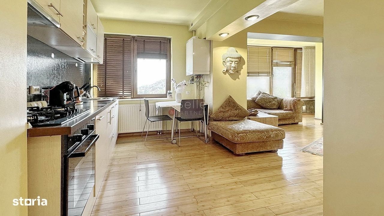 LOCALIZARE: Acest imobil este situat in zona Centrului Istoric, in imediata apropiere a Pietei Sfatului, a Parcului Nicolae Titulescu, a Centrului Comercial Star, precum si a celor mai importante obiective turistice cum ar fi: Biserica Neagra, Strada Sforii, Poarta Ecaterinei etc. COMPARTIMENTARE: - Zona de zi, care detine suprafata vitrata mare si o compartimentare generoasa, aceasta fiind open space cu bucataria si zona de noapte; - Bucataria, care este deschisa, mobilata si dotata cu plita cuptor, hota, frigider etc; - Dormitorul, care beneficiaza de o priveliste aparte; - Baia principala, dotata cu cada si aerisire ventilata; - A doua baie, dotata cu aerisire naturala si dus; - Spatiu de depozitare, avand destinatia dressing; DOTARI: - centrala termica; - tamplarie PVC, cu geam termopan; - usa metalica; - uscatorie; - pereti piatra naturala; Tranzactionarea proprietatii se va face cu mobilierul aferent prezentei ofertari. Apartamentul beneficiaza de o compartimentare generoasa si eficienta, acesta a fost modificat din 3 camere in forma actuala. IMPREJURIMI: Imobilul este situat intr-o zona de blocuri, accesul pana in Piata Sfatului facandu-se in cca. 4 minute de mers pe jos. ATRACTII ZONA: Magazine, restaurante, parcuri, școli, spitale. ACCESIBILITATE: Transport public în apropiere. NOTA: Se achita un comision standard de 2%+Tva din pretul de vanzare. Informatiile prezentate reflecta situatia reala a proprietatii, fara a constitui o oferta contractuala. Aceste date au fost obtinute verbal, de la titularul de drept al imobilului. Structura acestei prezentari nu poate fi reprodusa, fara acordul scris al The Seller and Partners.