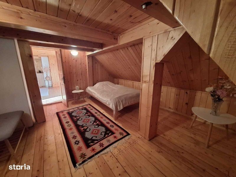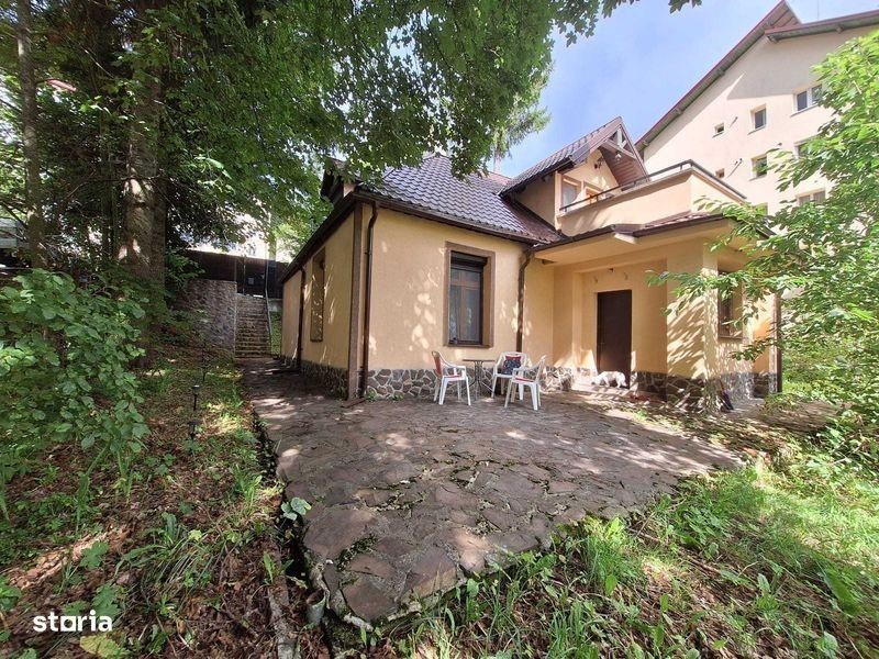 Vand casa situata in zona centrala a orasului Predeal, la aprox. 10 minute de mers pe jos de gara si aprox. 3 minute de Politie si de Primarie. Regimul de inaltime este P+M, are 5 camere si dependinte (3 bai, bucatarie si antreu) in suprafata utila de 170 m.p. + terasa + inca o camera separata de depozitare. Terenul este in suprafata de 320 m.p. din acte (400 m.p. din masuratori) si include o platforma pentru masina. Acoperisul este schimbat recent (tabla Lindab), asemenea si gardul. Totodata, centrala termica a fost schimbata acum 2 ani. Casa este foarte bine intretinuta in interior, si izolata termic pe exterior. Se vinde mobilata si utilata complet. O optiune excelenta atat ca si casa de vacanta in care sa petreci timp impreuna cu familia si/sau prietenii, cat si ca locuinta permanenta.