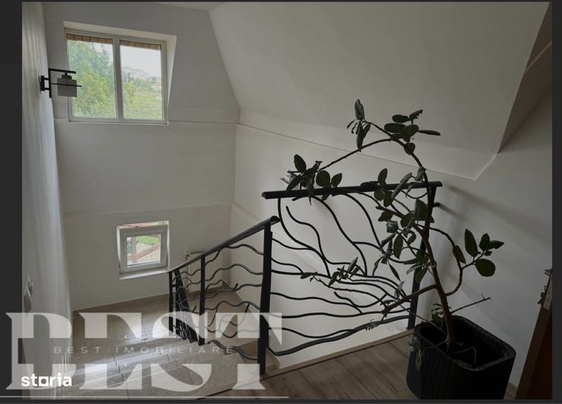 Agentia Best Imobiliare va propune Casa P+M,zona Lucian Blaga Este situata intr o zona foarte linistita Detalii: Suprafata teren:876 mp Suprafata casa:206 mp -Constructie BCA -Izolatie 5cm -Acoperis cu membrana bituminoasa tip solzi -Beci - 20,54mp -Garaj - 15mp -Ferestre PVC La parter: -baie -hol -casa scarii -Dining -Bucatarie -Living -Camara Etaj: -3 dormitoare -Baie -Hol -Dressing -Balcoane Casa are centrala pe gaz cu calorifere si aer conditionat. Se vinde utilata si mobilata. Pret: 159 900€