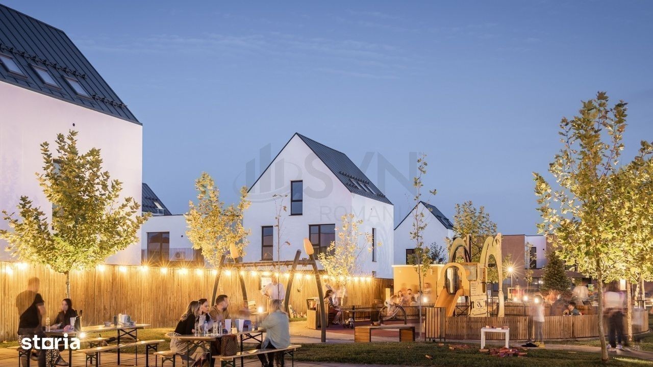 REV2004784 Inca de la intrare, casa te invita sa o descoperi! O casa moderna si eleganta, eficient compartimentata, care te face sa te simti ca acasa. Poti savura cafeaua de dimineata, pe terasa generoasa din spate si sa te bucuri in liniste de aerul proaspat si de mireasma florilor din gradina ta. Intram in casa, la parter avem zona de living generoasa, cu o suprafata vitrata pe tot peretele cu vedere catre gradina, unde te poti uita la copii cum se joaca. In zona de living te relaxezi, iar in zona de dining poti lua toate mesele cu cei dragi din familie. Sa nu uitam si de zona de bucatarie, unde veti gati cele mai bune preparate pe care toti membrii familiei le vor indragi. Pe zona de parter este prevazuta o baie, utilata complet si cu un geam generos. Tot pe zona de parter regasim o camera care poate fi folosita fie ca o camera de oaspeti, fie ca un spatiu pentru birou. La etaj sunt doua camere spatioase, cu spatii de depozitare si o baie. Din zona de hol este accesul catre terasa cu vedere catre gradina ta, unde te poti bucura fie de un apus, fie de un rasarit. Si daca vreodata te-ai gandit sa mai ai un alt spatiu al tau, ne-am gandit ca mansarda iti poate oferi un cadru special pentru diverse activitati. Fie sa te relaxezi citind o carte, fie boardgames impreuna cu cei dragi, fie sa te uiti la un film pe videoproiector, fie chiar si un spatiu de lucru! Colina Lac este un proiect de case, gandit unitar din punct de vedere al conceptiei si al realizarii. Accentul este pus pe calitatea vietii, design si o foarte buna executie. Drumul, spatiile de parcare si zonele verzi din fata locuintelor nu sunt separate cu garduri. Spatiul comun este aerisit, cu vegetatie, placut pentru plimbare. Am asigurat si intimitatea curtilor private din spatele caselor. Zilele sunt mult mai colorate cand spatiul de joaca este plin de chicotele copiilor. Foarte bine conectat la oras, cu acces rapid si sigur prin pasajul subteran din Drumul National 1, amplasat in imediata apropiere a centrului comercial DN1 Value Center, avand intrare unica din strada Electricienilor (Saftica), Colina Lac se afla in proximitatea tuturor punctelor de interes din zona. In maxim 5 minute poti ajunge la magazine pentru cumparaturile de zi cu zi, restaurante, la Therme Bucuresti sau aeroport. Zona in care este amplasat proiectul este departe de zgomotul orasului si de aerul poluat, te poti bucura de plimbari lungi in jurul ansamblului. In acest cadru, am construit cu grija pentru nevoile comunitatii noastre, cat si pentru mediul inconjurator. La Colina Lac poti spune ca ai casa pe aleea unui parc si beneficiezi de confortul unei comunitati sigure si primitoare. Colina Lac este o comunitate alcatuita din oameni de calitate, iar acestia ne-au ales pentru siguranta pe care o oferim. Am construit un spatiu comun deschis, aerisit, cu vegetatie bogata, perfect pentru plimbari placute, bucurandu-te de zonele verzi. In functie de anotimp, ochii tai se vor bucura de culorile sale. Mobilierul si finisajele sunt cu scop informativ. Pretul nu include TVA. Pentru informatii suplimentare legate de finisaje si variantele de mobilare, va rugam sa luati legatura cu agentul de vanzari.