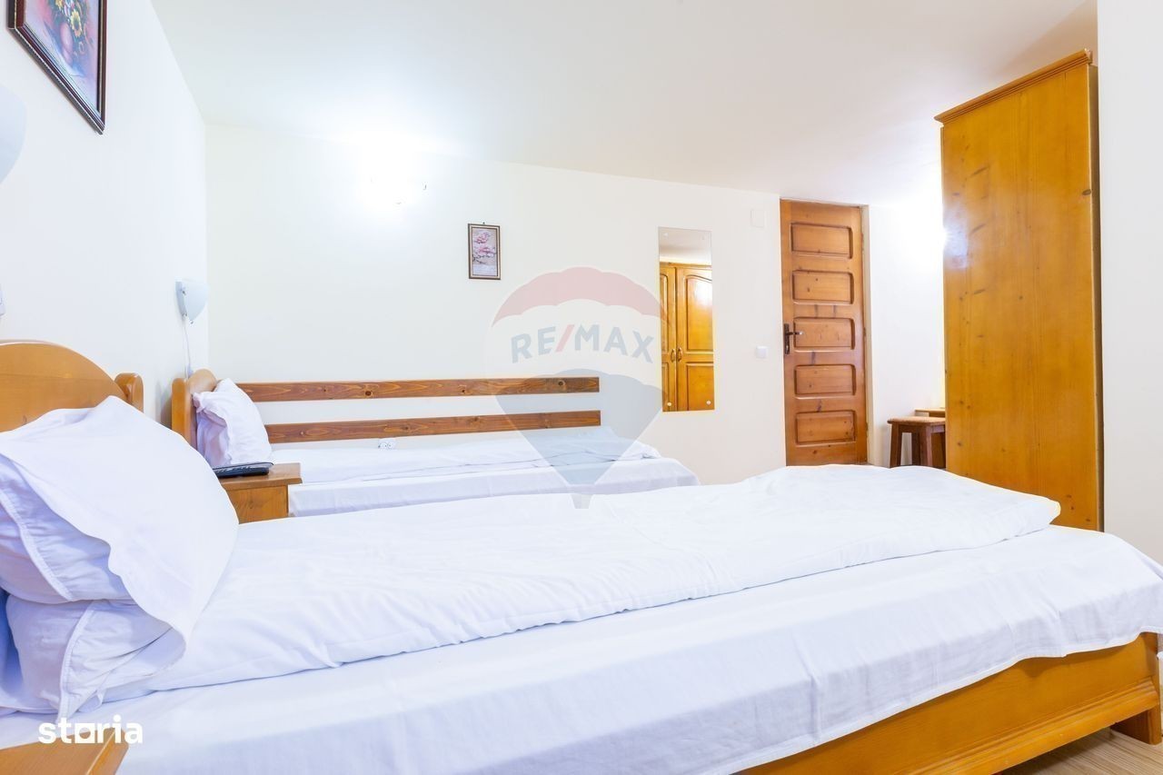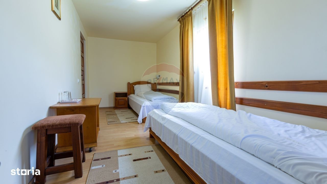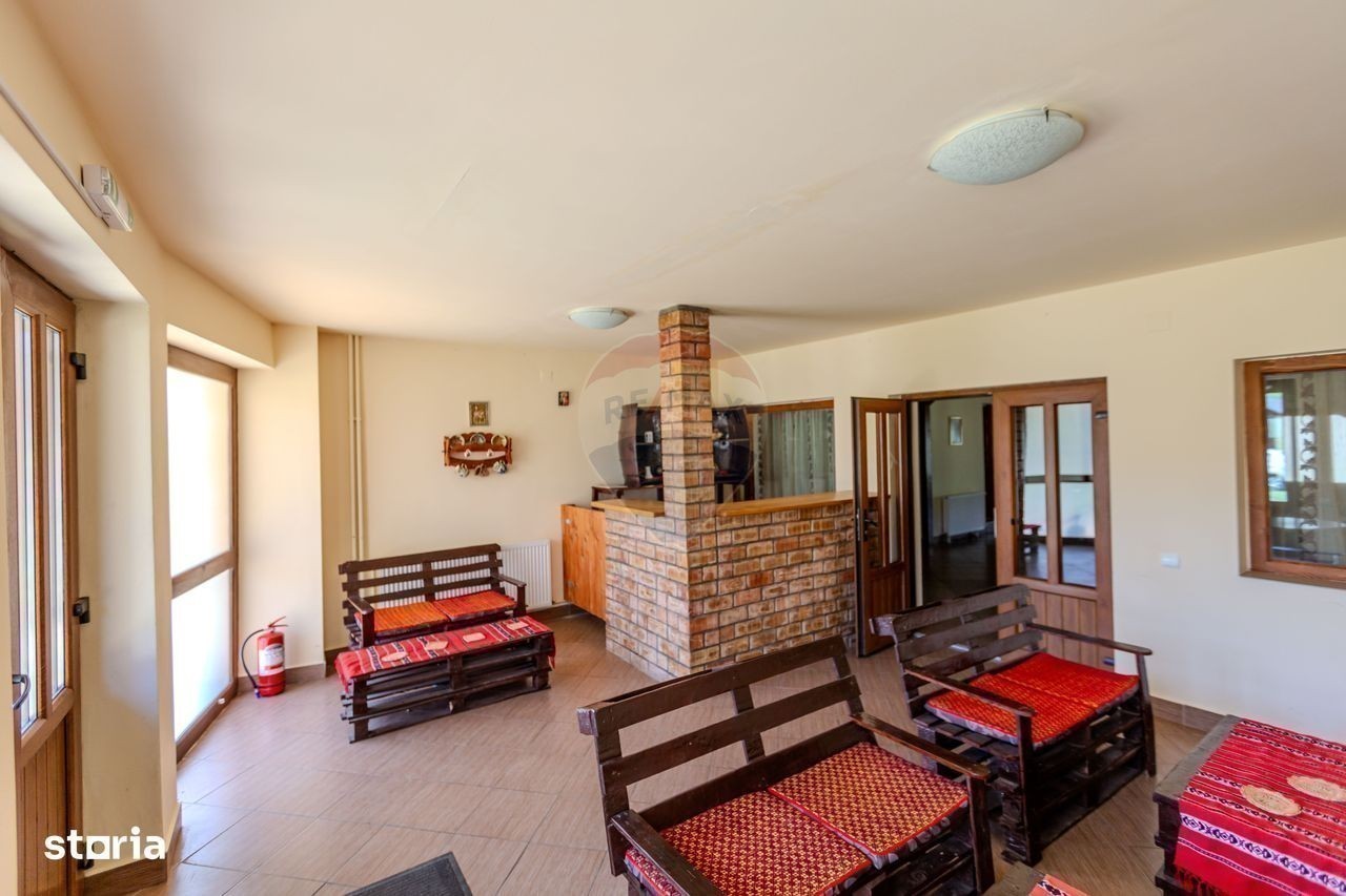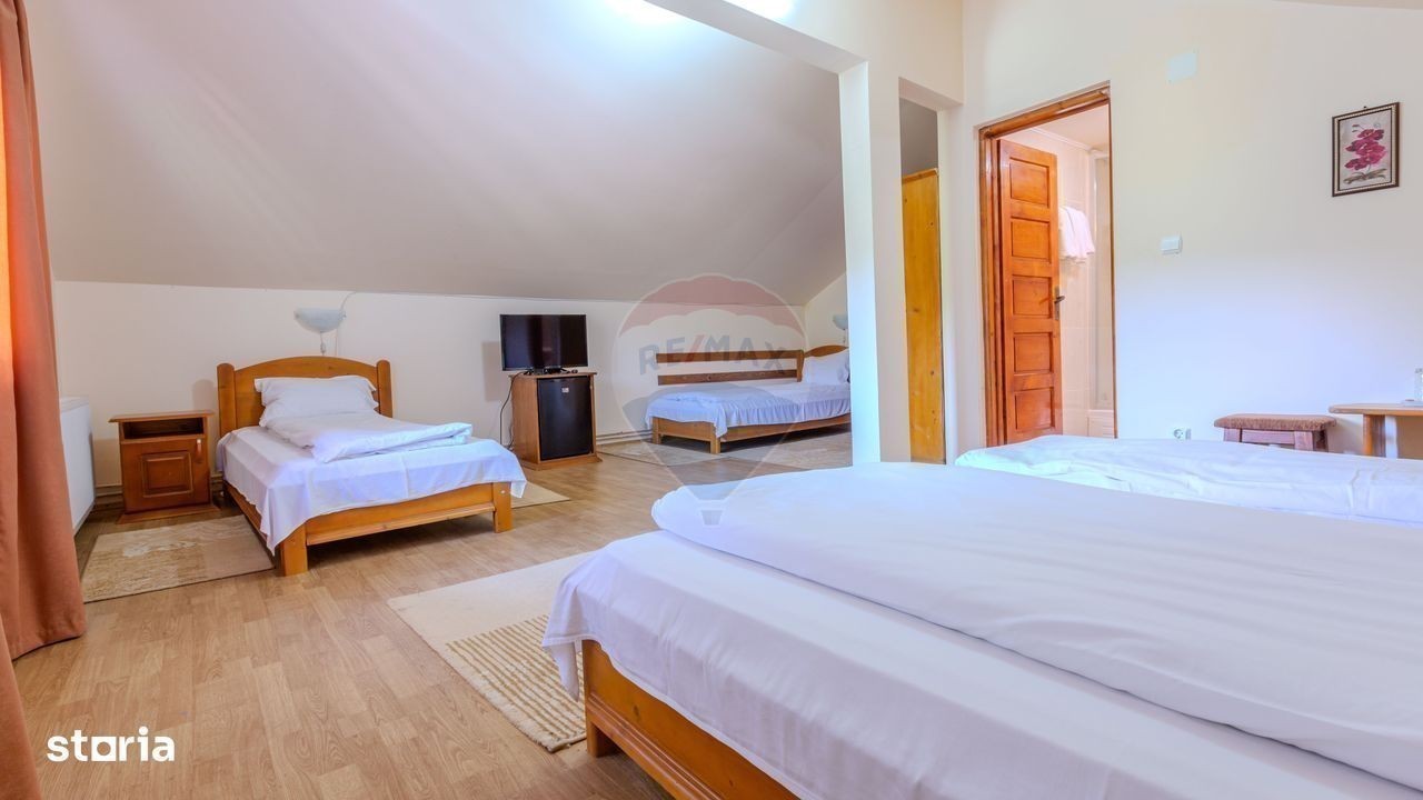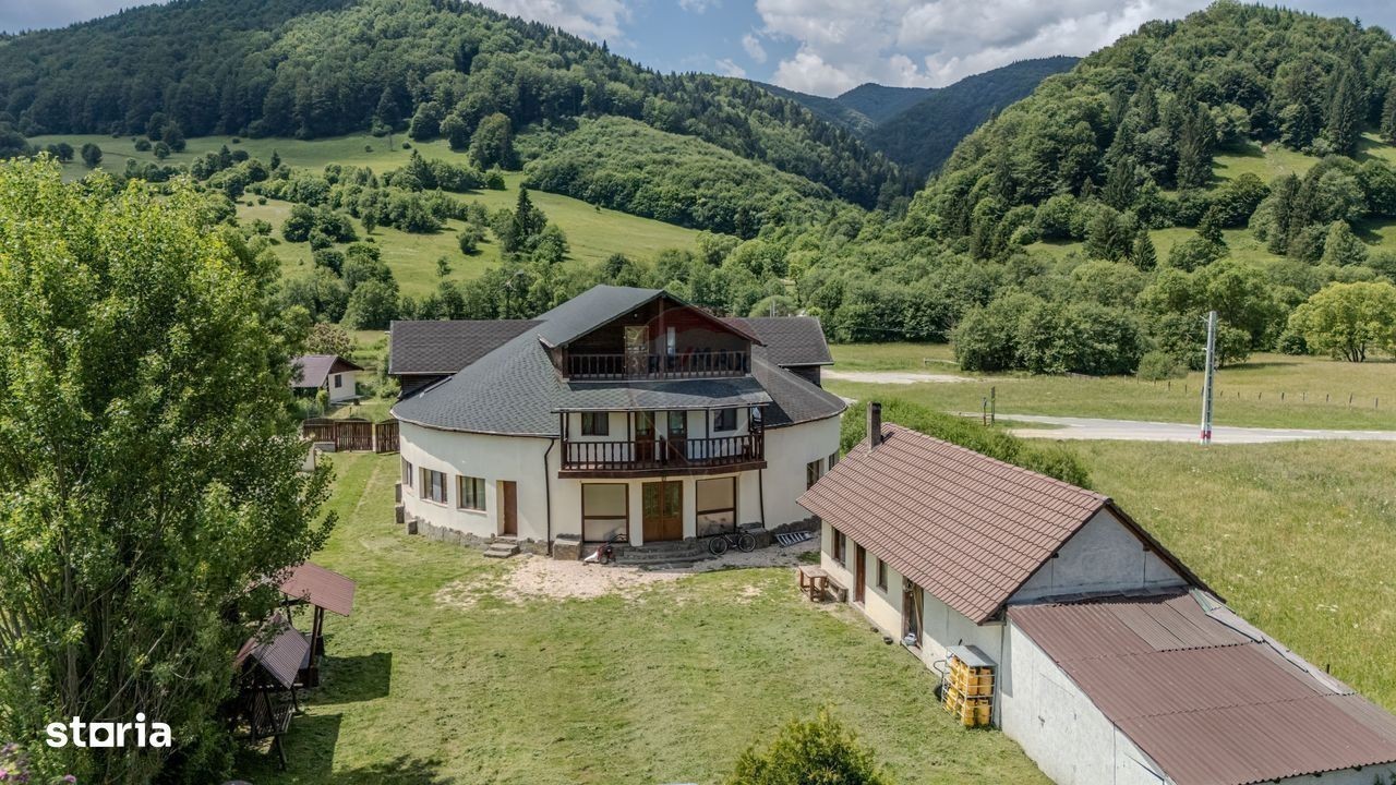 Se vinde afacere la cheie, Pensiunea La Răscruce - O bijuterie turistică, o oază de liniște și natură, în inima Vămii Buzăului! Situată intr-un loc de poveste, la doar 800 m de faimoasa cascadă Urlătoarea, 8 km de Valea Zimbrilor, pe valea dintre Muntii Ciucas si Muntii Intorsura Buzaului, Pensiunea La Răscruce este o oportunitate excelentă de investiție în turismul montan, o adevărată oază de liniște și frumusețe. Clasificată cu 3 margarete, activă în circuitul turistic, aceasta este o locație de vis, pozitionata într-un cadru natural deosebit, e locul perfect pentru cei care caută relaxare, confort și un peisaj de neuitat, îmbinand confortul modern cu tradiția, fiind ideală atât pentru relaxare, cât și pentru evenimente speciale sau vacanțe de neuitat. Cu o amplasare pe un teren generos de 13.400 mp, pensiunea se afla intr-o clădire cu parter, etaj și mansardă, complet mobilată și utilată. Dispune de 10 camere spațioase, fiecare cu baie proprie, care oferă oaspeților un refugiu perfect, în care se îmbină intimitatea și confortul absolut. De asemenea, pensiunea beneficiază de o recepție primitoare, o sală de mese spațioasă și o bucătărie interioară complet echipată, ideală pentru preparate tradiționale sau internaționale. Proprietatea mai este dotată cu o clădire separată pentru camera tehnică, unde se află centrala pe lemne ce asigură încălzirea întregii locații. În plus, restaurantul pensiunii și bucătăria exterioară de vară sunt ideale pentru petreceri și evenimente organizate în aer liber, în mijlocul naturii. Locația se mândrește și cu un sistem energetic ecologic, având trei surse de energie verde, respectiv, o turbina electrică pe apă pentru producerea curentului, panouri solare și o eoliană, alături de un branșament de curent la rețeaua națională. Această configurație asigură nu doar autonomie energetică, ci și un impact minim asupra mediului înconjurător, fiind un exemplu perfect de sustenabilitate în turismul modern. Terenul generos al pensiunii include un lac de pescuit și un spațiu verde larg, oferind oaspeților oportunități de relaxare în aer liber și momente de reconectare cu natura. Totul la pret de 500 000 euro. Această pensiune nu este doar o locație de cazare, ci un adevărat refugiu în mijlocul naturii, un loc ideal pentru cei care doresc să se bucure de liniște, confort și un peisaj de neuitat. Pensiunea La Răscruce este o oportunitate rară pentru investitori, oferind nu doar un loc de cazare de top, ci și un loc cu potențial uriaș de dezvoltare în turismul montan.
