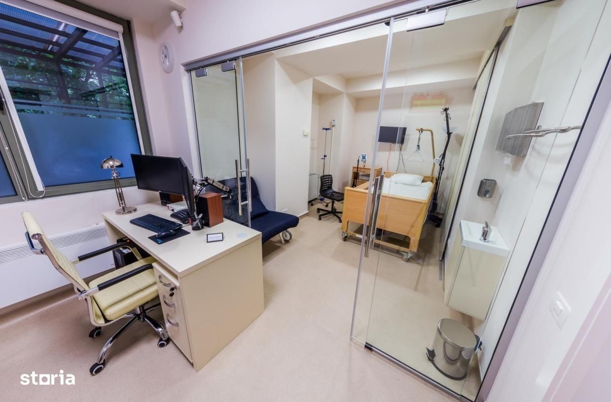 Cladirea finalizata in anul 2010 este situata intr-o zona mixta, cu blocuri de apartamente, vile si cladiri rezidentiale noi si spatii de birouri, spatii comerciale, scoli, Parcul Regina Maria etc. Accesul in si din zona se poate face de pe strada Turda / Podul Grand, Calea Grivitei, Bulevardul Ion Mihalache, astfel conexiunea este facila cu centrul, nordul si vestul capitalei. Initial proprietatea a fost inchiriata intergal unui singur chirias, dar din 2017 are mai multi chiriasi (preponderent clinici medicale 40%), cu un grad de ocupare in toata aceasta perioada de peste 96%. Actualmente imobilul este ocupat integral, cu o perioada ferma a contractelor de inchiriere intre 5 si 8 ani, generand venituri anuale de 430.000 + TVA (aceasta suma include utilitatile) Date financiare: Chiria lunara totala: 35.780 EUR + T.V.A. Chiria anuala totala incasata: 430.000 EUR + T.V.A. Toate contractele de inchiriere sunt inchise! Chiria include utilitatile si mentenanta spatiilor comune. Cladirea fost edificata pe un teren concesionat pe 49 de ani + 25 de ani. Se achita o taxa de concesiune de aprox 5000 de euro / luna. Impozit anual: 32.000 EUR Cladirea a fost achizitionata prin Unicredit Leasing, contract de leasing care poate fi preluat daca este de interes. Suma ramasa de achitat in acest momement: aprox. 900.000 EUR. Cladirea S+P+5+6R are urmatoarele suprafete: - Subsol = 542 mp - Parter = 392 mp + 4mp terasa - Etaj 1 = 430 mp + 24 mp terasa - Etaj 2 = 430 mp + 24 mp terasa - Etaj 3 = 430 mp + 24 mp terasa - Etaj 4 = 323 mp + 131 mp terasa - Etaj 5 = 317 mp + 6 mp terasa - Etaj 6 = 85 mp + 238 mp terasa. Suprafata utila neta este de 2178 mp (nu sunt incluse balcoane / terase / spatii comune). La doar 2 minute de mers pe jos este linia tramvaiului 41, statiile de autobuz sunt in imedita apropiere, la intersectia cu Calea Grivitei, respectiv cu Bulevardul Ion Mihalache, iar la 10-12 minute sunt statiile de metrou Grivita si Basarab. Cladirea dispune de locuri de parcare subterane si exterioare.