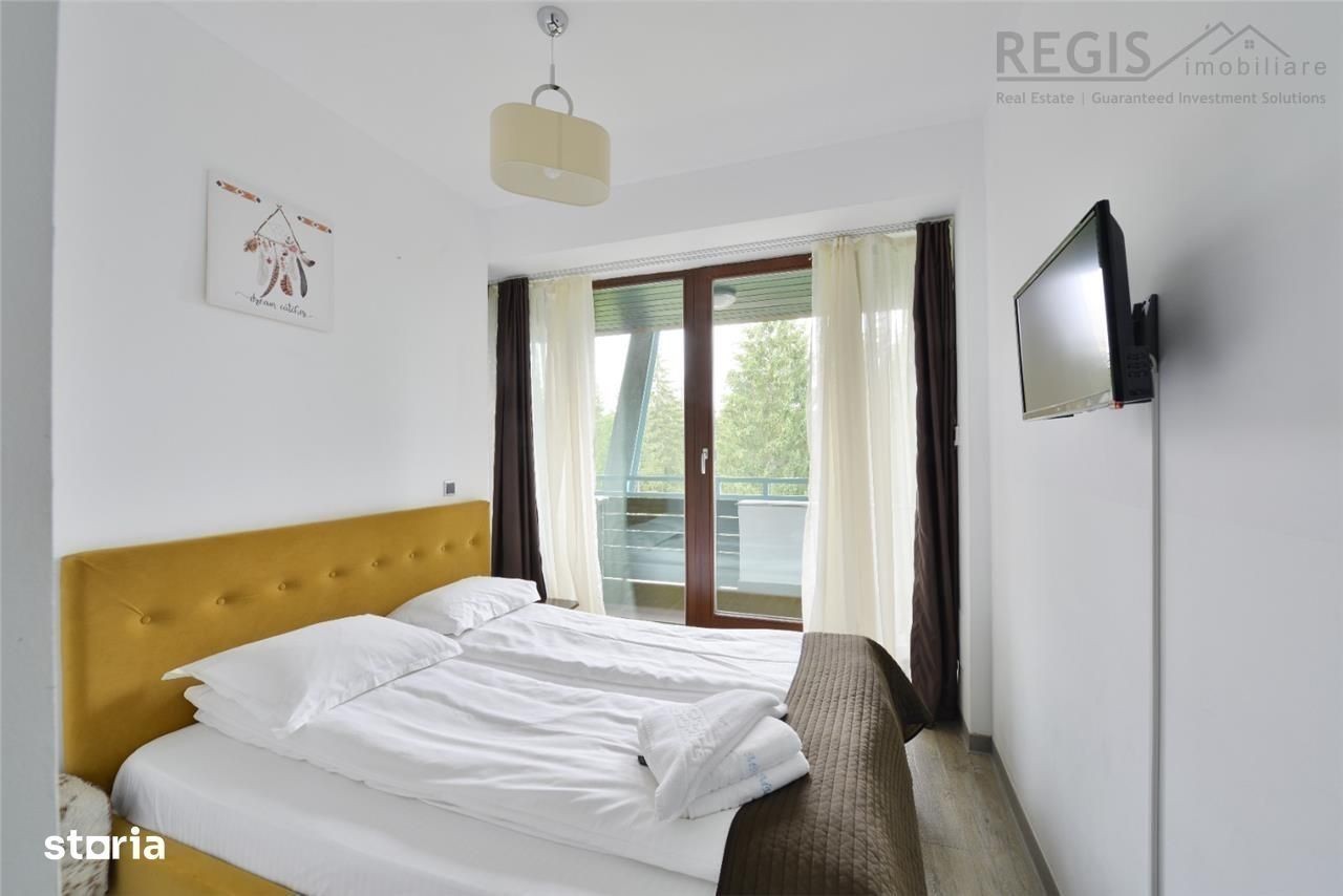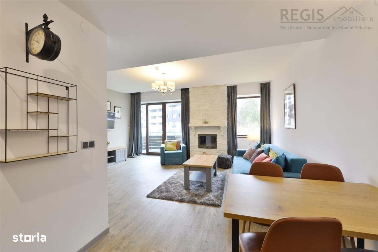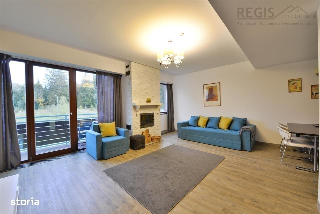 Regis Imobiliare va propune la vanzare Apartament exclusivist, situat in statiunea turistica Poiana Brasov, in complexul rezidential Silver Mountain. Video prezentare: s: watch?v=8V7VVAUnlb4 Resortul dispune de: sala de fitness, jacuzzi, piscina interioara, piscina exterioara infinity incalzita, sauna umeda si uscata), restaurant, club si 2 sali de conferinta. Fie ca doresti sa impletesti utilul cu placutul, sa obtii beneficii financiare considerabile prin exploatarea in regim hotelier si sa iti faci si tu concediile aici, fie ca dooresti sa iti bucuri viata locuind permnanent in inima muntilor dar si aproape de civilizatie, proprietatea aceasta poate fi tot ce ai visat. Verdele brazilor si zumzetul padurii te vor trezi de dimineata iar piscurile muntilor te vor incanta fie vara fie iarna. Apartamentul isi rasfata locatarii prin privelisti relaxante din fiecare camera si confort termic sporit. Cei 79 mp sunt armonios impartiti dupa cum urmeaza: - living; - 2 zone matrimoniale formate din dormitor, dresing si baie; - bucatarie; - holuri Proprietatea beneficiaza de doua terase in suprafata de 25mp Apartamentul se vinde mobilat si utilat complet, totul fiind armonios imbinat, in culori calde si linii suave. Particularitati care te fac sa te simti minunat in acest apartament: - Usa metalica dotata cu incuietoare smart controlata de pe telefonul mobil; - Pardoseala Gerflor, respectiv placi ceramice in bai; - Incalzire cu ventiloconvectoare; - Geamuri termopan cu tamplarie de aluminiu; - Electrocasnice de ultima generatie; - Mobilier exclusivist de cea mai buna calitate - Semineul cu lemn natural sa iincalzeasca atmosfera pentru seri pitoresti si zapezi de poveste - Pereti interiori finisati cu vopsea lavabila. Loc de parcare SUBTERAN se poate achiziționa la prețul de 17.500 euro. Pentru mai multe informatii si pentru a programa o vizionare, va rugam sa ne contactati. Aceasta oportunitate de a deveni proprietarul unui apartament exclusivist in mijlocul naturii la Complexul Silver Mountain este una pe care nu vreti sa o ratati! Comision agentie ZERO