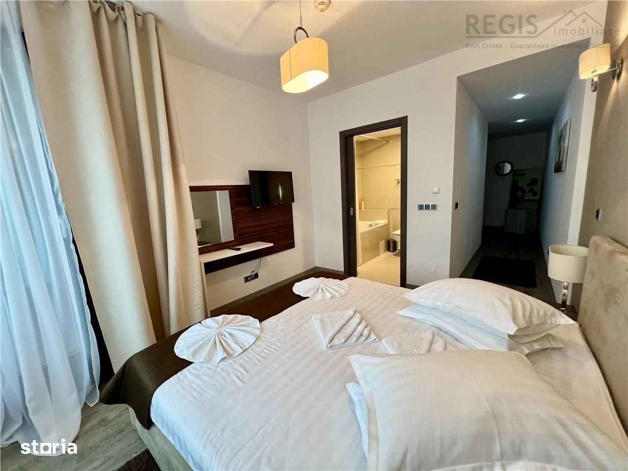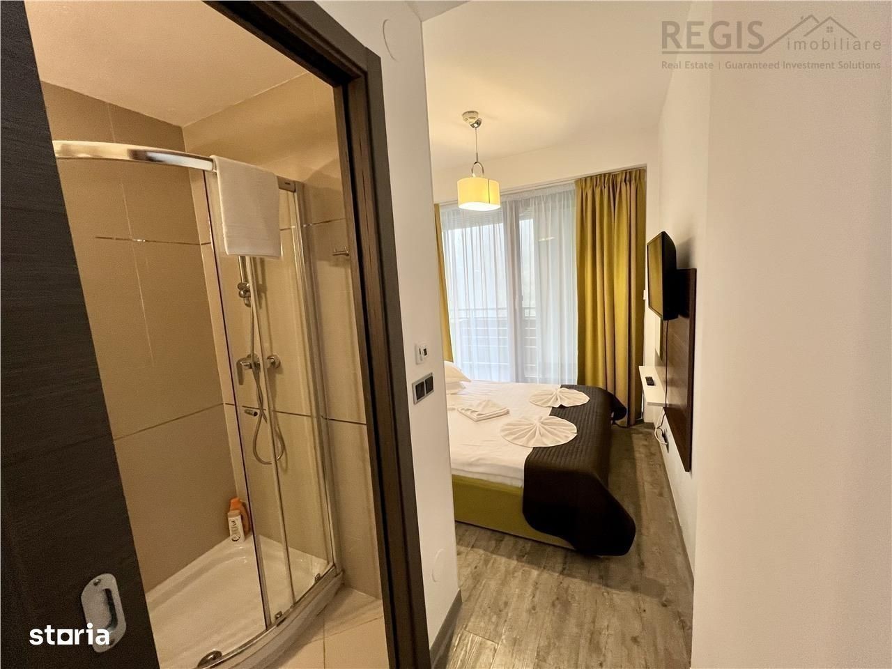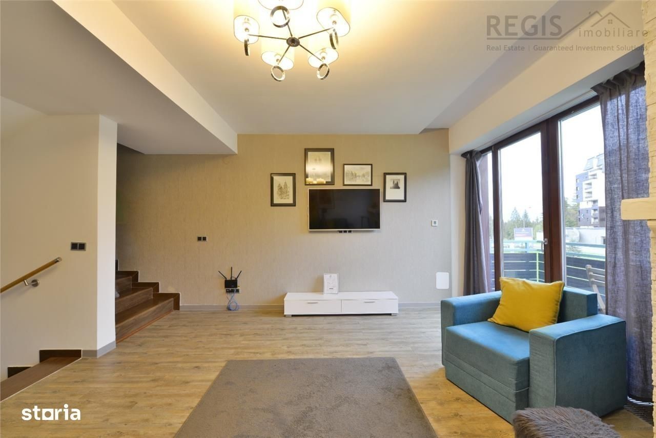 Regis Imobiliare va propune la vanzare Apartament exclusivist, situat in statiunea turistica Poiana Brasov, in complexul rezidential Silver Mountain. Video prezentare: s: watch?v=8V7VVAUnlb4 Resortul dispune de: sala de fitness, jacuzzi, piscina interioara, piscina exterioara infinity incalzita, sauna umeda si uscata), restaurant, club si 2 sali de conferinta. Fie ca doresti sa impletesti utilul cu placutul, sa obtii beneficii financiare considerabile prin exploatarea in regim hotelier si sa iti faci si tu concediile aici, fie ca dooresti sa iti bucuri viata locuind permnanent in inima muntilor dar si aproape de civilizatie, proprietatea aceasta poate fi tot ce ai visat. Verdele brazilor si zumzetul padurii te vor trezi de dimineata iar piscurile muntilor te vor incanta fie vara fie iarna. Apartamentul isi rasfata locatarii prin privelisti relaxante din fiecare camera si confort termic sporit. Cei 79 mp sunt armonios impartiti dupa cum urmeaza: - living; - 2 zone matrimoniale formate din dormitor, dresing si baie; - bucatarie; - holuri Proprietatea beneficiaza de doua terase in suprafata de 25mp Apartamentul se vinde mobilat si utilat complet, totul fiind armonios imbinat, in culori calde si linii suave. Particularitati care te fac sa te simti minunat in acest apartament: - Usa metalica dotata cu incuietoare smart controlata de pe telefonul mobil; - Pardoseala Gerflor, respectiv placi ceramice in bai; - Incalzire cu ventiloconvectoare; - Geamuri termopan cu tamplarie de aluminiu; - Electrocasnice de ultima generatie; - Mobilier exclusivist de cea mai buna calitate - Semineul cu lemn natural sa iincalzeasca atmosfera pentru seri pitoresti si zapezi de poveste - Pereti interiori finisati cu vopsea lavabila. Loc de parcare SUBTERAN se poate achiziționa la prețul de 17.500 euro. Pentru mai multe informatii si pentru a programa o vizionare, va rugam sa ne contactati. Aceasta oportunitate de a deveni proprietarul unui apartament exclusivist in mijlocul naturii la Complexul Silver Mountain este una pe care nu vreti sa o ratati! Comision agentie ZERO