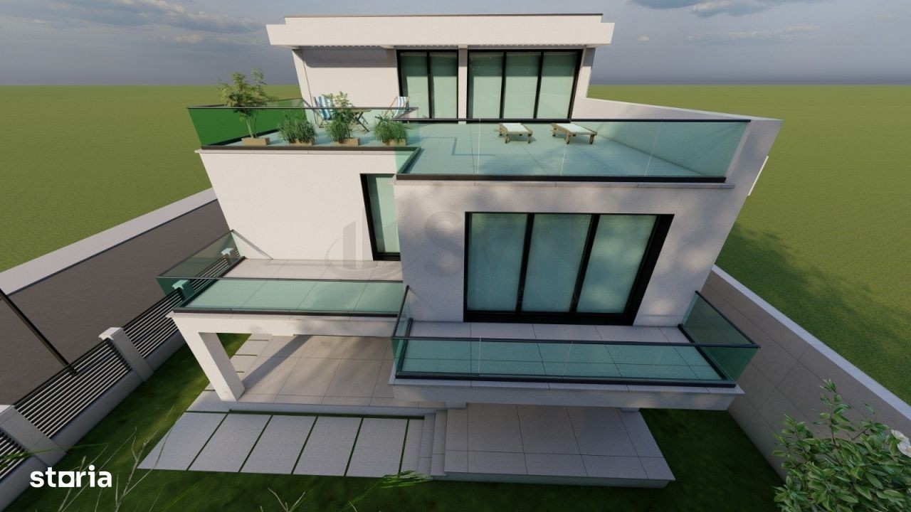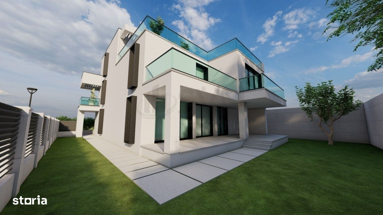 REV2002412 SVN Romania are deosebita placere sa va ofere spre vanzare o vila cu o arhitectura eleganta, avangardista, construita in stil mediteranean, cu camere luminoase si spatioase, ambient foarte placut si primitor, compartimentare inteligenta si eficienta, oferind noilor proprietari flexibilitate in amenajare per nevoi, finisaje premium, curte amenajata cu mult bun gust - o oaza de liniste perfecta pentru familia ta! Pozitionarea vilei este una de invidiat, intr-un decor de poveste, intr-una dintre cele mai exclusiviste si dezirabile zone din nordul Bucurestiului din Corbeanca. Infrastructura existenta (aflata in continua expansiune) este una de invidiat, Corbeanca fiind unul dintre orasele ce beneficiaza de o multime de facilitati, dispuse omogen pe intreaga intindere a acestuia. Dintre facilitati, le vom spicui doar pe cele mai importante: multiple zone comerciale cu magazine si supermarketuri (DN1 Value Centre, Mega Image, Lidl), restaurante, cafenele, terenuri de sport, piscine, locuri de joaca pentru copii, cabinete medicale, farmacii, benzinarii, curatatorii / spalatorii ecologice, scoli si gradinite de stat sau private, inclusiv acces la mjloacele de transport in comun. De asemenea, viitorii proprietari pot accesa facilitatile de sport si wellness ce se regasesc in Corbeanca sau in vecinatate, precum: piscine, sali de fitness, aerobic, SPA, cursuri de inot, de tenis sau sporturi de contact; in plus, la doar 10 minute distanta regasim paradisul Therme Bucuresti, unde va puteti bucura de relaxare in sezlongurile cu hidromasaj, jacuzzi, sesiuni de masaj si multe altele! Vila individuala are un regim de inaltime P+1E, este construita conform celor mai riguroase standarde de calitate pe un teren de 500 mp, cu o suprafata desfasurata de 345 mp, ideala pentru o familie ce isi doreste un camin confortabil si primitor, cu un design inovator, aer curat si o comunitate de calitate. Vila va fi bransata la toate utilitatile din reteaua publica: energie electrica, gaze naturale, put propriu, fosa septica, telefon / internet fibra optica de mare viteza / cablu TV. Casa este conceputa pe parter si etaj, unde se regaseste o superba terase, care sa va ofere in fiecare zi o priveliste de invidiat, la superlativ. Beneficiind de o compartimentare deosebita, cu suprafete vitrate generoase si un interior spatios, cu un design functional si echilibrat, vila dispune de 5 camere, din care 4 dormitoare, living imens cu zona de dining, spatiu destinat hobby-urilor, bucatarie spatioasa, 3 bai, 2 dressing-uri, camera tehnica, garaj si multiple locuri de parcare in fata gardului proprietatii. Echipele de designeri, arhitecti si constructori nu au precupetit absolut nici un efort, alegand cele mai bune materiale disponibile si punand accent pe calitate, confort, functionalitate si durabilitate, pentru a obtine o locuinta in care fiecare detaliu a fost gandit si implementat cu atentie deosebita. Suprafata imensa a casei, de 345 mp desfasurati, permite o compartimentare eficienta, cu camere spatioase si dependinte, dupa cum urmeaza: accesul in vila este realizat prin intermediul unei terase exterioare partial acoperite, cu scari; in continuare parterul include: un hol spatios la intrare (8.00 mp), un living imens cu o zona de dining (43.00 mp), bucatarie generoasa (15.00 mp), un dormitor / birou / camera de oaspeti primitor (14.00 mp), grup sanitar ce deserveste zona de parter (8.00 mp), camera tehnica (8.00 mp - ce poate fi utilizata si ca spalatorie / uscatorie); la exterior beneficiati de un garaj partial inchis (23.00 mp), o terasa exterioara absolut imensa, semi-inchisa (50.00 mp) si o gradina, amenajata cu gazon, unde va puteti relaxa alaturi de familie si prieteni, dupa o zi tracasanta. Compartimentarea etajului 1 este una ideala, dupa cum urmeaza: - scarile de acces la etaj se termina cu un antreu foarte spatios (15.00 mp), de unde se realizeaza accesul catre celelalte camere; - in continuare regasim 2 dormitoare (de 15.00 mp, respectiv 18.00 mp), un dressing (5.00 mp), un grup sanitar comun (9.00 mp), un dormitor matrimonial deosebit
