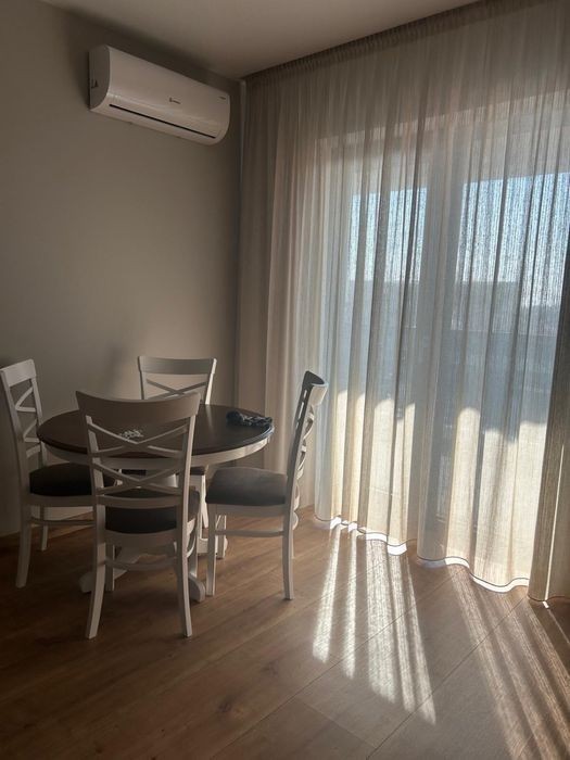 Inchiriez apartament cu 2 camere la etajul 3 in complex Flamingo situat intr-o zona linistita si accesibila. Apartamentul este complet mobilat si utilat cu mobila noua si electrocasnice moderne noi, ( masina de spalat rufe,masina de spalat vase, combina frigorifica incorporabila, plita electrica, cuptor),incalzire in pardoseala si aer conditionat. Dispune de o bucatarie open-space, un living spatios si luminos, dormitor generos, baie moderna. Un mare avantaj este reprezentat de faptul ca blocul este foarte bine izolat termic si ca in apartament sunt 21 grade C fara a fi pornita caldura in pardoseala pe timpul iernii. Complexul in care este situat apartamentul este dotat cu loc de joaca pentru copii si foisor inchis cu gratar si loc de servit masa. Pret 650€+1 luna garantie