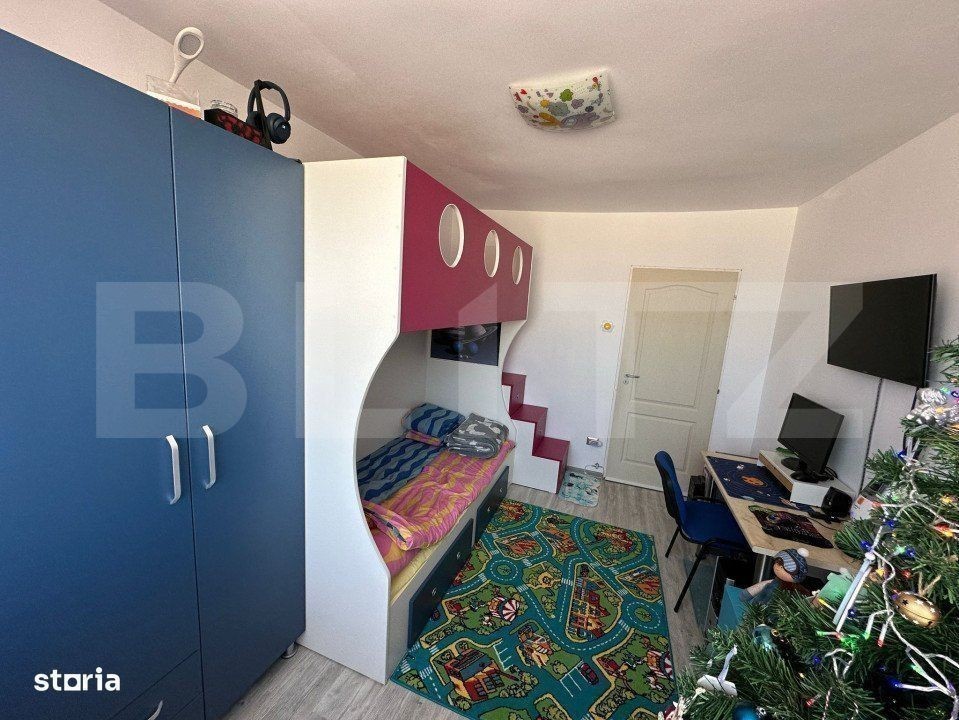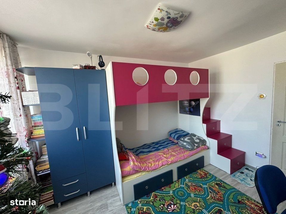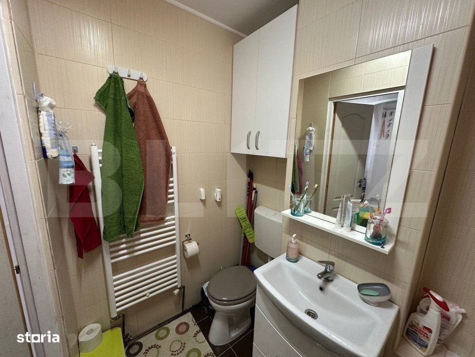 BLITZ vă prezintă un apartament cu 2 camere, 49 mp, este situat într-o zonă foarte căutată, oferind un confort excelent și facilități care îndeplinesc nevoile tuturor locatarilor. Apartamentul dispune de un hol generos, o baie complet utilată cu geam pentru ventilație naturală, o bucătărie funcțională și un balcon închis, perfect pentru relaxare pe timpul zilei sau pentru depozitare. De asemenea, apartamentul se află la etajul 8 dintr-un bloc cu 10 nivele, dar nu există nicio problemă în privința accesibilității datorită liftului modern disponibil. Blocul este bine întreținut, iar scara este foarte curată și ordonată, ceea ce contribuie la confortul zilnic al locatarilor. Vecinii sunt prietenoși și liniștiți, creând o atmosferă plăcută și relaxantă în jurul apartamentului. Printre dotările importante se numără centrala termică proprie și aerul condiționat, care garantează confortul termic indiferent de sezon. Geamurile de termopan asigură izolație fonică și termică, iar ușa metalică oferă un plus de siguranță și protecție. De asemenea, apartamentul beneficiază de proximitatea unui supermarket Profi, ceea ce fac cumpărăturile de zi cu zi extrem de convenabile. Această locuință este perfectă pentru cei care își doresc un trai modern, într-o locație centrală, cu acces rapid la facilități esențiale și într-un bloc foarte bine îngrijit.