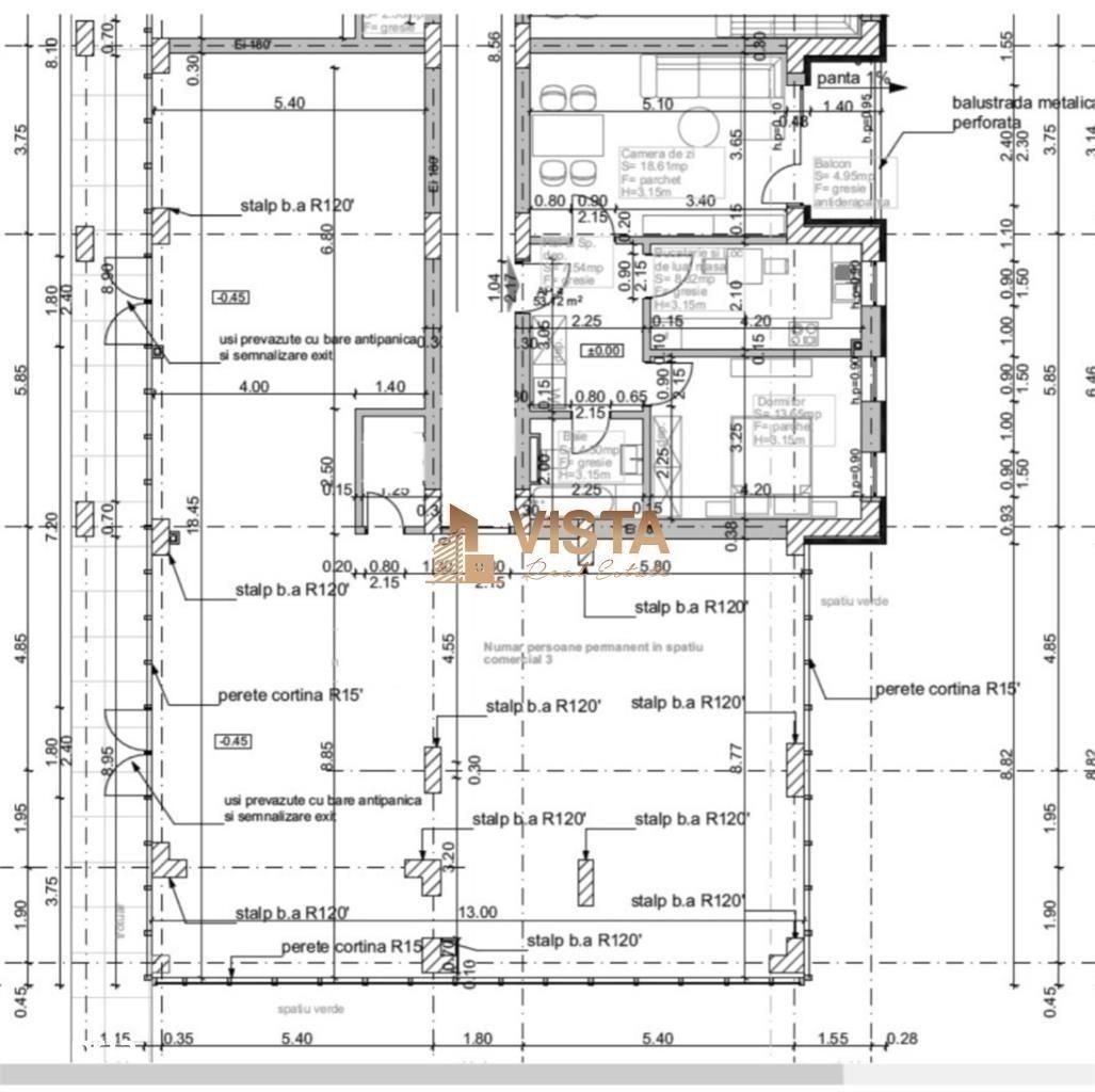 Vista Real Estate va propune spre inchiriere un spatiu comercial. Spatiul se perda la gri, oferindu-i viitorului chirias posibilitatea de a-l amenaja dupa preferitele si nevoile sale. Spatiul cu suprafata utila de 168 mp, se poate compartimenta perfect pentru spatii de birouri, showroom, etc. Imobilul dispunde de un loc de parcare. Conform certificatului de performanta energetica, apartamentul prezinta urmatorii indicatori de performanta: - clasa energetica A, - consum anual specific de energie 181.26 kwh mp.an, - indicele de emisie echivalent CO2 =33.19 kgCO2 mp.an, - consum anual specific de energie din surse regenerabile 0 kwh mp.an. Vista Real Estate, formata dintr-o echipa tanara de profesionisti in domeniul imobiliar, este gata sa te reprezinte indiferent de nevoia ta imobiliara: servicii de intermediere si consultanta, promovare, evaluarea proprietatii, asistenta juridica, investitii imobiliare și administrarea proprietatilor. Noi credem ca tranzactia imobiliara este incheiata atunci cand persoanele care ne trec pragul recomanda, oricand, fara ezitare, Vista Real Estate.