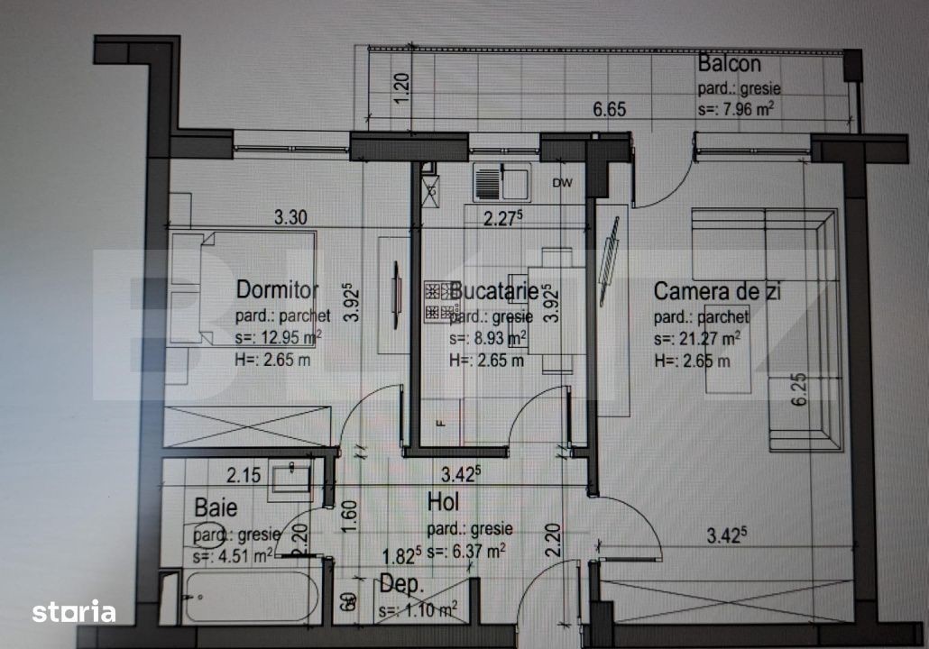 Apartament 2 camere, spatios 62 mp + balcon 8 mp, zona Tractorul