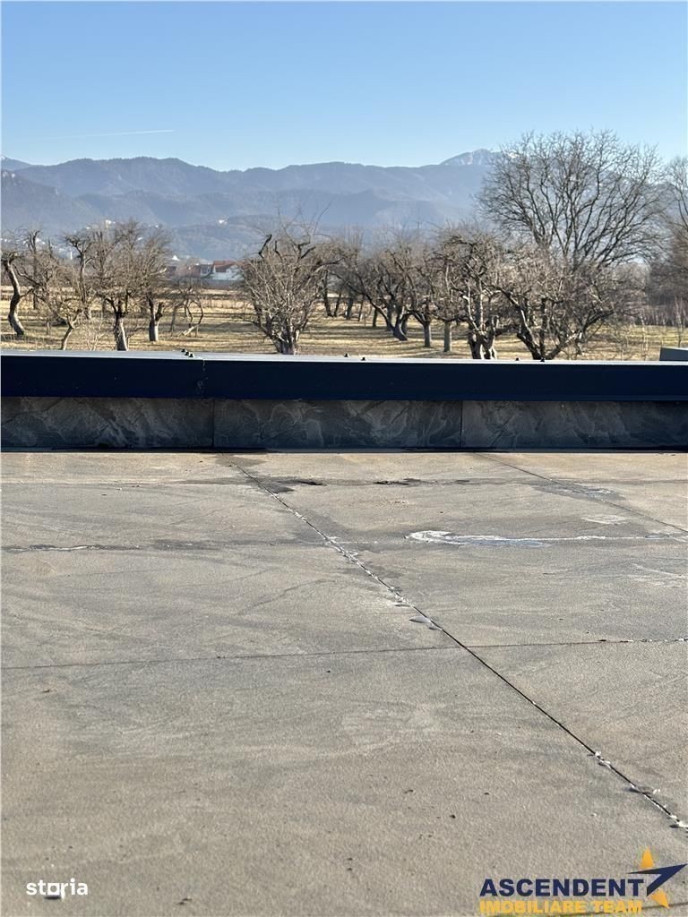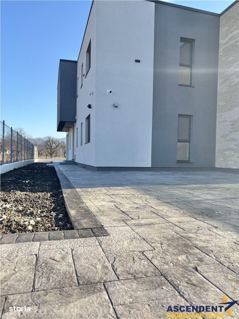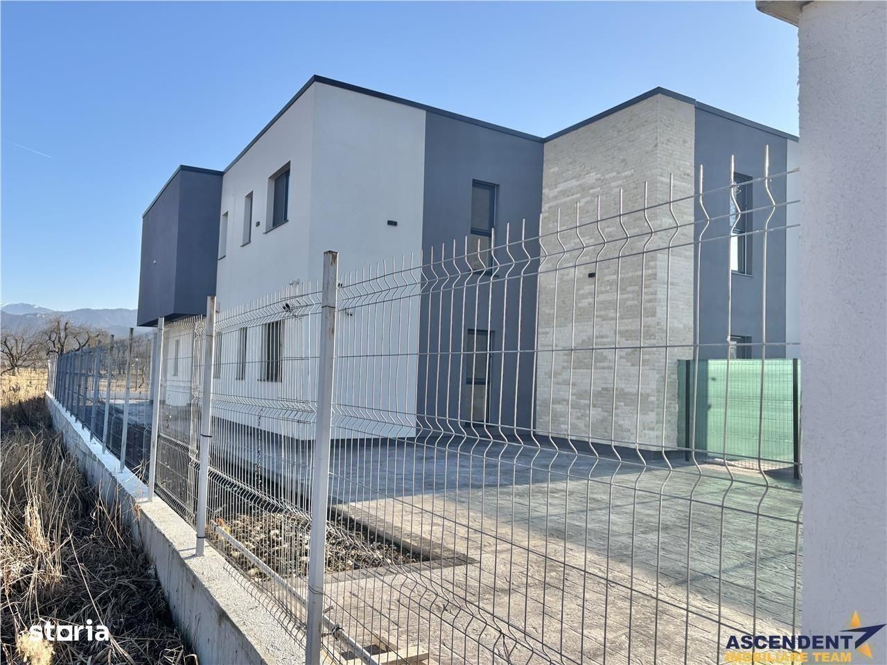 Comision cumparator 0%. ASCENDENT IMOBILIARE propune spre vanzare in sistem de reprezentare exclusiva, o vila deosebita, tip duplex, situata in Brasov, la 8 minute de centrul istoric. Prin vasta experienta a constructorului si viziunea proprietarului, imobilul se remarca printr-o arhitectura cubica moderna, cu o configuratie speciala, conferind atat la interior spatii generoase si luminoase, cat si la exterior linii, cadre si unghiuri extrem de atractive. Proprietatea este construita pe un teren de 730 mp si este impartita in doua unitati locative, fiecare cu 365 mp teren aferent, una dintre acestea fiind deja locuita. Desfasurata pe 161 mp utili, vila este structurata astfel: La parter: living cu bucatarie open-space de peste 40 mp, doua holuri, dormitor, baie si camera tehica, La etaj: trei dormitoare, din care doua cu acces pe o terasa de 25 mp, cu o priveliste spectaculoasa, hol si baie. Imobilul dispune de toate utilitatile, poarta automatizata, sistem de alarma si supraveghere video, incalzire in pardoseala, o suprafata vitrata extrem de generoasa marca Salamander, o scara interioara metalica cu balustrada, iar calitatea materialelor si a executiei lucrarilor, indeplinesc si cele mai exigente cerinte. Casa se preda la stadiul de alb, tocmai ca viitorul proprietar sa-si poata pune amprenta in personalizarea interiorului dupa propriile gusturi si preferinte. Consultant dedicat ofertei, GEORGE MOSOR Tel whatsapp