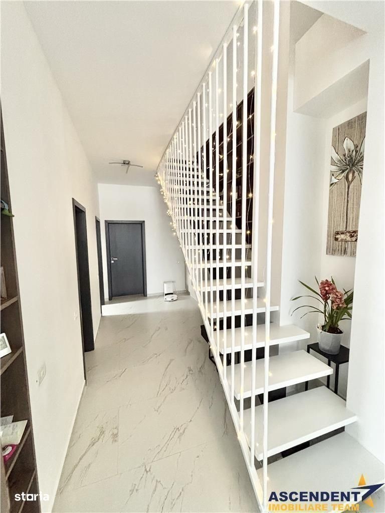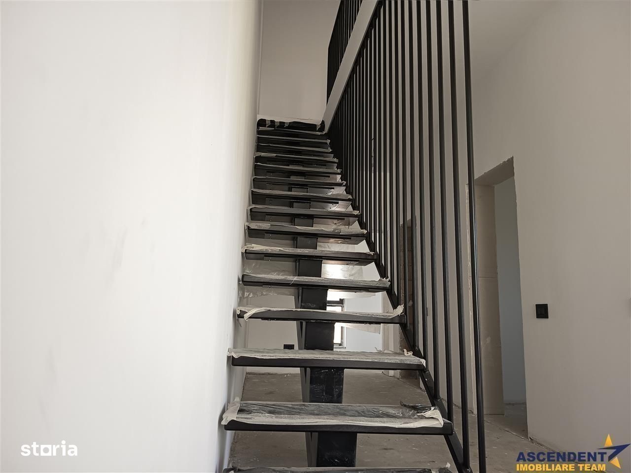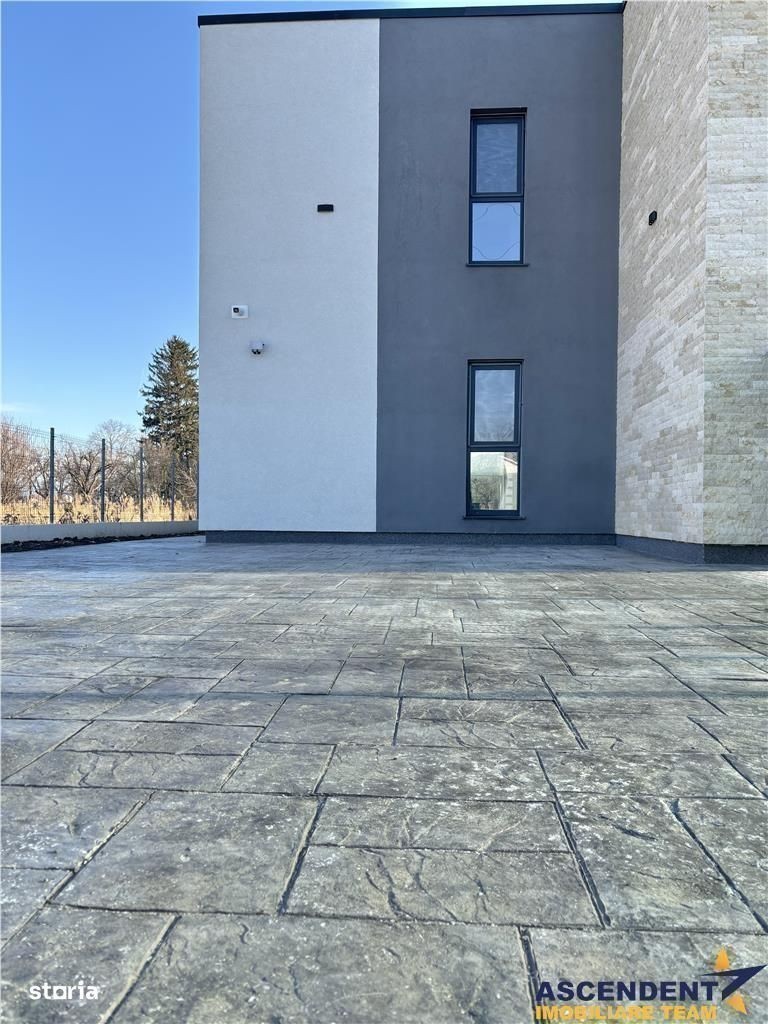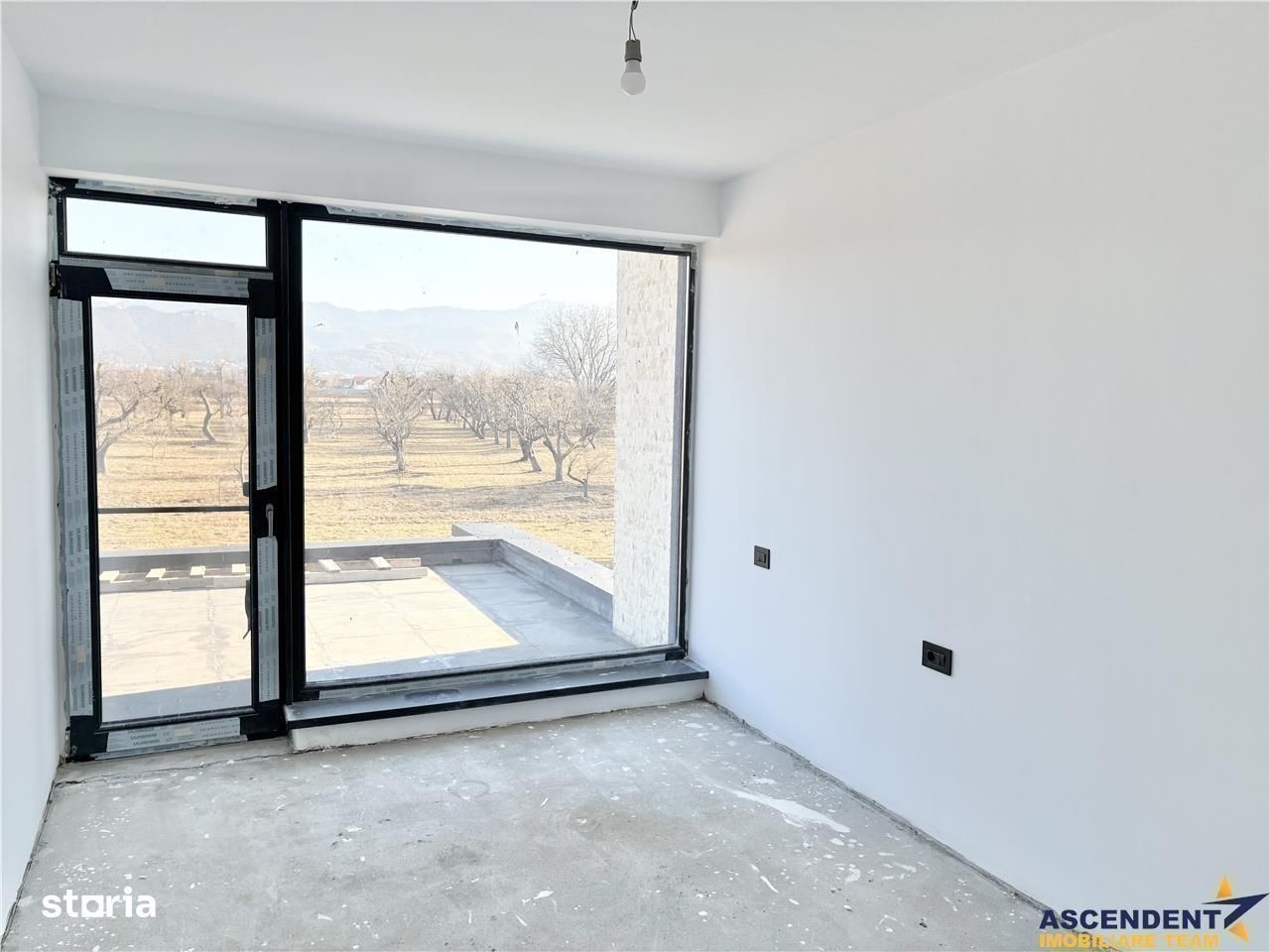 Comision cumparator 0%. ASCENDENT IMOBILIARE propune spre vanzare in sistem de reprezentare exclusiva, o vila deosebita, tip duplex, situata in Brasov, la 8 minute de centrul istoric. Prin vasta experienta a constructorului si viziunea proprietarului, imobilul se remarca printr-o arhitectura cubica moderna, cu o configuratie speciala, conferind atat la interior spatii generoase si luminoase, cat si la exterior linii, cadre si unghiuri extrem de atractive. Proprietatea este construita pe un teren de 730 mp si este impartita in doua unitati locative, fiecare cu 365 mp teren aferent, una dintre acestea fiind deja locuita. Desfasurata pe 161 mp utili, vila este structurata astfel: La parter: living cu bucatarie open-space de peste 40 mp, doua holuri, dormitor, baie si camera tehica, La etaj: trei dormitoare, din care doua cu acces pe o terasa de 25 mp, cu o priveliste spectaculoasa, hol si baie. Imobilul dispune de toate utilitatile, poarta automatizata, sistem de alarma si supraveghere video, incalzire in pardoseala, o suprafata vitrata extrem de generoasa marca Salamander, o scara interioara metalica cu balustrada, iar calitatea materialelor si a executiei lucrarilor, indeplinesc si cele mai exigente cerinte. Casa se preda la stadiul de alb, tocmai ca viitorul proprietar sa-si poata pune amprenta in personalizarea interiorului dupa propriile gusturi si preferinte. Consultant dedicat ofertei, GEORGE MOSOR Tel whatsapp