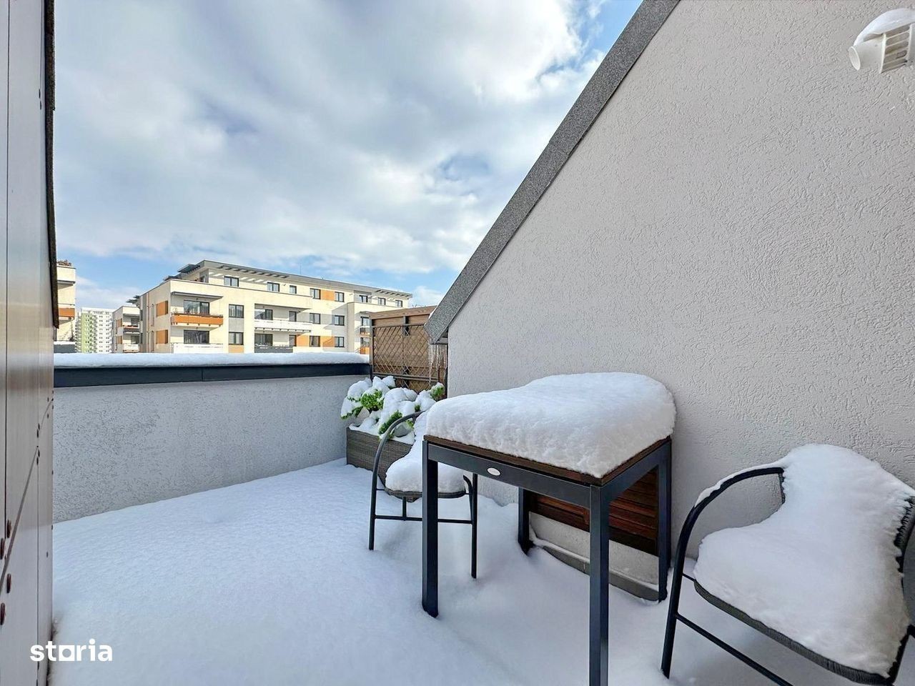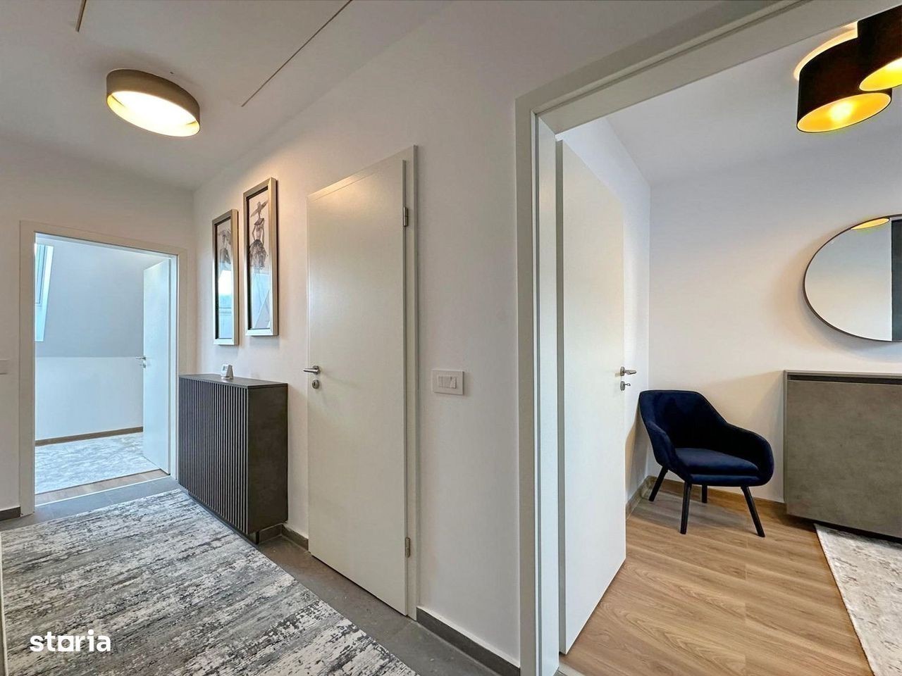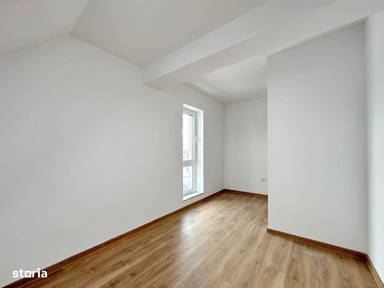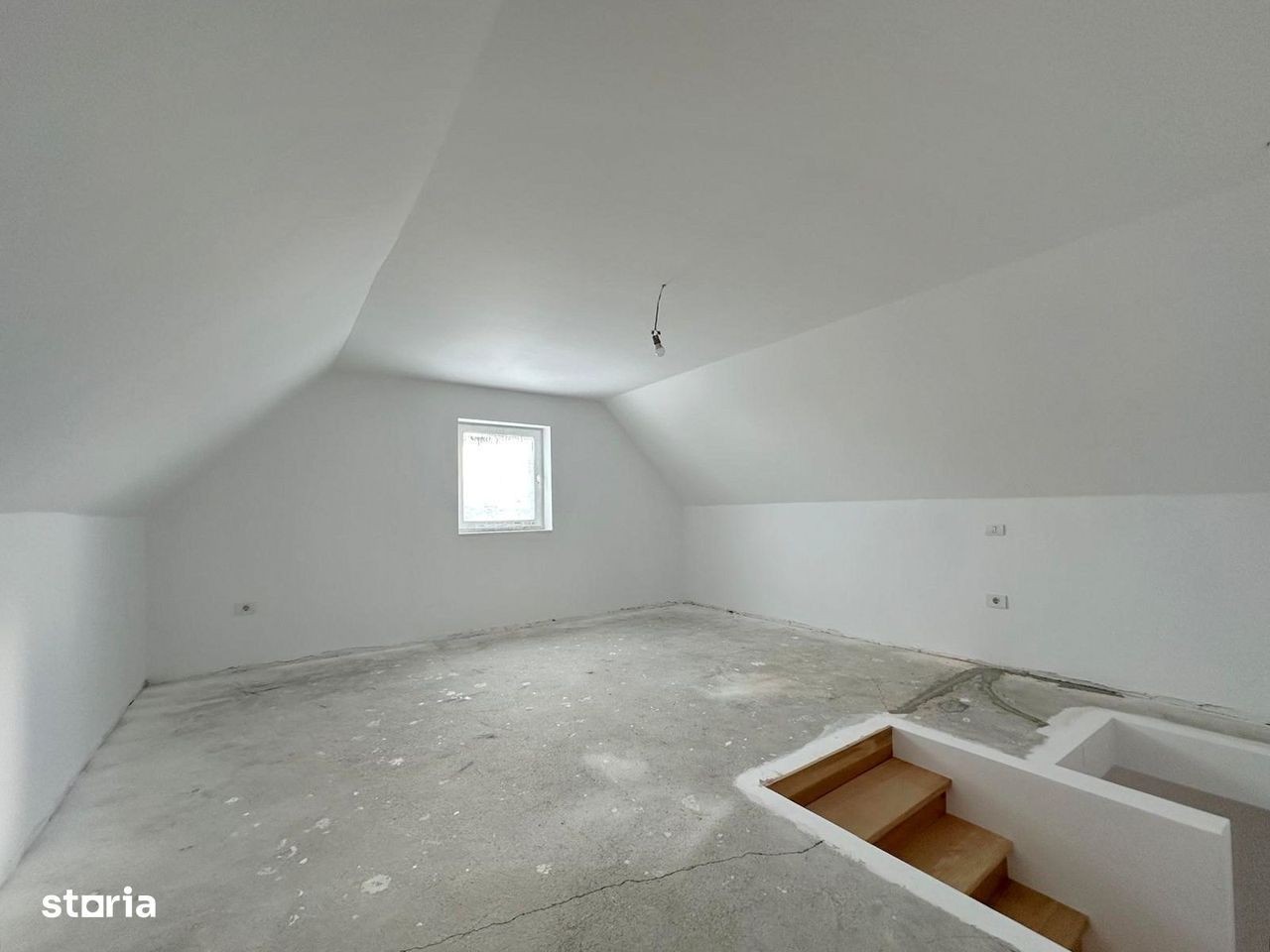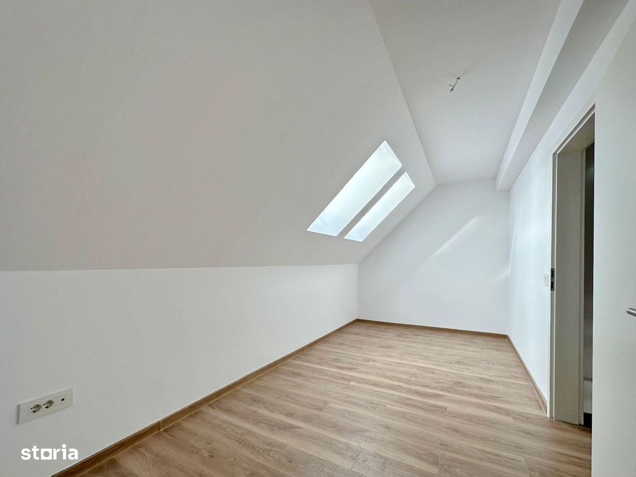 Proprietatea propusă spre achiziționare este situată în apropierea centrului comercial Coresi, într-o zonă cu acces facil către multiple puncte de interes. Locuința este dispusă pe ultimele două niveluri ale clădirii și oferă o suprafață utilă de 91 mp, la care se adaugă un pod generos de 26 mp. Zona de zi include un living spațios cu zonă de dining și bucătărie deschisă, un balcon, un spațiu de depozitare sub scară și o baie ce deservește acest nivel. La etaj se află trei dormitoare luminoase, un hol și o baie, iar din hol se poate accesa podul individual al apartamentului, care oferă posibilitatea de amenajare a unei încăperi suplimentare, în funcție de necesități. Apartamentul se vinde la cheie, conform prezentării, iar în prețul afișat este inclusă și o boxă pentru depozitare la subsolul clădirii. Opțional, se poate achiziționa și un loc de parcare subteran, la prețul de 15.000 euro + TVA. *La pretul afisat se adauga TVA 19%.