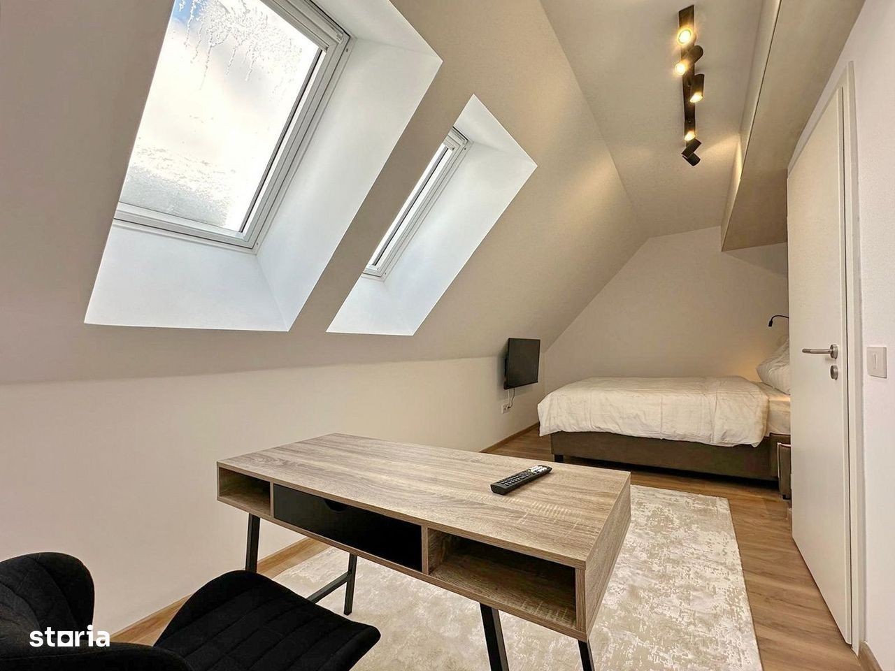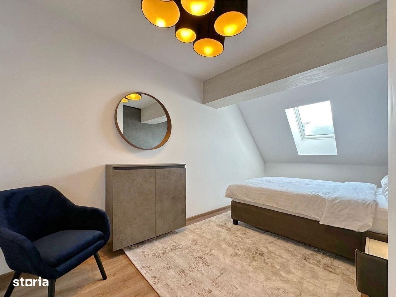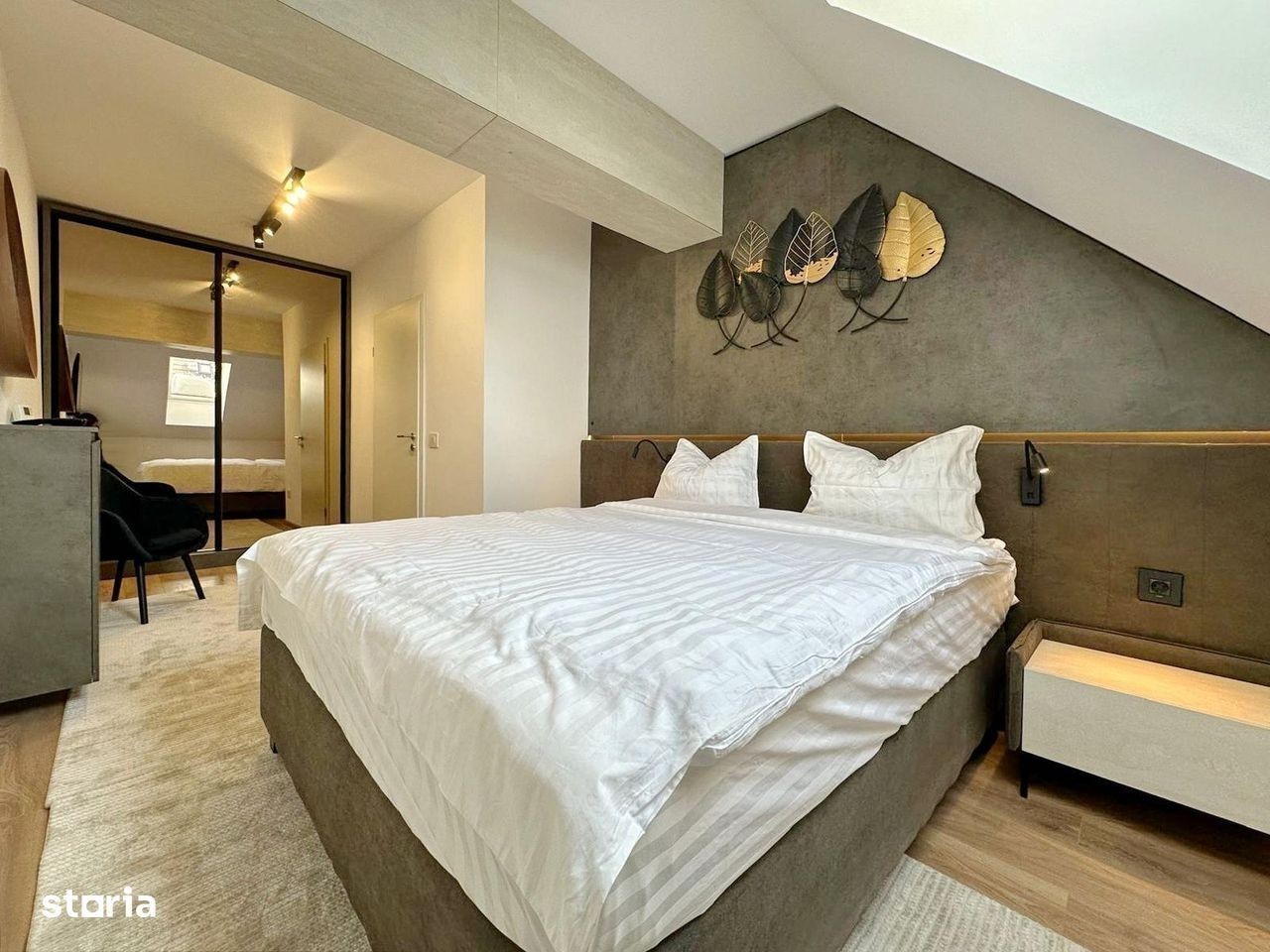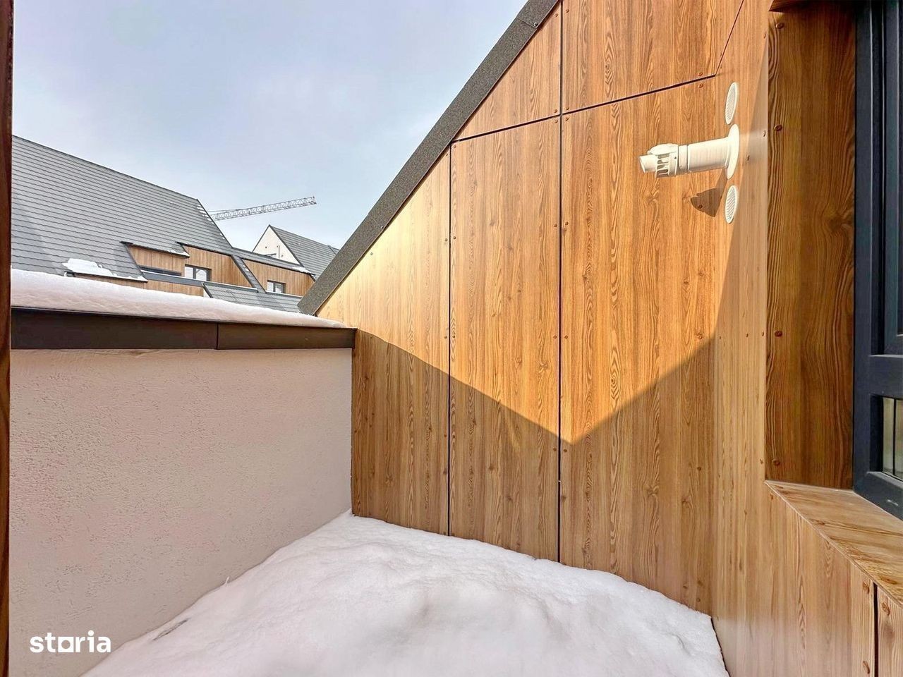 Proprietatea propusă spre achiziționare este situată în apropierea centrului comercial Coresi, într-o zonă cu acces facil către multiple puncte de interes. Locuința este dispusă pe ultimele două niveluri ale clădirii și oferă o suprafață utilă de 91 mp, la care se adaugă un pod generos de 26 mp. Zona de zi include un living spațios cu zonă de dining și bucătărie deschisă, un balcon, un spațiu de depozitare sub scară și o baie ce deservește acest nivel. La etaj se află trei dormitoare luminoase, un hol și o baie, iar din hol se poate accesa podul individual al apartamentului, care oferă posibilitatea de amenajare a unei încăperi suplimentare, în funcție de necesități. Apartamentul se vinde la cheie, conform prezentării, iar în prețul afișat este inclusă și o boxă pentru depozitare la subsolul clădirii. Opțional, se poate achiziționa și un loc de parcare subteran, la prețul de 15.000 euro + TVA. *La pretul afisat se adauga TVA 19%.
