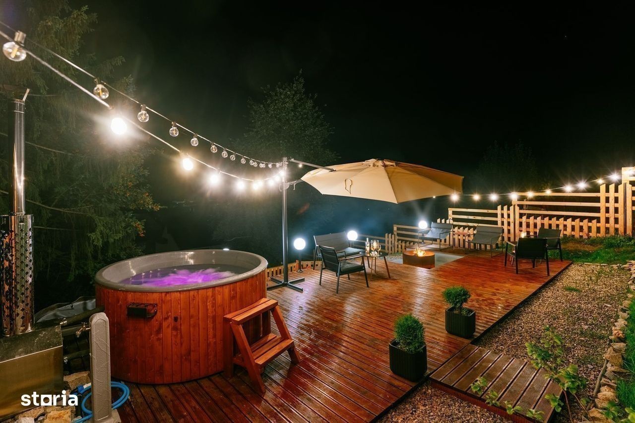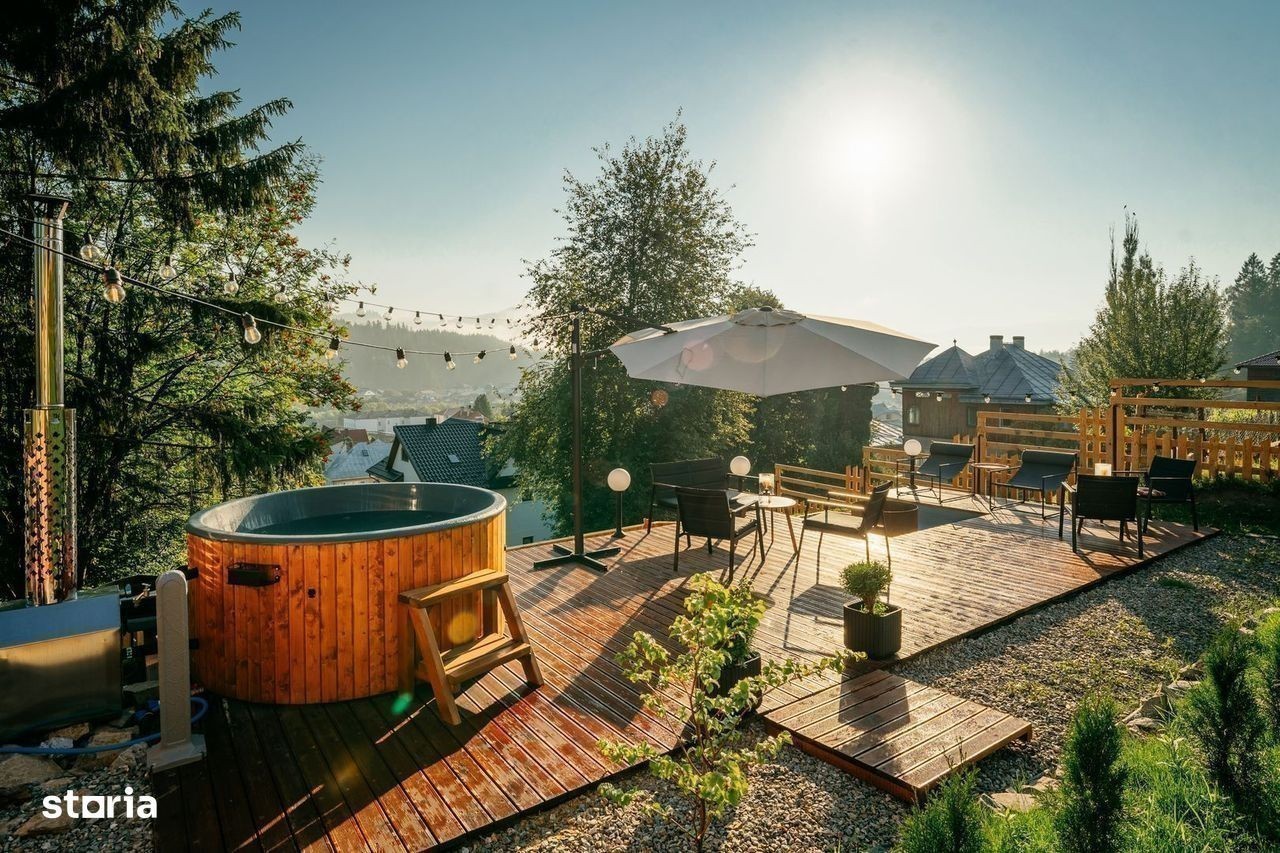 Va oferim spre vanzare o afacere functionala, la cheie. Exclusiv 0% comision la cumparare! Se poate achizitiona fie impreuna cu SRL fie prin transfer de afacere. Patrimoniu imobiliar- teren intravilan 867mp, in loc. Vatra Dornei, cu 2 constructii tip cabane montane A-frame, cu regim de inaltime D+P+M si suprafata utila de 125mp fiecare, suprafata construita 140 mp fiecare, curti imprejmuite, amenajari exterioare, parcare pentru 4 autoturisme, terase exterioare pentru fiecare imobil in suprafata de 21mp pentru fiecare casuta, si terasa exterioara amenajata cu loc de gratar, ciubar si loc de firepit in suprafata de cca 44mp, curtea este ingradita cu garduri din stalpi metalici si panouri de lemn. Ambele casute sunt dotate cu tot mobilierul, aparatura si capacitatile tehnice necesare pentru functionare hoteliera. Detaliere Imobile - structura din beton armat monolit pt fundatii si pereti demisol, structura din lemn ecarisat, uscat natural timp de 2 ani inainte de punere in opera, prelucrat industrial pentru planeitate si profil, cu tratament ignifug si antifungic realizat in-situ, plansee din lemn cu sistem de fonoizolatie, termoizolatie din vata bazaltica 20 cm si acoperisuri din tabla cutata 0.05mm cu ventilatie. Sistem de climatizare cu pompa de caldura si ventilo-convectoare de perete, care permite atat incalzirea cat si racirea cabanelor. Retele de apa sanitare, termice sunt realizate din polipropilena cu insertie, mufate prin termosudare. Bransament trifazat, retele electrice interioare realizate folosind cabluri cu protectie ignifuga, bransament gaze naturale in lucru. Oferta consta in toate resursele societatii mobile si imobile, punct de lucru, acte, autorizatii si acorduri, contracte cu furnizori si clienti, personal pentru mentenanta, materialele de marketing si canalele de promovare existente, astfel incat noul proprietar sa beneficieze de o afacere functionala si sustenabila din ziua 1 dupa achizitie. La cerere ne oferim suportul pentru a asigura o tranzitie lina a afacerii. Operational: grad de ocupare pentru 2023- 39.5%, un angajat cu norma intreaga responsabil de administrarea locatiei si menaj la schimburile turistice; contracte in derulare cu furnizori de servicii hoteliere necesare bunei exploatari, targetare pe sectorul mediu+, necesar de implicare pentru partea de management, promovare si booking operations - 60 ore lunar in medie pentru 2023 (o persoana). Acreditate de la min. turismului pentru structura de cazare tip casute camping 4* Marca inregistrata la OSIM pe societate Sistem CRM implementat prin platforma management hotelier care permite operatiuni de gestiunea clientilor, integrat cu sistem self chek-in. Remote acces cu yale smart cu posibilitatea de generare cod de acces individual pe perioada sederii in locatie. Sistem de supraveghere exterior. Sistem de comanda si control a climatizarii din telefon. Integrari pentru plata card, carduri de vacanta, si self-check-out prin platforma " eu platesc"