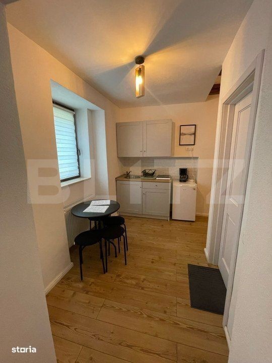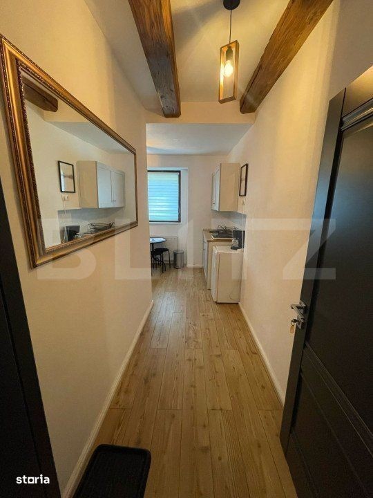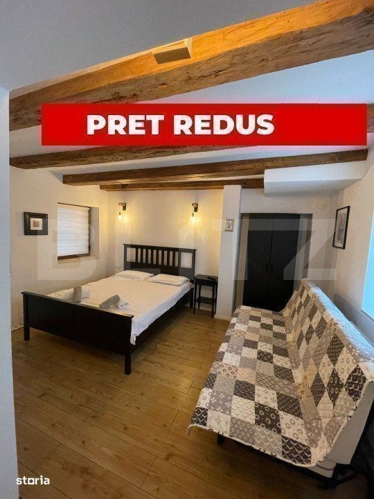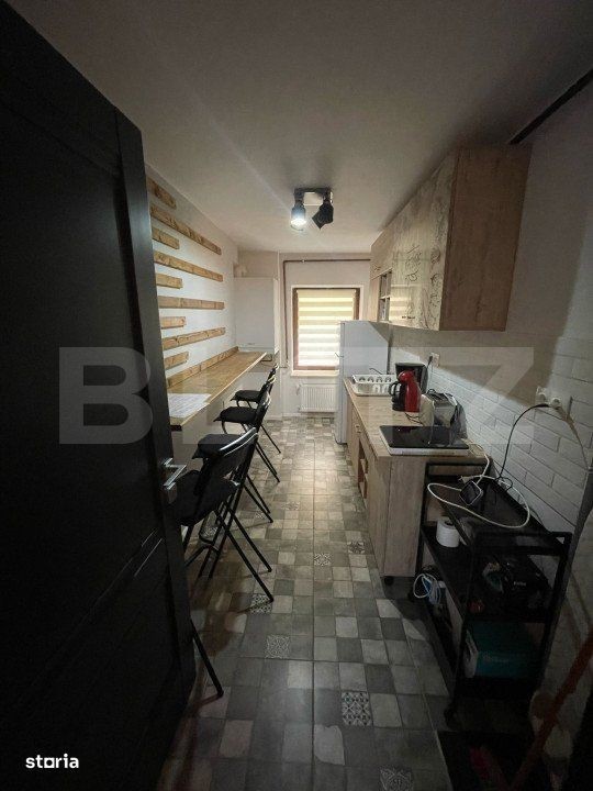O oportunitate unică de investiție în inima centrului istoric al Brașovului! Vă oferim spre vânzare un etaj complet situat pe strada Castelului, perfect pentru a fi închiriat în regim hotelier. Acest etaj dispune de 4 camere spațioase, fiecare cu baie proprie și o bucătărie comună, fiind ideal pentru turiști sau pentru o afacere de succes în domeniul ospitalității. Caracteristici principale: Suprafață totală: 110 metri pătrați Camere: 4 camere spațioase, fiecare cu baie proprie, oferind intimitate și confort fiecărui oaspete Bucătărie: Bucătărie comună, complet utilată, ideală pentru prepararea și servirea meselor Design: Interior modern și funcțional, combinat cu farmecul istoric al clădirii Acces: Etajul este accesibil și bine organizat, asigurând o experiență plăcută pentru oaspeți Avantaje și facilități: Locație excelentă: Situat în centrul istoric al Brașovului, cu acces facil la principalele atracții turistice, restaurante, cafenele și magazine Potrivit pentru închiriere: Configurația camerelor cu băi proprii și bucătăria comună îl fac perfect pentru închiriere în regim hotelier, asigurând un venit constant și atractiv Transport: Acces ușor la mijloacele de transport în comun și la principalele căi de acces Proximitate: Aproape de toate facilitățile necesare, inclusiv piețe, magazine, și puncte de interes cultural Farmec istoric: Zona este renumită pentru clădirile sale istorice și atmosfera pitorească, atrăgând numeroși turiști pe tot parcursul anului Nu ratați ocazia de a achiziționa acest etaj deosebit, care oferă atât potențial de venit, cât și o locație de vis în centrul istoric al Brașovului! Vă așteptăm cu drag!