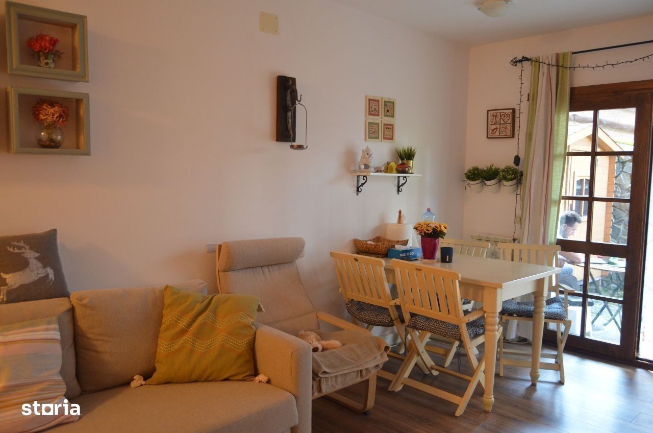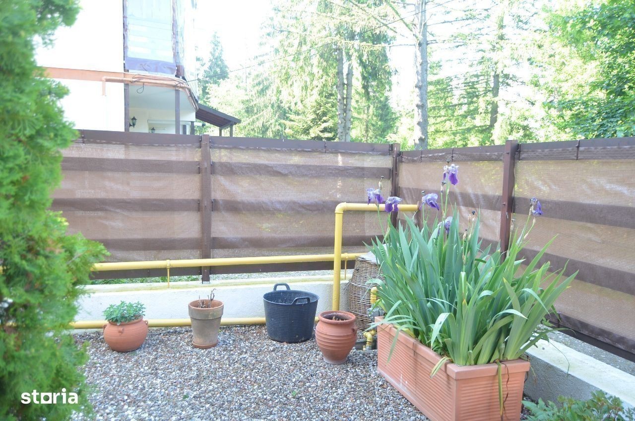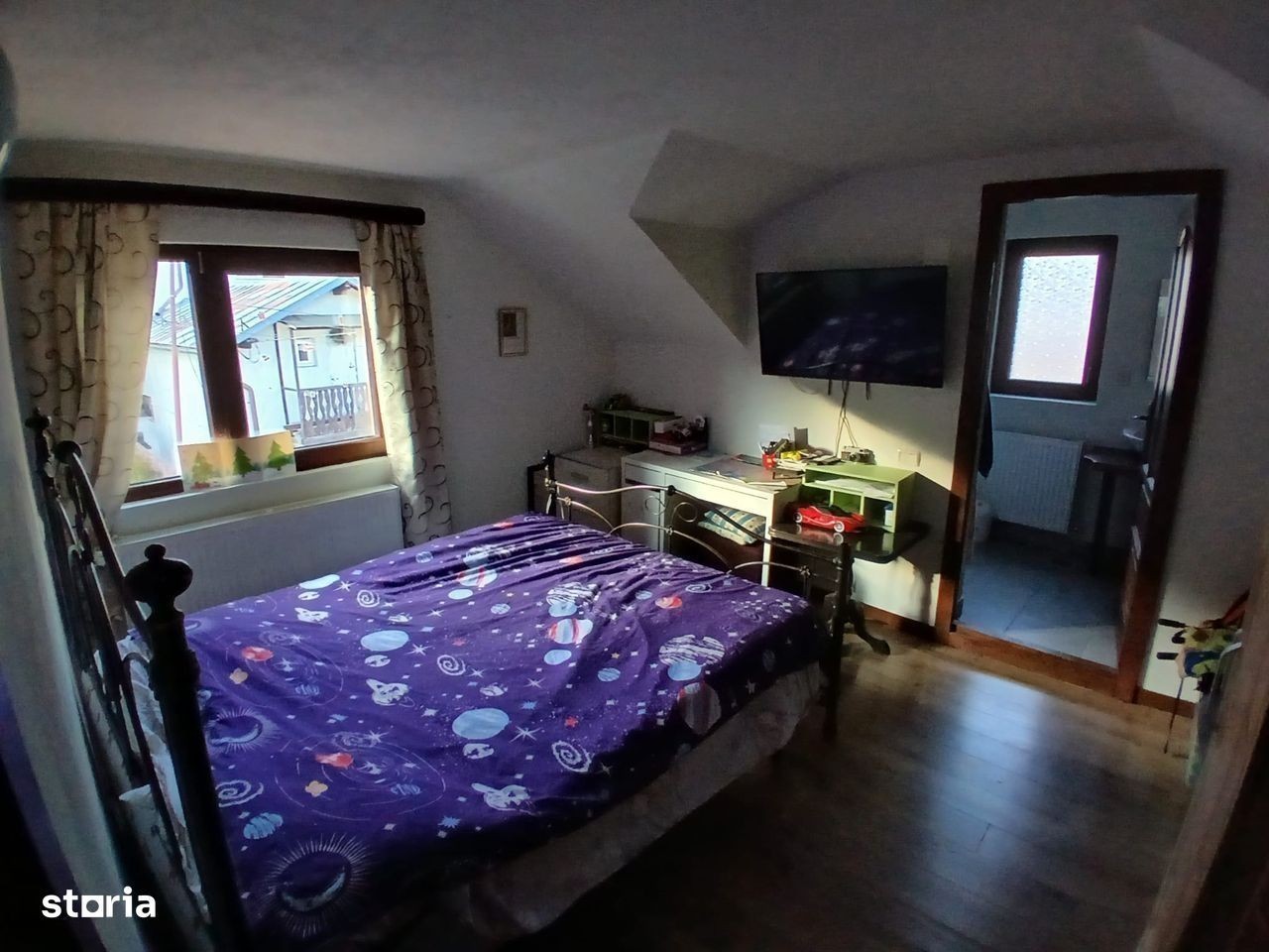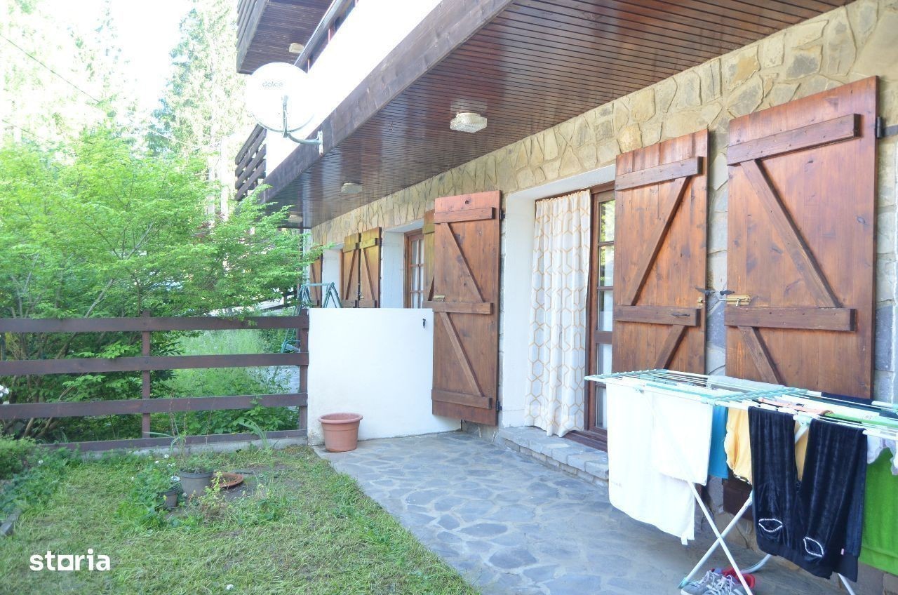 Se vinde un apartament cu trei camere situat in vila,la etaj 1 compus din trei dormitoare si un living, mini bucatarie, trei bai, terasa,teren 35 mp, spatiu depazitare.Este amplasat semicentral in Busteni. Vila este structurata D+P+M, avand in componenta doua apartamente fiecare cu intrare separata,utilitati si contorizari separate.Teren 35 mp.Acces separat in vila. Constructie din beton si caramida, plansee beton armat, invelitoare tabla. Utilitati contorizate individual, centrala termica de apartament. Ideal investitie sau locuinta de vacanta. Se vinde mobilat si utilat.Acest apartament de 102 metri pătrați se află în clădire din cărămidă construită în 2020. Dispune de 3 camere, balcon, terasă și grădină pentru relaxare. Pardoselile de lemn și tâmplăria din lemn completează aspectul. Proprietatea se vinde cu mobilier și electrocasnice precum frigider, cuptor, TV și mașină de spălat.