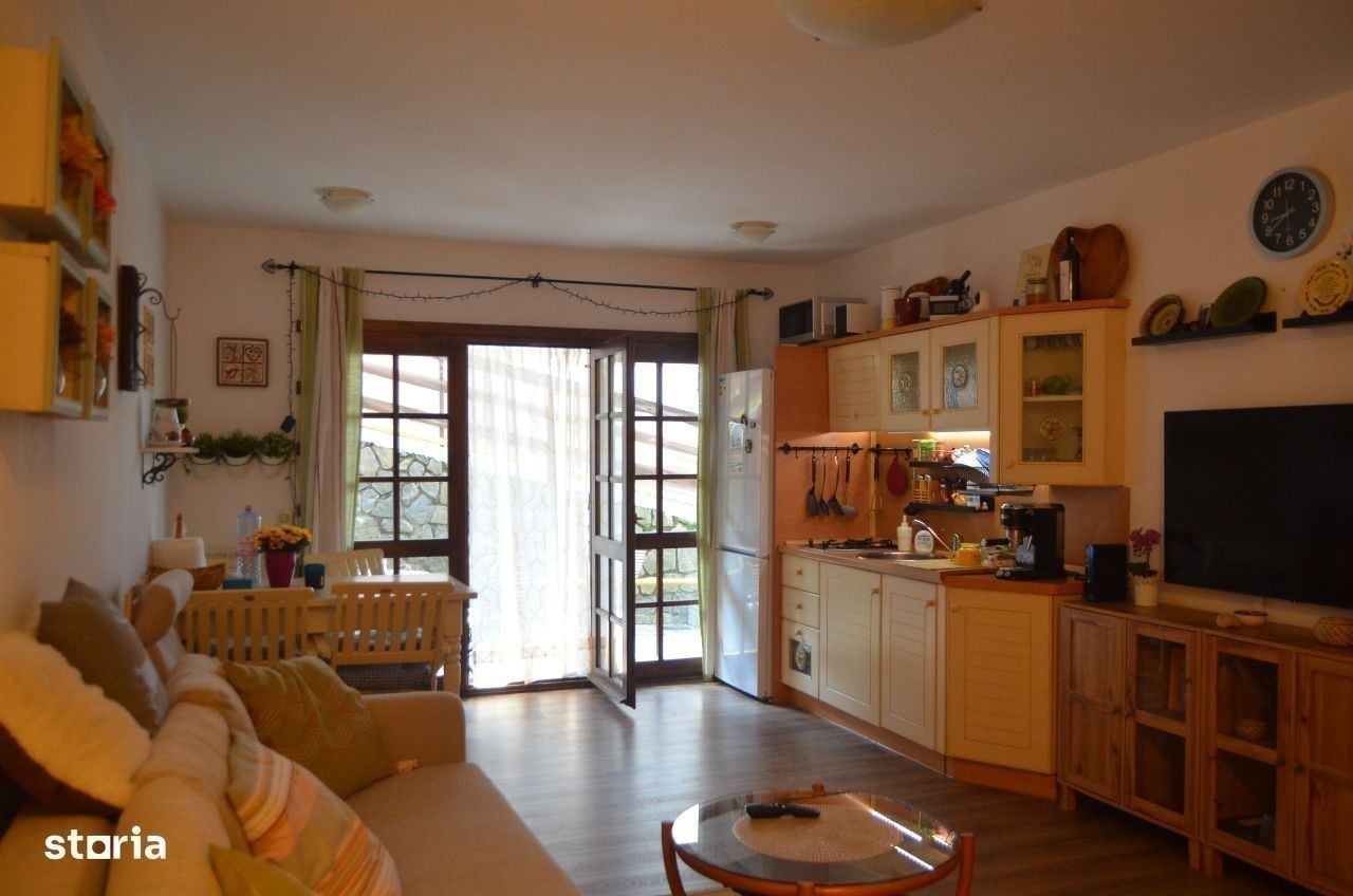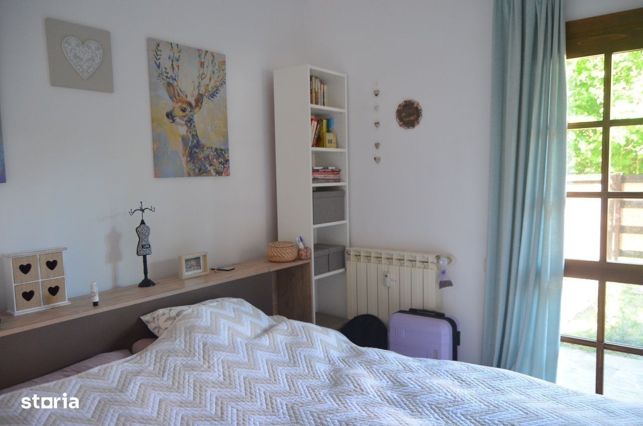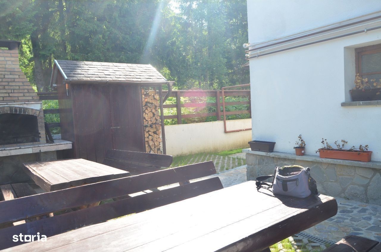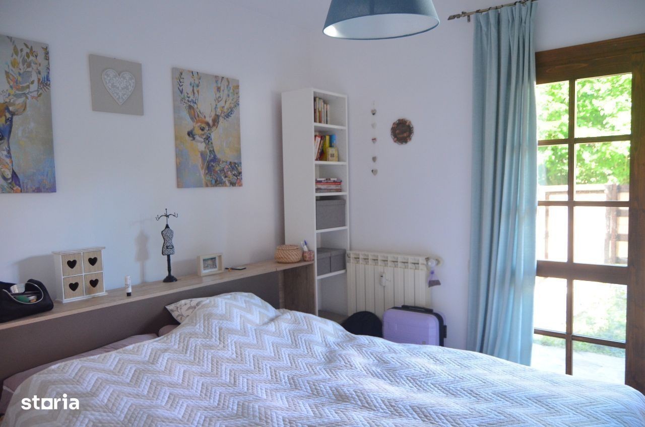 Se vinde un apartament cu trei camere situat in vila,la etaj 1 compus din trei dormitoare si un living, mini bucatarie, trei bai, terasa,teren 35 mp, spatiu depazitare.Este amplasat semicentral in Busteni. Vila este structurata D+P+M, avand in componenta doua apartamente fiecare cu intrare separata,utilitati si contorizari separate.Teren 35 mp.Acces separat in vila. Constructie din beton si caramida, plansee beton armat, invelitoare tabla. Utilitati contorizate individual, centrala termica de apartament. Ideal investitie sau locuinta de vacanta. Se vinde mobilat si utilat.Acest apartament de 102 metri pătrați se află în clădire din cărămidă construită în 2020. Dispune de 3 camere, balcon, terasă și grădină pentru relaxare. Pardoselile de lemn și tâmplăria din lemn completează aspectul. Proprietatea se vinde cu mobilier și electrocasnice precum frigider, cuptor, TV și mașină de spălat.