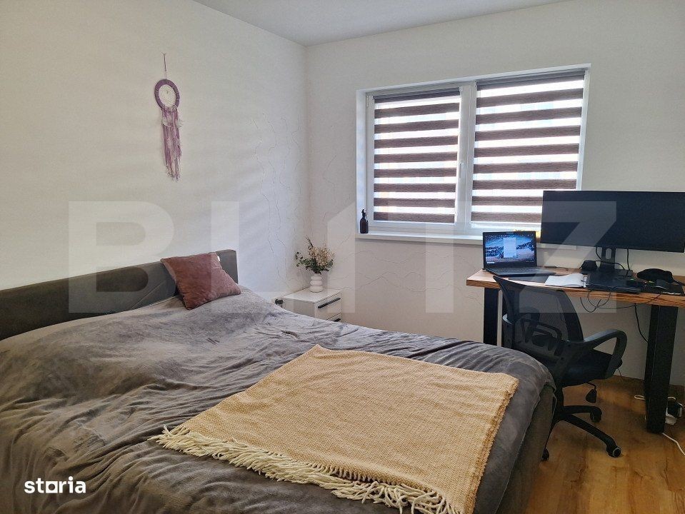 Blitz vă propune spre vânzare un apartament cu 2 camere situat în localitatea Sânpetru și se caracterizează prin eleganță și confort. Acesta oferă o suprafață utilă generoasă de 61 de metri pătrați, distribuiți în două camere spațioase. Fiind situat la etajul 1 al unui bloc de construcție nouă, beneficiați de acces facil și confortabil. Una dintre caracteristicile notabile ale acestui apartament este expunerea sa solară pe toată perioada zilei, asigurând lumină naturală abundentă și un mediu luminos și plăcut în interior. Această caracteristică contribuie la crearea unei atmosfere primitoare și relaxante. Proprietatea este vândută complet mobilată și utilată, inclusiv cu electrocasnice de cea mai înaltă calitate, oferindu-vă tot confortul necesar pentru o viață modernă și convenabilă. Mobila a fost aleasă cu atenție și este realizată la comandă, oferind un design personalizat și funcționalitate maximă. Un alt avantaj major al acestui apartament este centrala termică proprie și sistemul de încălzire în pardoseală, asigurând confort termic pe tot parcursul anului, indiferent de condițiile meteorologice externe. În plus, apartamentul vine cu un loc de parcare inclus în preț, oferindu-vă comoditate și siguranță în ceea ce privește păstrarea vehiculului dumneavoastră. În ansamblu, acest apartament reprezintă o oportunitate unică de a locui într-un spațiu modern, confortabil și bine utilat într-o zonă liniștită și convenabilă.