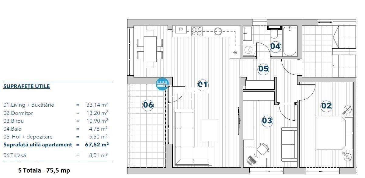 COMISION 0% Apartament intabulat! Se ofera spre vanzare apartamente cu 3 camere cu suprafata de 73,5 mp.Apartamentul este situat in complex nou de 5 blocuri, regim de inaltime P+3E, doar 2 apartamente pe etaj, in Rediu, cartier cu acces pe baza de apropriere: market La Doi Pasi, pizzerie, restaurant, Mega Image, etc