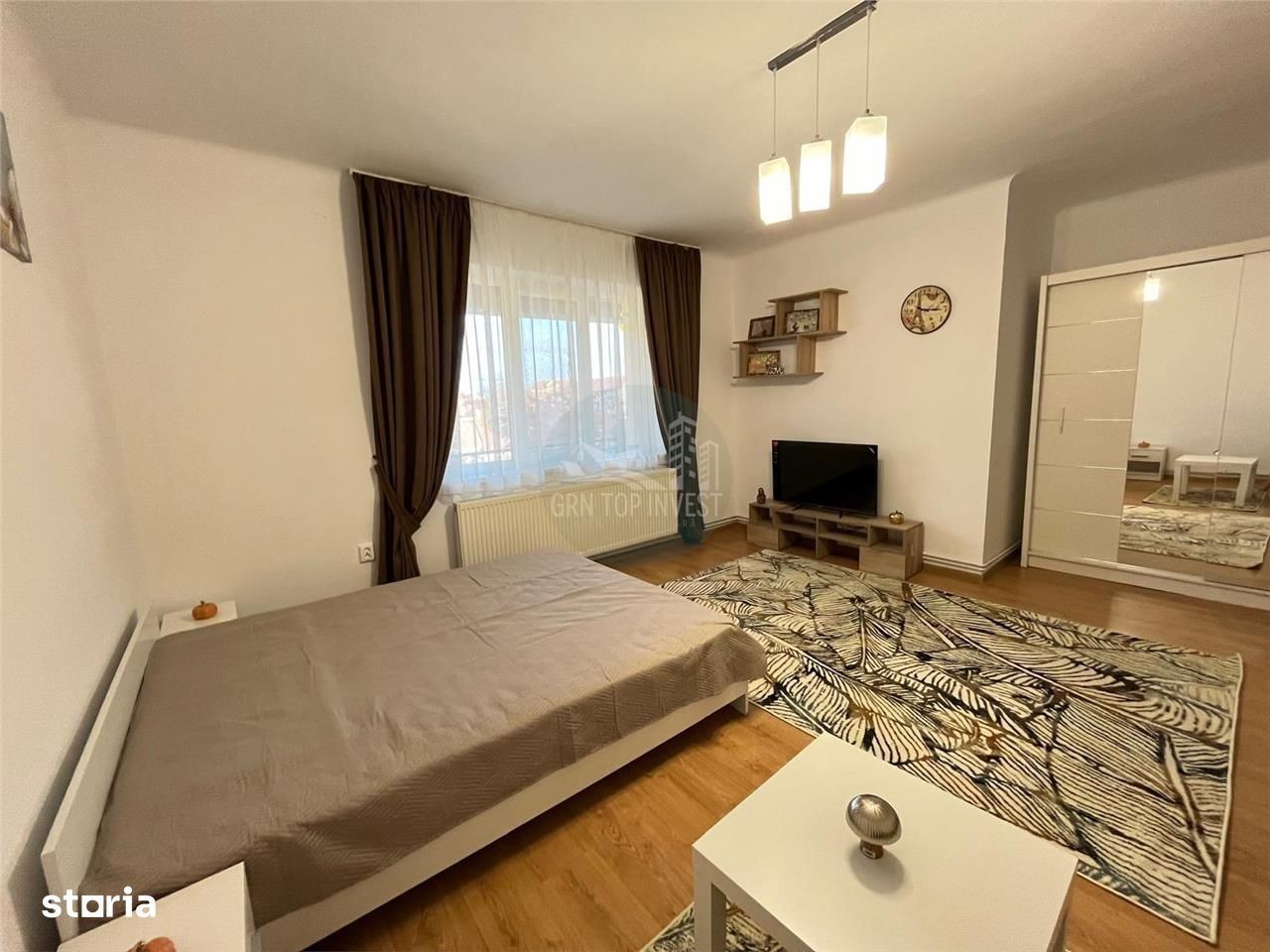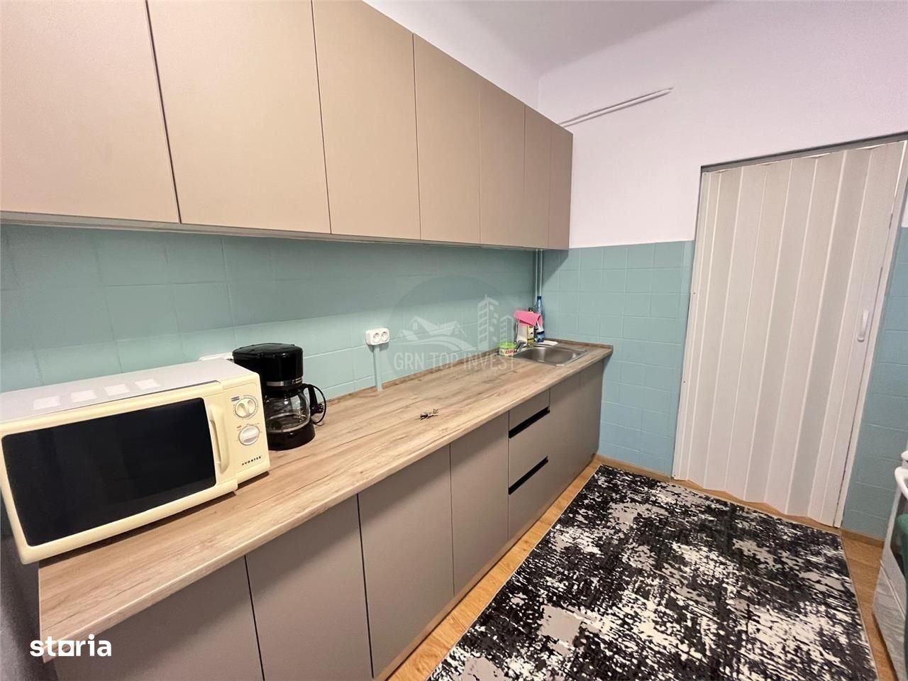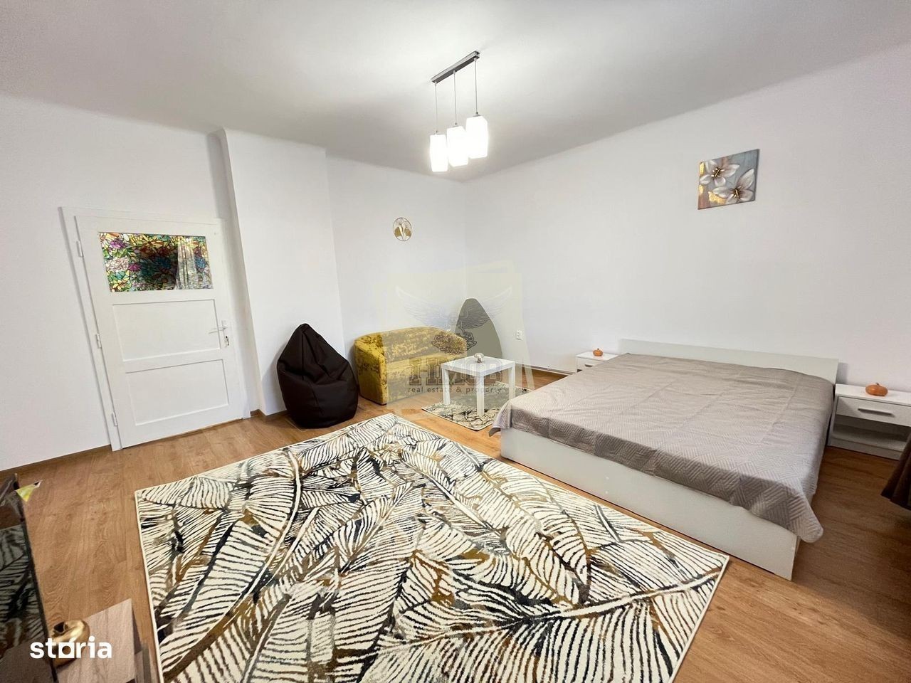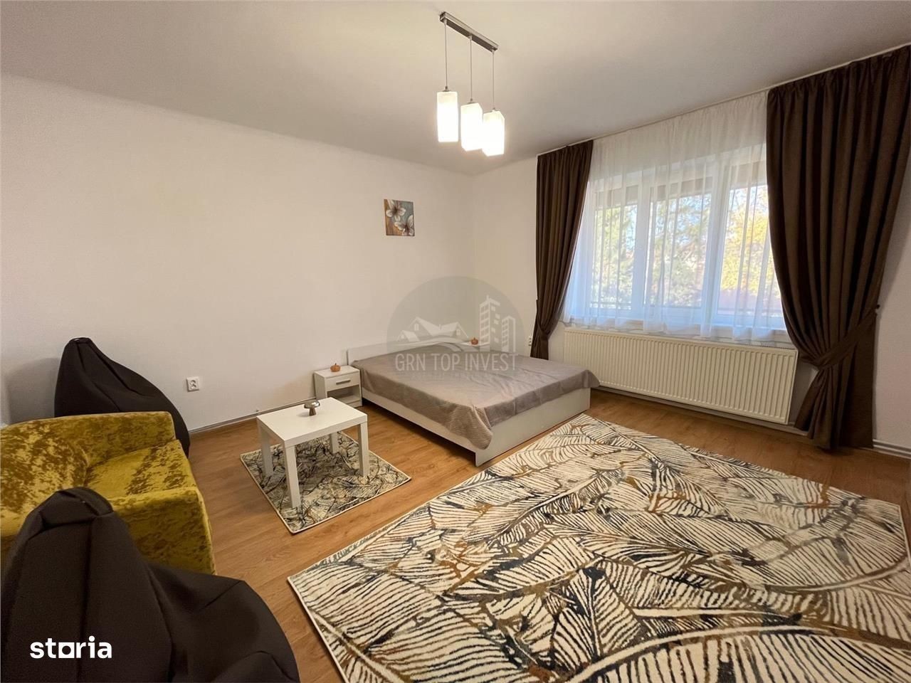 Agentia imobiliara GRN Top Invest va ofera la inchiriere un apartament cu 1 camera, modern, spatios, situat in zona centrala a Sibiului, pe strada Constantin Noica. Imobilul are o suprafata construita de aproximativ 60mp, din care suprafata utila este de 50mp si se afla situat la etajul 1 al unei vile, edicate din caramida si izolate termic interior si exterior. Dispune si de o generoasa curte comuna cu inca trei familii. In ceea ce priveste compartimentarea, acesta dispune de un hol generos, din care se face accesul in bucataria spatioasa, complet mobilata si utilata, care detine si o debara, in dormitorul foarte spatios si in baia dotata cu cabina de dus si geam de aerisire. Apartamentul este recent renovat in totalitate si este dotat cu parchet laminat, gresie, faianta, geamuri termopan etc. Este utilat cu toate electrocasnicele necesare: aragaz, hota, cuptor, cuptor cu microunde, combina frigorifica, masina de spalat rufe, TV etc. Este situat in zona centrala a Sibiului, pe strada Constantin Noica, o zona de mare interes public, fiind in proximitatea mai multor puncte importante: Spitalul Judetean, Promenada Mall, Centrul Istoric, facultati, scoli, gradinite, farmacii, spatii verzi etc. Apartamentul se inchiriaza complet mobilat si utilat la pretul de 400 Euro. In ceea ce priveste locul de parcare, curtea are acces auto, astfel ca se poate parca masina in interiorul acesteia.