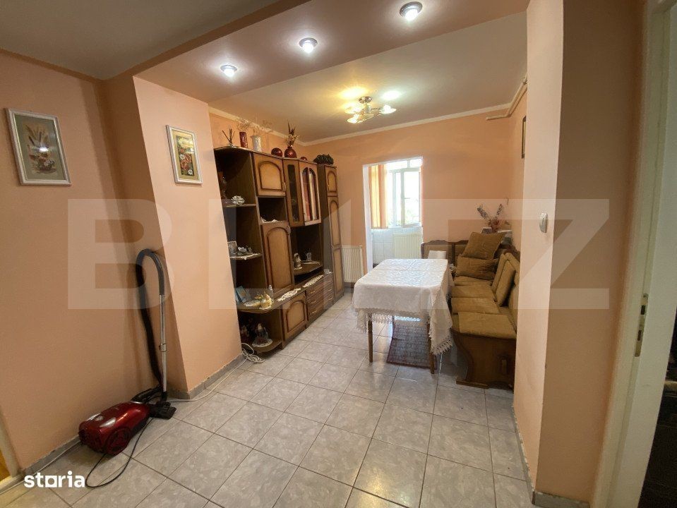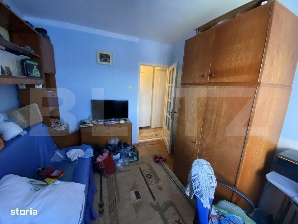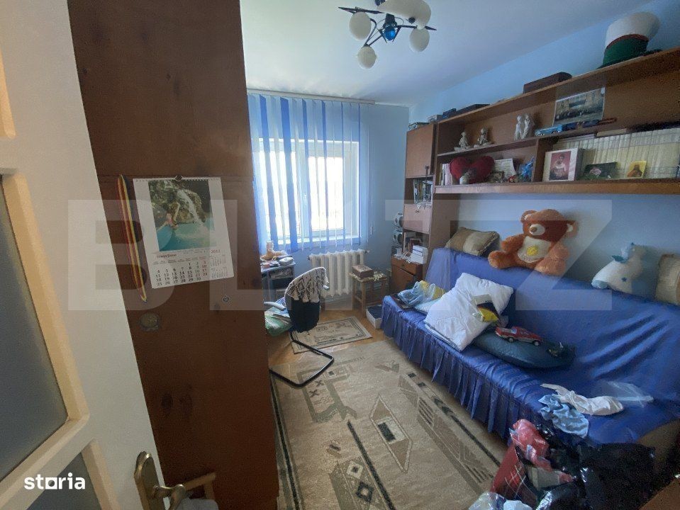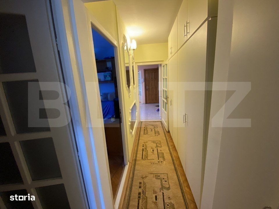 Blitz propune spre vanzare un apartament cu 3 camere, situat la etajul 4/4, dispune de pod pe toată suprafața apartamentului. Imobilul este decomandat si compartimentat astfel: compus din trei camere, o bucatarie mutata pe balcon, o baie, loc de depozitare pe hol, loc de parcare acoperit (copertină). Apartamentului a fost complet renovat în 2008. Geamuri și ușile au fost schimbate, instalația sanitară și electrică a fost înlocuită. Pentru mai multe detalii, contactati-ne cu incredere!