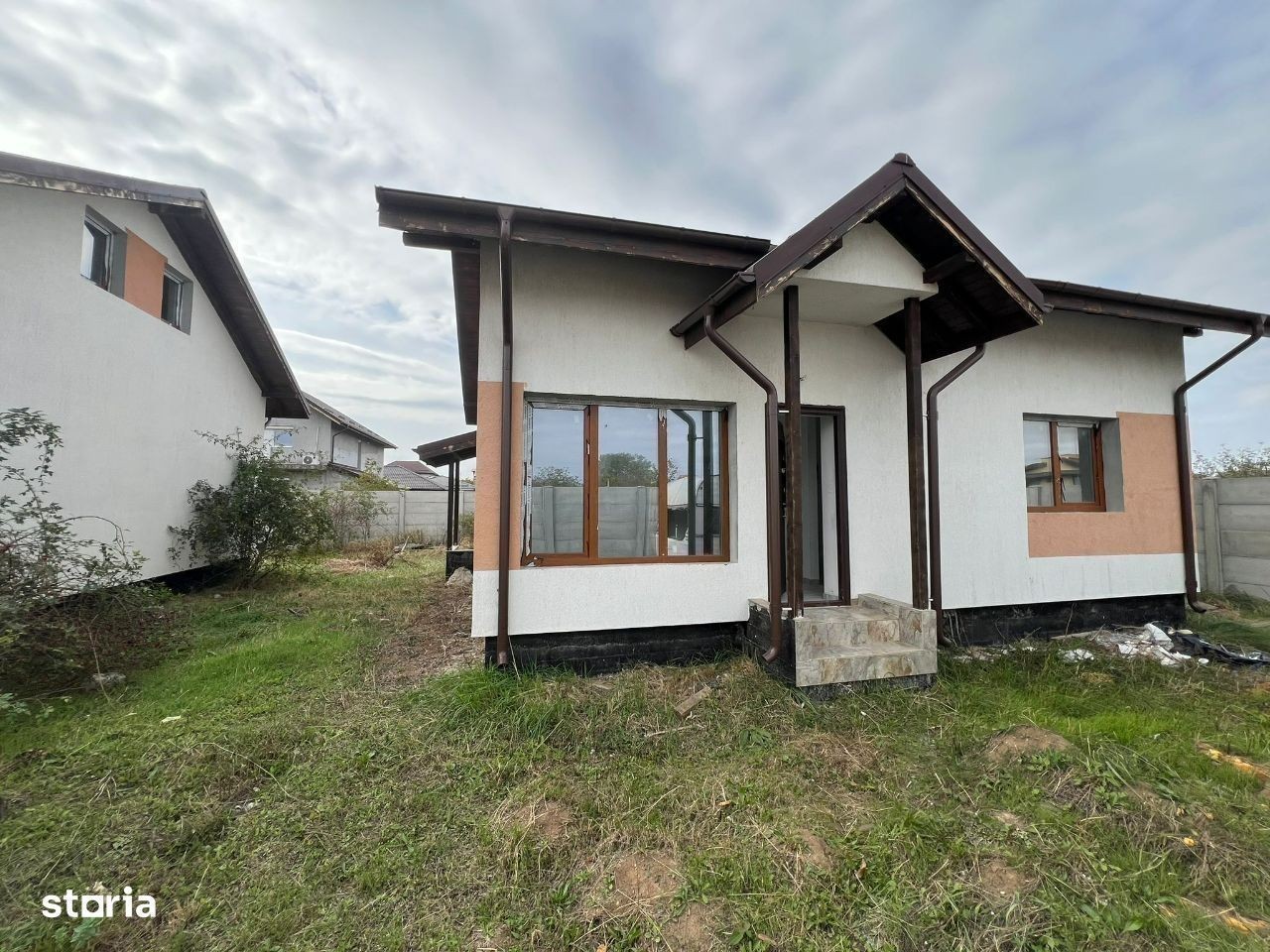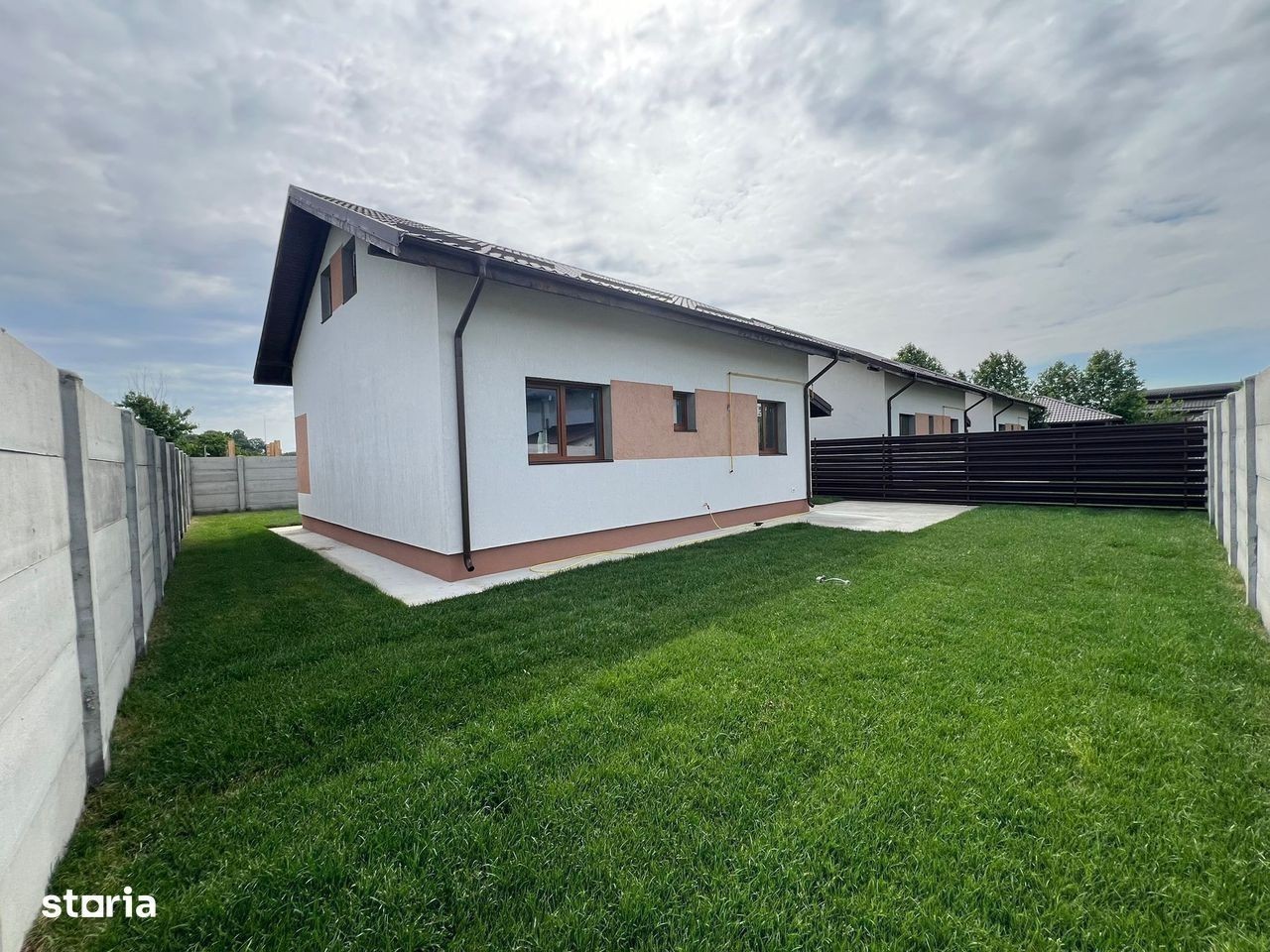 Va prezentam spre vanzare un ansamblu mic de 3 case, parter si mansarda, racordate la toate utilitatile, apa potabila, canalizare, gaz si curent electric. Casele au 65 mp, sunt construite pe un teren de 250 mp, a treia din spate avand teren mai mare. La parter avem 2 dormitoare, living mare, bucatarie inchisa si baie. Mansarda se preda izilata cu spuma, dar nefinisata. La cerere poate fi si finisata contra cost. Drum asfaltat, zona linistita, aproape de mijloace de transport in comun. Curtea este amenajata cu rulouri de gazon. Mutare imediata, toate actele sunt gata. Se accepta credit imobiliar, asiguram broker imobiliar pentru accesarea unuia. Pentru mai multe detalii, va astept la telefon.