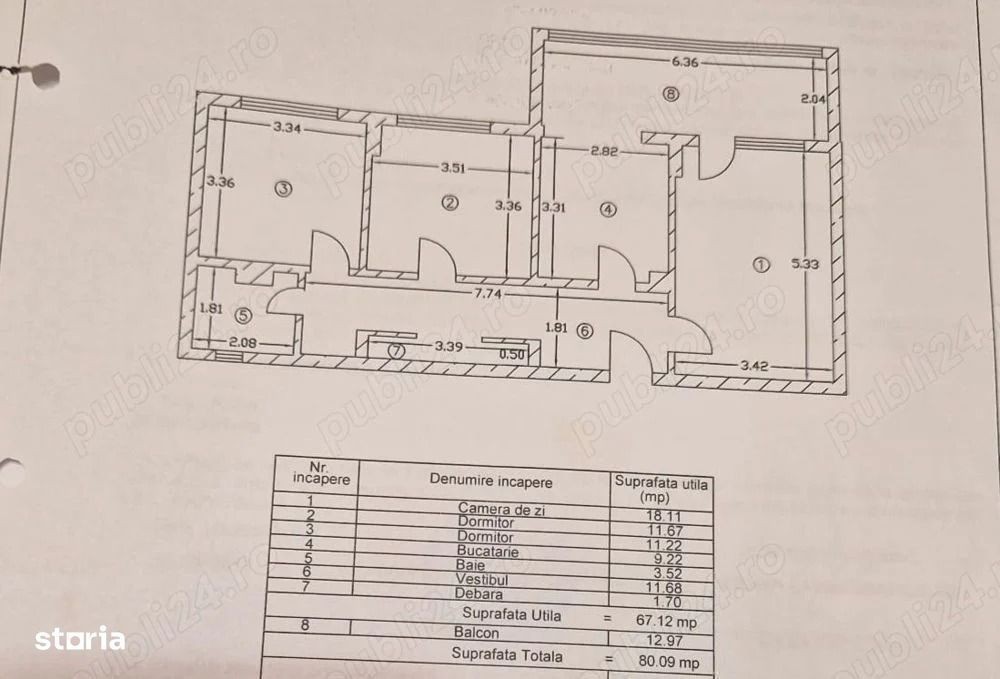 Apartament 3 camere Militari