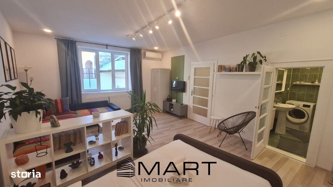 Agentia Smart Imobiliare ofera spre vanzare un apartament de lux cu o camera, avand o suprafata utila de 43 mp cu destinatie rezidentiala si este pretabil pentru locuit cat si pentru birou, poziționat la etajul 1 al unui imobil situat în zona ultracentrală a orașului, mai exact in zona centrului istoric langa Podul Minciunilor- Piata Mica, Tribunalul Sibiu. Locuința este compusă din bucătărie cu mobilier la comanda echipata cu combina frigorifica, cuptor, plita, hota, camera spatioasa, grup sanitar cu cabina de dus si sistem de ventilatie. Intregul apartament este finisat, cu toate utilitatile schimbate, dotat cu geamuri termopan, usa de pvc la exterior si usi din lemn pe interior, vopsea lavabila, gresie, faianta, parchet laminat, centrala termica cu sistem pe distribuitoare, calorifere si termostat wireless, interfon, aer condiționat 12000 btu, izolat la exterior si cu acoperisul din tigla schimbat. Separat de această suprafață, imobilul beneficiază și de 1camara aflata langa intrarea apartamentului, 1 pivnița, 50 la suta din pod, cota parte din curte, imobilul nu este monument istoric. Contactați-ne pentru mai multe detalii și pentru a programa o vizionare și precizați la telefon că ați văzut oferta cu ID - P16416