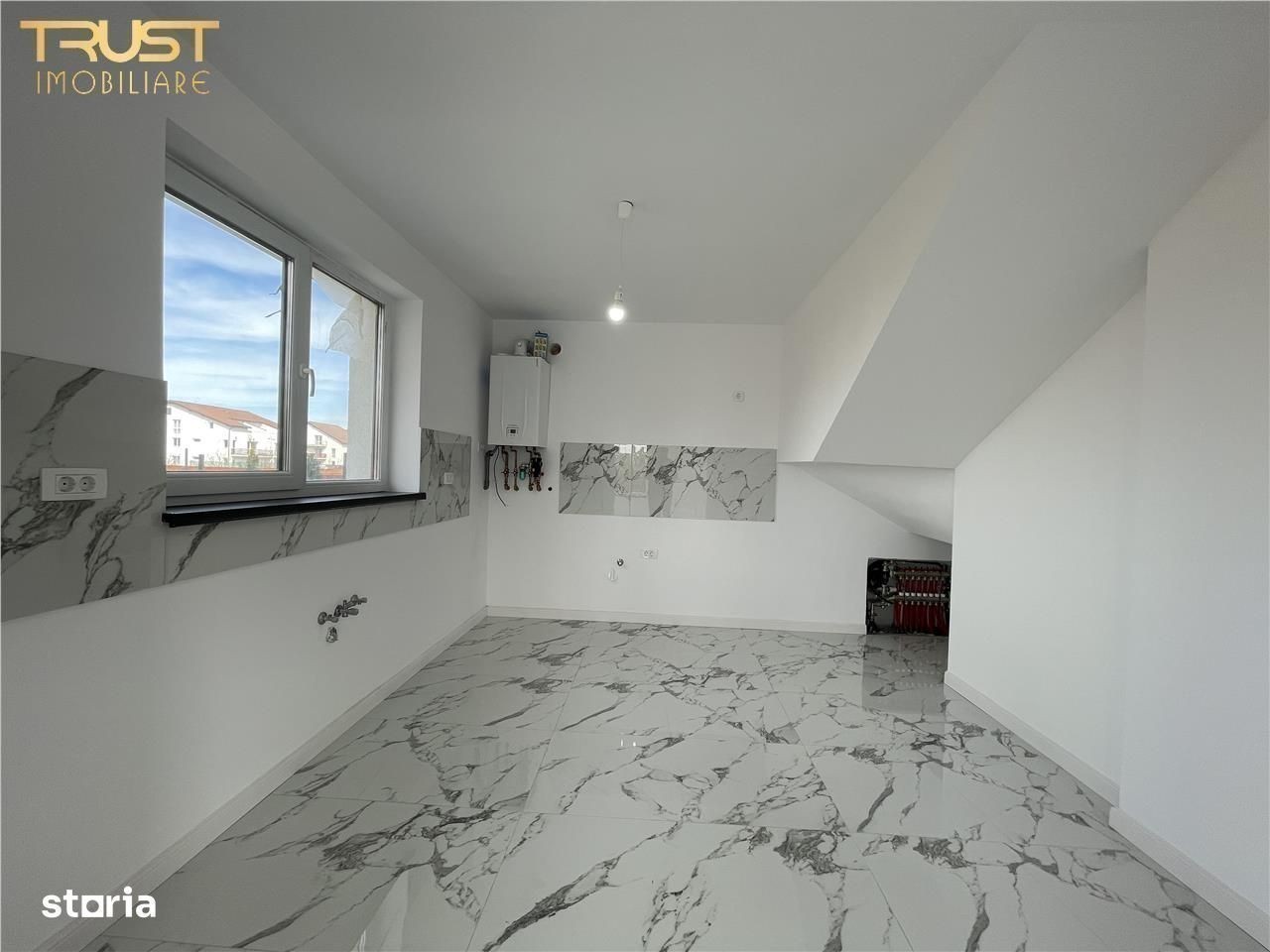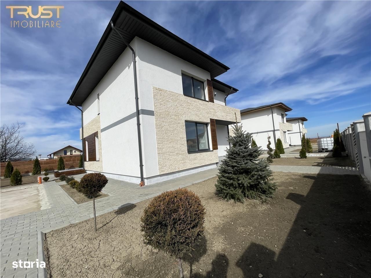 TRUST IMOBILIARE Brasov,va propune spre vanzare cu COMISION 0 din partea cumparatorului o proprietate situata in Ghimbav,Brasov. Proprietatea a fost edificata pe un teren cu suprafata de 500mp, aceasta are regim de inaltime P+1E+ pod depozitare. Aceasta are o suprafata utila de aproximativ 132mp desfasurati dupa cum urmeaza: Parter-Living 38,85mp, Bucatarie 13,63mp, Hol1 7.12mp, hol 2 1.43mp, Baie 4.70mp, Camera Tehnica 3.53mp, iar la etaj regasim cele 3 dormitoare cu suprafete de 15,63mp, 23.23mp (cu dressing) 12.73mp, baie de 7.76mp si hol 3.75mp. La care se adauga si cele doua balcoane de la dormitoare cu suprafete de 4.29mp si 3.63mp, iar pe partea de parter exista o terasa deschisa de 16.29mp. Curtea se preda finisata cu pavaj, tuia si gazon. Porti cu deschidere automata, videointerfon. Casa se va preda la cheie si cu toate utilitatile (gaz,curent,apa,canalizare) de retinut racordarea la gaz si canalizare este in proces, la reteaua electrica deja racordata. Pentru a va convinge de calitatea finisajelor si a constructiei va invit la o vizionare! Trust Imobiliare
