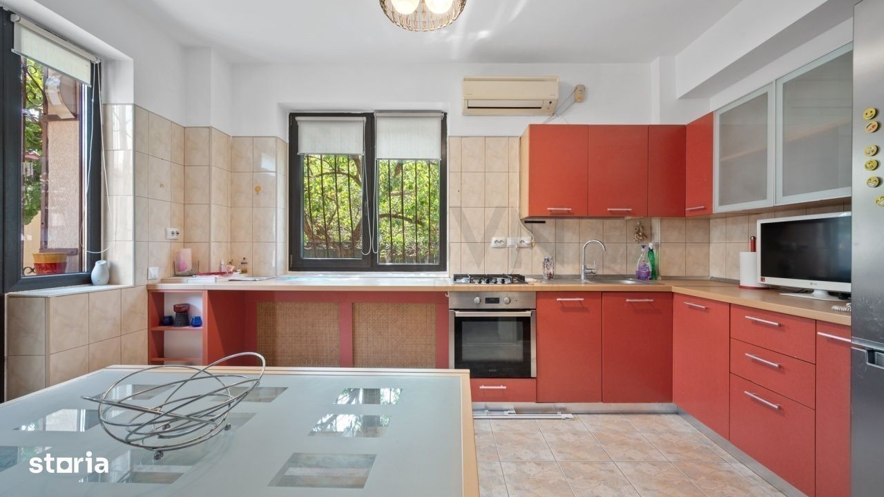 REV2001991 Va oferim spre inchiriere o vila construita pe un teren de 400 mp, in zona Domenii- Expozitiei. Imobilul este format din doua corpuri, astfel: corpul 1 pe parter construit in anul 1977, consolidat in anul 2003, an in care s a construit al doilea corp cu regim de inaltime P+2 etaje+Mansarda. Corpul vechi a fost renovat recent, cu pardoseala noua si pereti integral varuiti. Casa este structurata astfel: - parter imobil vechi- 3 camere stil vagon Imobil nou: - parter- living, dining, bucatarie, baie, camera tehnica etaj 1- living, dining, bucatarie, baie, acces in podul imobilului vechi etaj 2- dressing generos, doua dormitoare, baie mansarda- renovata si mobilata complet ca zona de relaxare, cu canapele, tv, sala fitness, baie Suprafata totala construita a celor doua case insumeaza suprafata de 450 mp. Imobilul beneficiaza de 2 intrari separate, fiind ideal atat pentru locuinta, cat si pentru clinica medicala, sediu birouri, etc. Curtea libera a casei, in suprafata de aproximativ 250 mp, este o oaza de liniste si relaxare. Casa a fost amenajata cu bun gust si atentie la detalii, in stil clasic, cu mobilier si finisaje de calitate, si se inchiriaza partial mobilata, asa cum este prezentata in fotografii. Este ideala atat pentru sediu firma, clinica, gradinita, etc, cat si pentru locuinta familiala. Amplasamentul este de exceptie, pe o strada linistita de case, in apropierea mijloacelor de transport in comun, statie de metrou, scoli,parcuri etc. Pentru mai multe detalii si vizionari va stau la dispozitie.