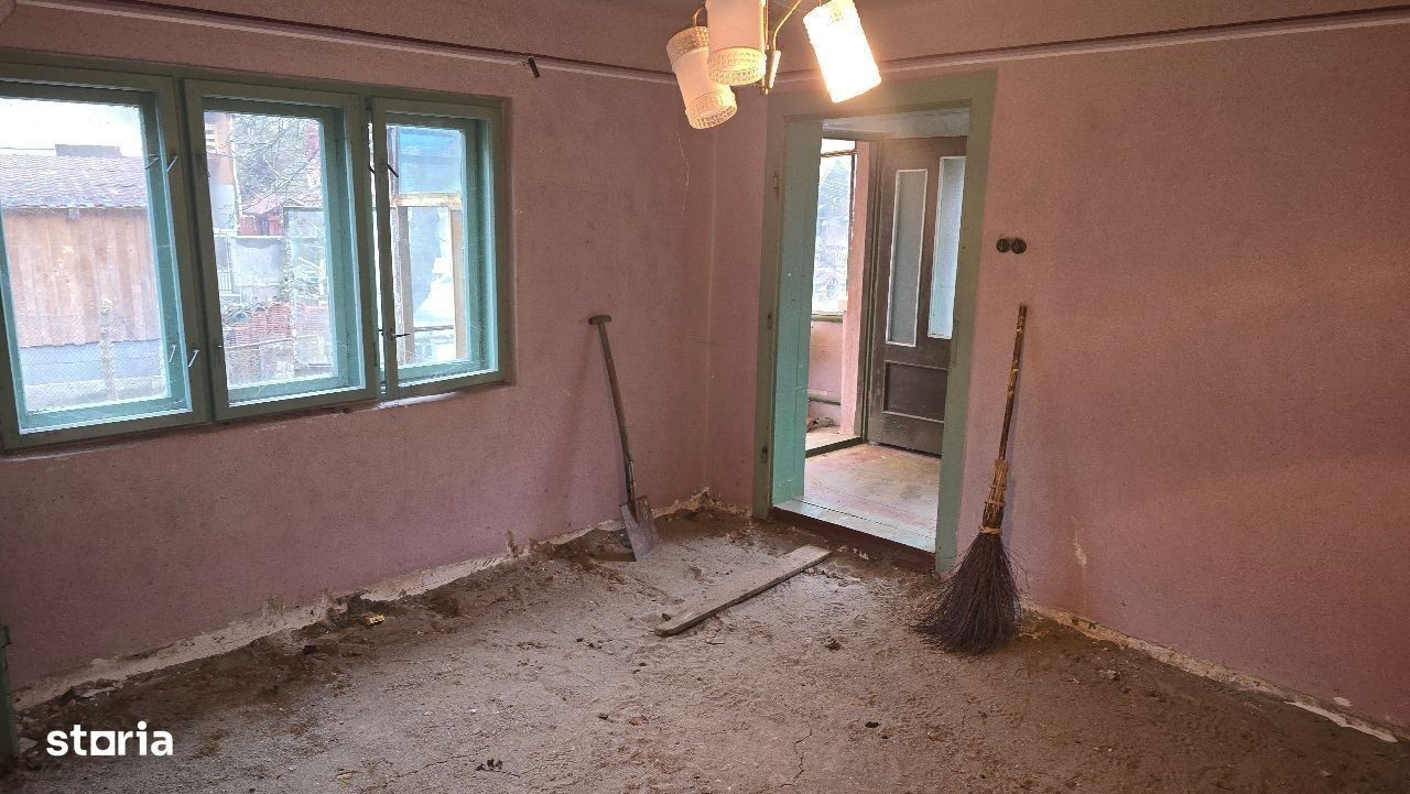 Vand casa in Deva pe un singur nivel, zona Aurel Vlaicu, suprafata totala de teren 922 mp, acces auto in curte, suprafata construita desfasurata 54 mp, constructie din caramida acoperita cu pod si tigla. Este compusa din: doua camere, hol si bucatarie cu acces separat. Utilitati: gaz si curent trase in casa si apa si canalizarea la poarta. Casa este construita în 1987 si este în curs de întocmire proiect pentru extindere și modernizare. Totul este achitat si are deja certificatul de urbanism.Pret: 49 500 euro neg. Tel: