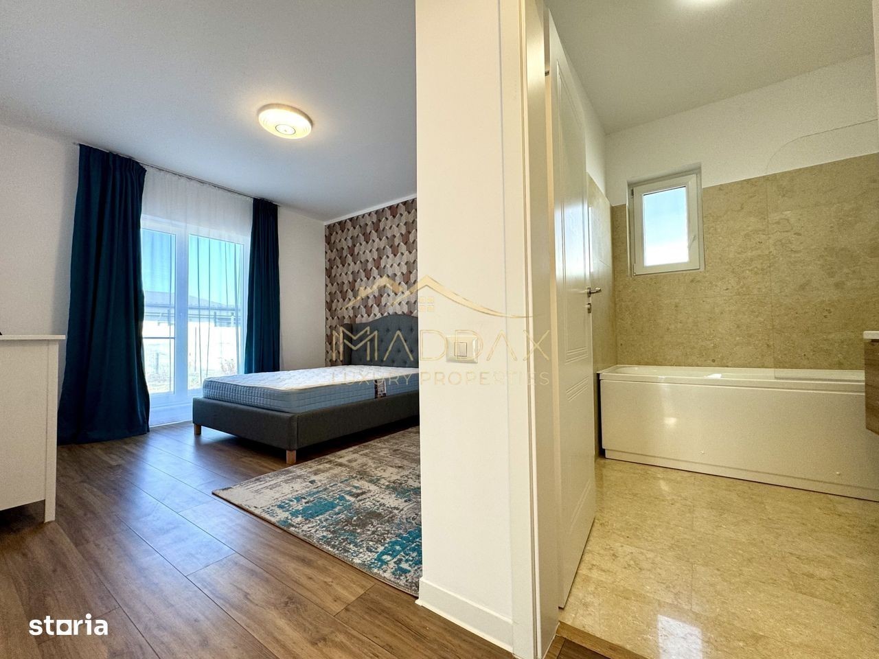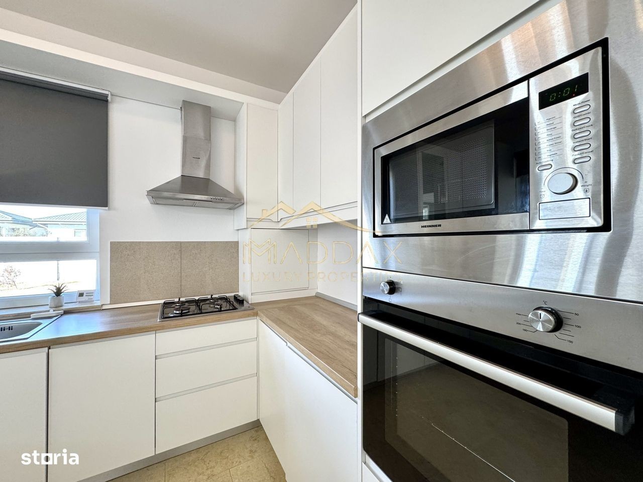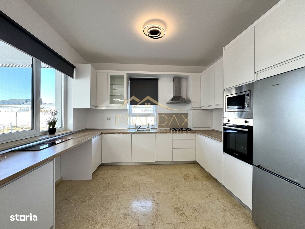 Maddax are placerea sa prezinte o proprietate modernă și elegantă, situată în Corbeanca, într-o zonă liniștită, ideală pentru familii. Casa dispune de 4 camere spațioase, fiind amplasată pe un teren generos de 400 mp, care oferă suficient spațiu pentru un loc de joacă destinat copiilor sau momente de relaxare în aer liber. Locuința este complet mobilată și utilată, fiind amenajată cu mobilier de calitate, realizat pe comandă, pentru a oferi un design rafinat și funcționalitate optimă. Electrocasnicele sunt noi și includ mașină de spălat vase, mașină de spălat rufe, frigider, cuptor și alte dotări moderne, menite să asigure confortul unei vieți fără griji. Casa este disponibilă imediat, astfel încât să vă puteți bucura de un nou cămin fără a mai aștepta. Este o alegere ideală pentru cei care își doresc un spațiu modern, primitor și bine amplasat, cu acces facil către facilități și natură. Pentru mai multe detalii, suntem aici pentru tine.