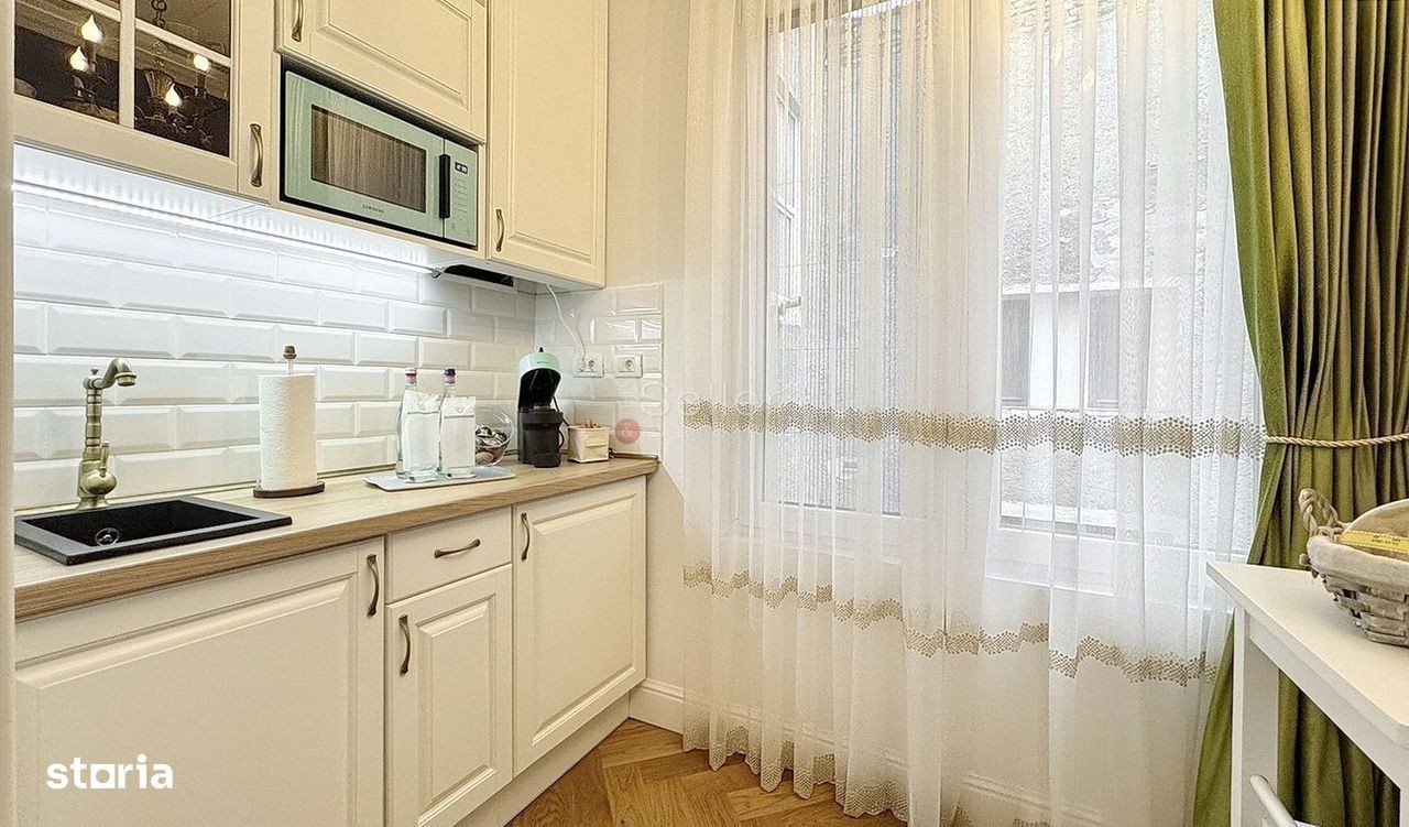 Ati accesat un imobil situat in zona Centrului Istoric. LOCALIZARE: Proprietatea este pozitionata in imediata apropiere a Pietei Sfatului si a celor mai importante obiective turistice, cum ar fi: Biserica Neagra, Strada Sforii, Poarta Ecaterinei etc. COMPARTIMENTARE: Apartamentul este dispus pe 2 camere, avand urmatoarea compartimentare: - Holul de acces, din care se face intrarea in fiecare camera; - Living-ul, care impreuna cu bucataria open space beneficiaza de o suprafata generoasa si de spatii vitrate mari; - Bucataria, aceasta fiind complet mobilata si utilata; - Dormitorul, care este spatios si luminos; - Baia, aceasta fiind dotata cu aerisire naturala; DOTARI: - centrala termica; - tamplarie PVC, cu geam termopan; - usa metalica; - pivnita; - pod. Tranzactionarea proprietatii se va face cu mobilierul aferent prezentei ofertari. IMPREJURIMI: Apartamentul este situat la cativa pasi de Piata Sfatului, accesul catre acesta fiind unul facil. NOTA: Informatiile prezentate reflecta situatia reala a proprietatii, fara a constitui o oferta contractuala. Aceste date au fost obtinute verbal, de la titularul de drept al imobilului. Structura acestei prezentari nu poate fi reprodusa, fara acordul scris al The Seller and Partners.
