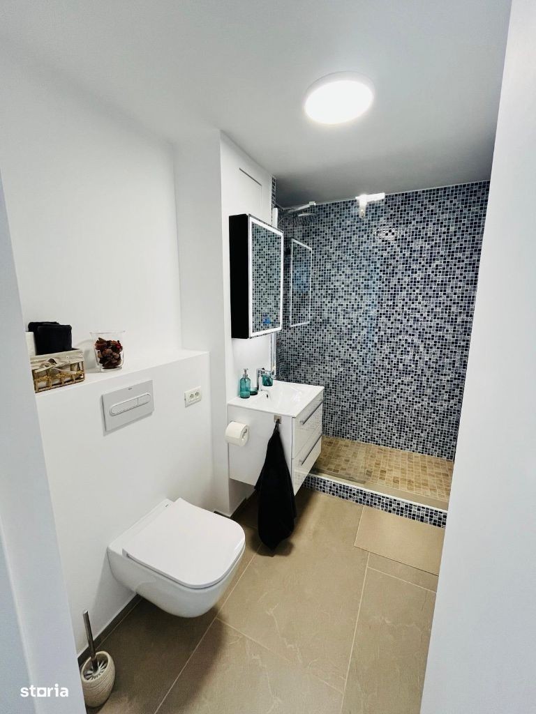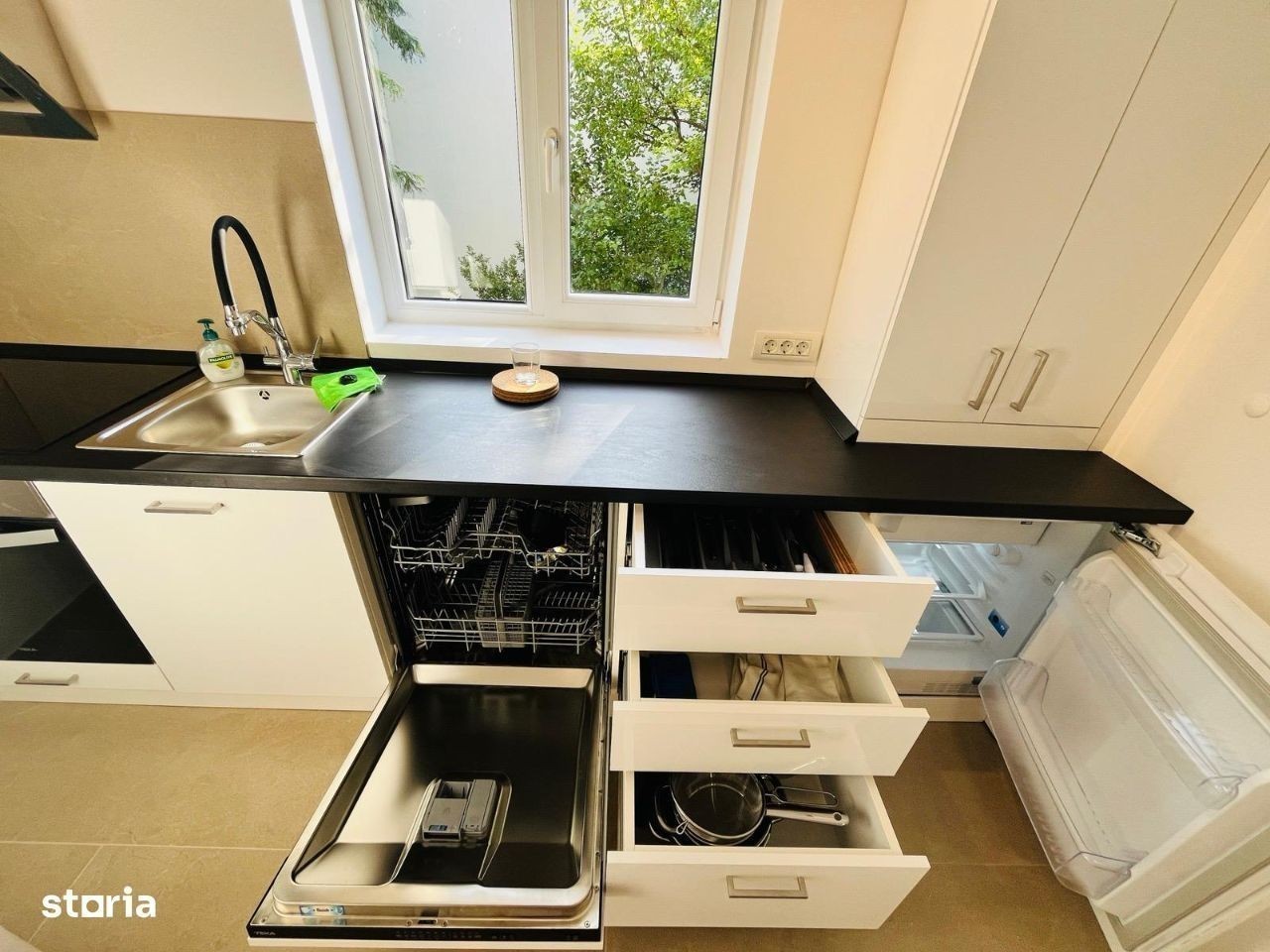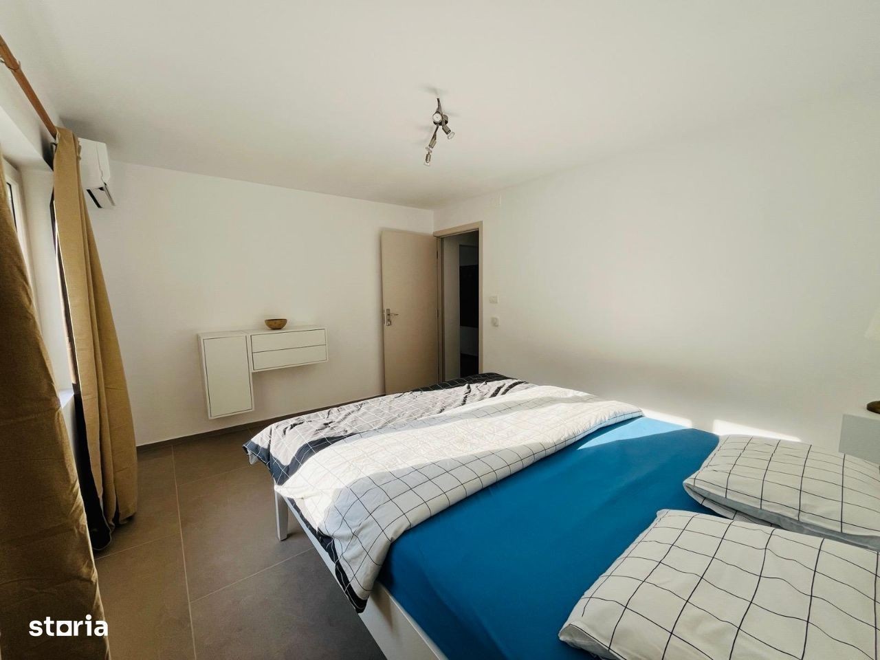 Apartament proaspăt renovat de înaltă calitate, cu pereți de rigips, geamuri termopan dublu canat, încălzire în pardoseală, complet mobilat cu mobilier nou și complet utilat cu electrocasnice noi și echipamente noi, cu o suprafață totală aproximativă de