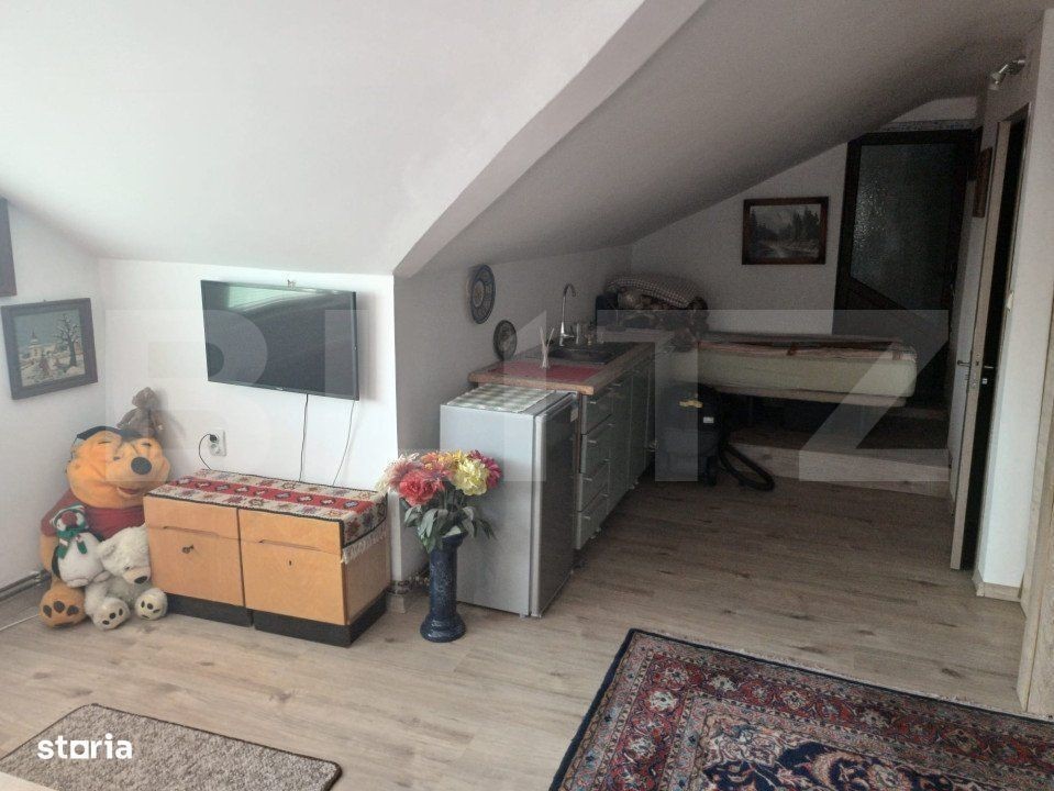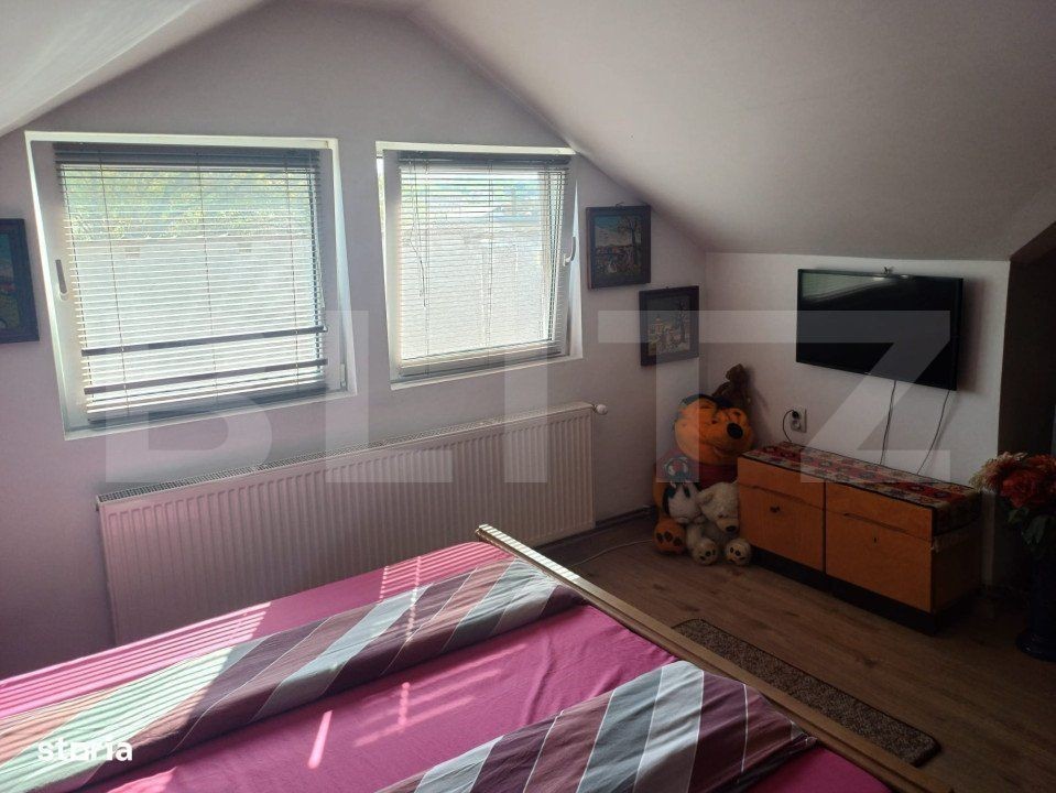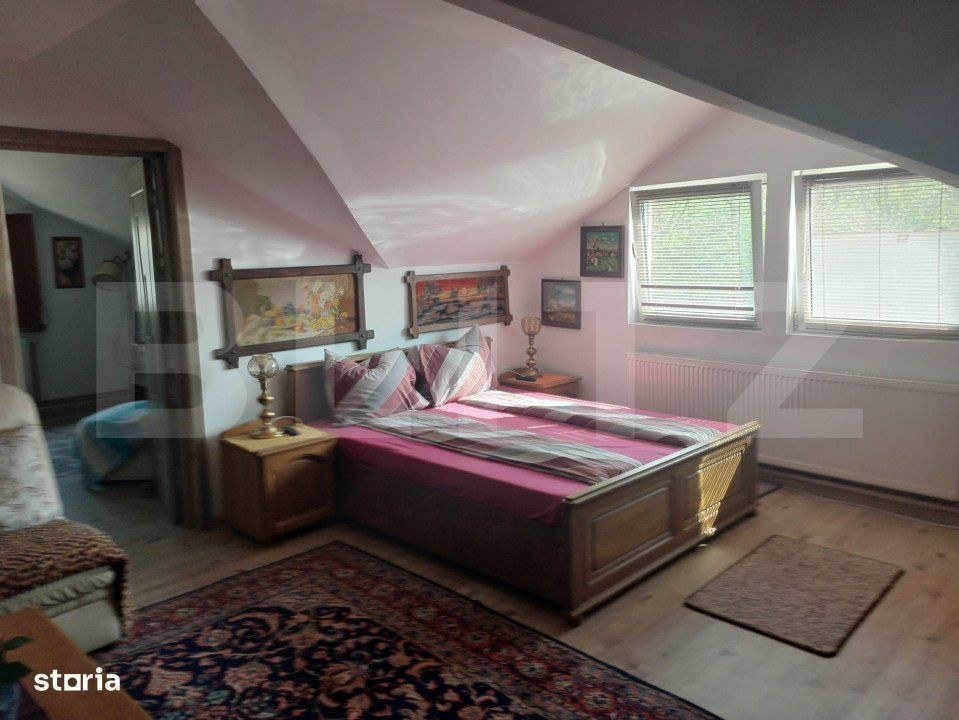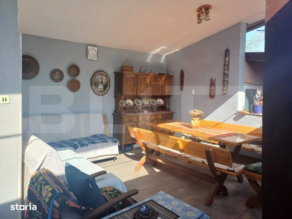 Descoperiti oportunitatea unica de a deveni proprietarul unei case de vis in Turda, o locatie care combina perfect intimitatea unui camin linistit cu accesul facil la facilitatile urbane esentiale. Aceasta proprietate impresionanta, recent renovata, este ideala atat pentru a fi transformata intr-o pensiune primitoare, cat si pentru a gazdui doua familii, datorita designului sau inteligent si spatiului generos. Caracteristici Remarcabile: Spatiu Generos: Cu 6 camere spatioase si 5 bai bine echipate, aceasta casa ofera confortul si intimitatea de care aveti nevoie. Facilitati Exterioare: Un garaj spatios cu bucatarie de vara si 2 cu baie adauga valoare si functionalitate curtii dumneavoastra, ideal pentru petrecerile in aer liber si momentele de relaxare. Renovare de Top: Casa a fost recent renovata, beneficiind de incalzire centrala pe gaz, finisaje moderne si un design interior care imbina eleganta cu functionalitatea. Beneficii Aditionale: Gradina Vasta: Cu o gradina de 270 metri patrati, aveti spatiul perfect pentru gradinarit, jocuri in aer liber sau pur si simplu pentru a va bucura de frumusetea naturii. Spatiu de Depozitare: Cele 2 beciuri ofera ample posibilitati de depozitare, fie ca este vorba de vinuri, conserve sau echipamente. Localizare Ideala: Aflata in proximitatea parcului din Turda Noua, langa spital si Scoala Generala numarul 2, casa beneficiaza de o pozitionare strategica, oferind acces usor la zonele de interes ale orasului. Flexibilitate si Confort: Potrivita pentru Diverse Utilizari: Fie ca doriti sa o transformati intr-o pensiune de succes sau pentru familia dvs., casa ofera flexibilitatea necesara pentru a se adapta la planurile dumneavoastra. Parcare Generoasa: Curtea vasta poate gazdui pana la 5 masini, eliminand orice grija legata de spatiul de parcare pentru dumneavoastra si oaspetii dumneavoastra. Detalii Tehnice: Suprafata Construita: 360 metri patrati de spatiu bine planificat, proiectat pentru a maximiza confortul si functionalitatea. Gradina: 270 metri patrati, oferind un sanctuar verde privat, perfect pentru relaxare si activitati in aer liber. Pentru a descoperi cum aceasta proprietate remarcabila poate deveni noua dumneavoastra casa sau o investitie profitabila, va invitam sa ne contactati. Nu pierdeti ocazia de a vizita si, eventual, de a achizitiona aceasta casa splendida in inima orasului Turda, un spatiu unde confortul, eleganta si functionalitatea se intalnesc armonios.