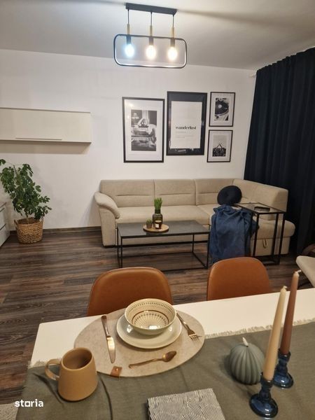 Apartamentul are 60 de m patrati si un balcon de 10 m patrati. Este complet mobilat si utilat. Este situat in zona linistita de case cu curte privata si acces pe baza de telecomanda. Se afla la etajul 2 din 3 in bloc cu lift si dispune de parcare, dressing si camara.