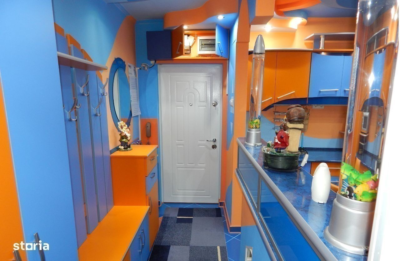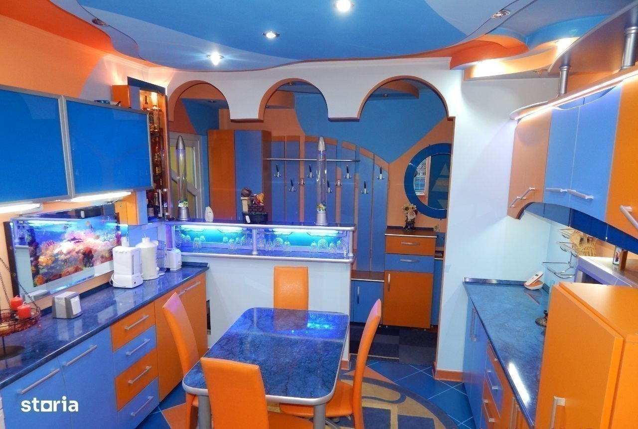 Vand apartament lux, cu 3 camere, tip A, cu suprafata de 94 m.p.,situat ultracentral in bloc Cicero,langa Piata mare, etaj 7/10, avand dubla orientare, imediat ocupabil.Imobilul este complet mobilat si utilat,compus din 3 camere, living, o bucatarie,camara, baie, balcon mare inchis cu termopan gresiat, faiantat, debara mare din care se poate face un dresing mare si 2 holuri.Apartamentul este complet renovat, finisajele si materialele sunt de cea mai inalta calitate, izolatie interioara de polistiren, instalatiile sanitare si electrice inlocuite in totalitate, tavanele din rigips cu modele deosebite, contorizare individuala apa calda si rece, incalzire (citire prin unde radio), dispune de interfon, de un ascensor nou, acces internet prin cablu si wirelless si un loc pentru beci la subsol, geamuri si usi interioare de termopan, usa de siguranta. Livingul si bucataria, mobilate si utilate,cu gresie si faianta,izolate cu polistiren in pardoseala, cu jaluzele verticale, dotate cu frigider, aragaz cu hota, cuptor cu microunde si alte aparate electrocasnice, camara pentru depozitare alimente cu geam separat pentru o temperatura optima. Baia este dotata cu mobilier, cada cu hidromasaj, masina de spalat. Camerele sunt mobilate, dotate cu parchet, covoare, geamuri teropan cu plase tip rulou, cu rolete, cu aer conditionat, cu TV led, peretii sunt finisati cu tencuiala, glet si vopsea lavabila, cu modele deosebite.Iluminatul este deosebit, multe spoturi in tavane de rigips,pe stil leduri oferind o economie la consumul de energie electrica. Stilul modern de apartament confera un design distinct, elegant si atragator.