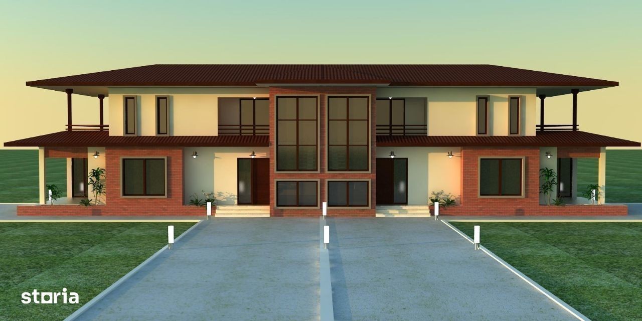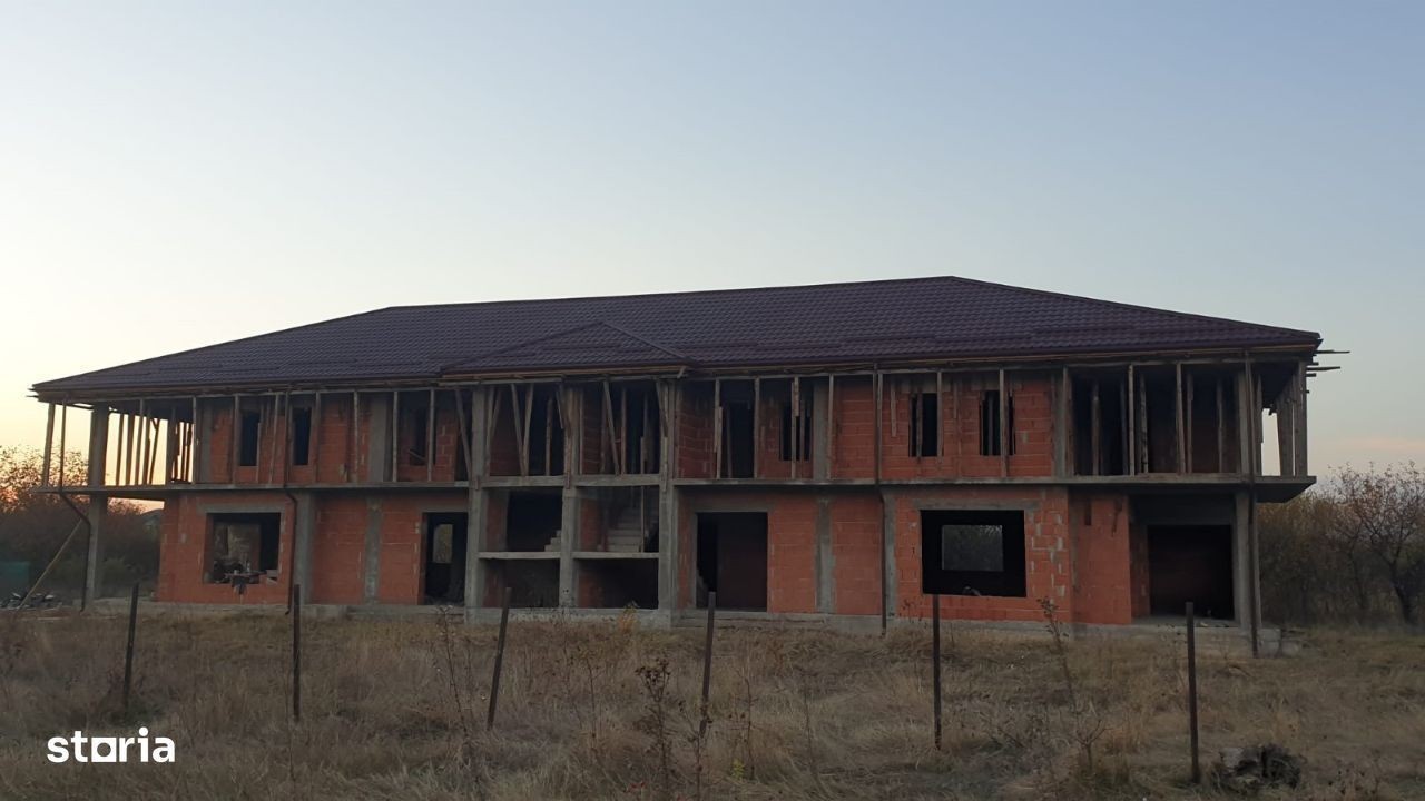 Oferim spre vanzare 2 case tip duplex Sp+P+1E. Suprafata 2 x 50mp (Sp) + 2 x 200mp (P+1E).,acoperis cu tigla metalica realizat in 2021. teren: 1100mp (drum de servitute inclus).Posibilitatea achizitionarii a inca unui teren similar,lipit de acesta, fara constructii, de la alt proprietar. utilitati:curent trifazic,gaze,apa curenta la 50m, asfalt la 100m (acces inclus in programul de asfaltare al comunei), proiect, toate aprobarile.Pentru mai multe detalii si vizionari va stam la dispozitie.Pret negociabil.