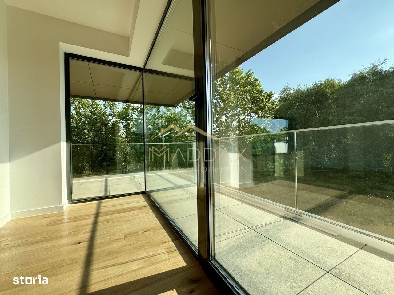 Maddax are plăcerea sa prezinte o vila excepțională situată in una din cele mai prestigioase zone, Pipera, in proximitatea străzii Erou Iancu Nicolae. Proprietatea se remarca prin locație, fiind împrejmuită de zona verde si lac, suprafețele mari vitrate cu tâmplărie Shuco, finisaje de cea mai înaltă calitate, pereți de interior din cărămida, parchet din lemn masiv, încălzire in pardoseala, gresie Marazzi, sanitare premium, fațada ventilată, placată cu Kinkler - Germania, grădina atent amenajată cu gazon si bambusi. Locuinta este echipata cu cele mai actuale echipamente, Smart Home, pompă de căldură, panouri fotovoltaice. Proprietatea este compartimentata astfel: - Parter: Living open space cu bucătăria si posibilitate de iesire in grădina cu vedere liberă spre lac, o baie de serviciu - Etaj 1: trei dormitoare, 3 dressing-uri si 2 bai, o terasa generoasa de jur împrejur cu vedere liberă spre lac - Etaj 2: zona de relaxare, dressing, o baie impresionanta cu posibilitate de iesire pe terasa. Locuința se vinde cu Bucătărie complet mobilata si utilată si dressing-uri montate pe comanda. Vila are in proprietate 2 locuri de parcare in subteran si boxa de depozitare. In prezent vila este inchiriata. Pentru mai multe detalii, suntem aici pentru tine.
