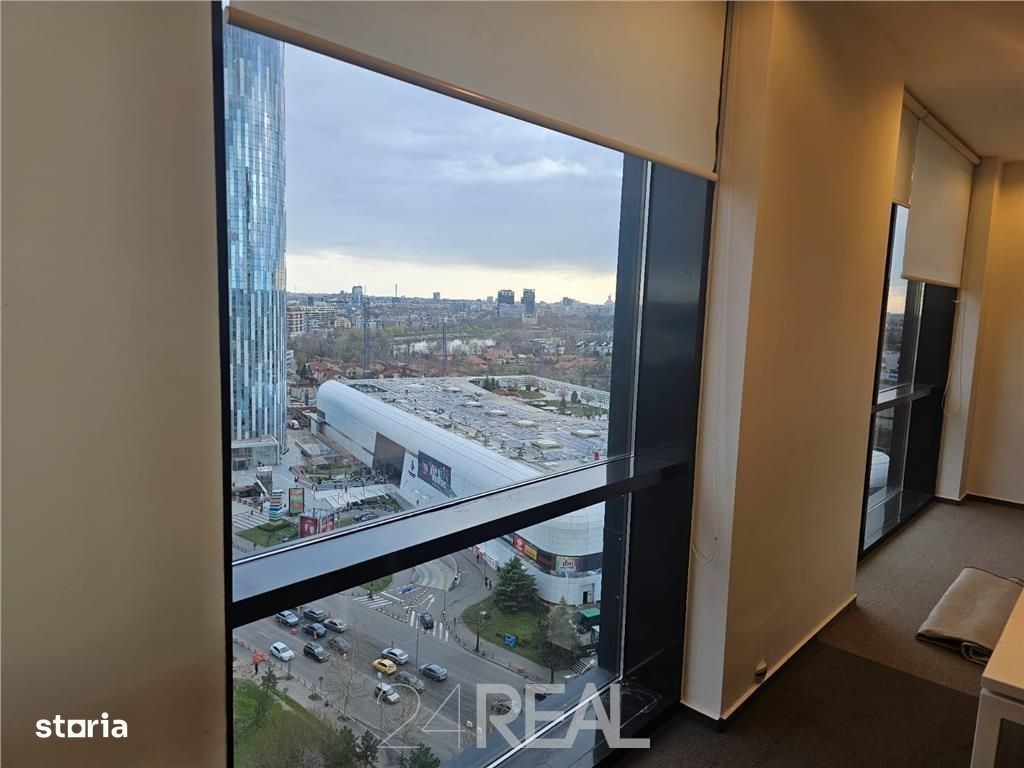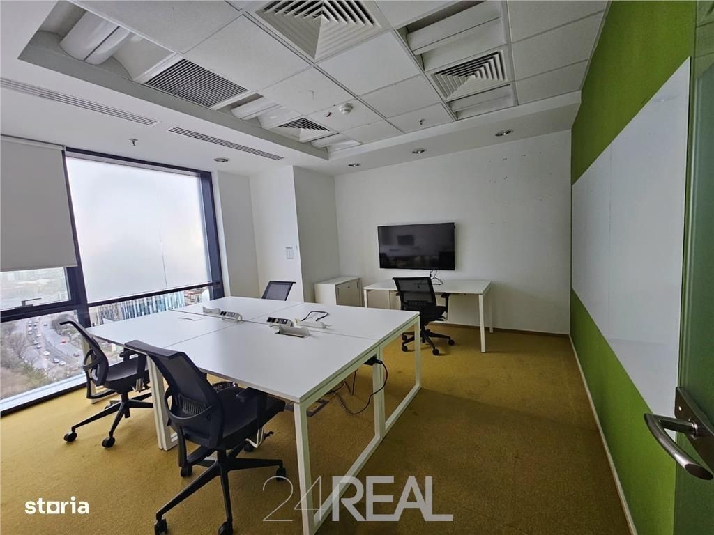 Spatiu de birouri - inchiriere - in cladire de birouri, clasa A, in zona Barbu Vacarescu, Aurel Vlaicu, sector 2, Bucuresti, cu urmatoarele dotari si finisaje: structura beton, perete lavabil, inaltime spatiu 2,7 m, plansee tavan casetat, beton armat, podea flotanta, mocheta. Dotari tehnice: bms, generator electric, cablare voce-date, prize voce-date, senzor incendii, parcare sistematizata, fatada de sticla, telefon, internet. Servicii disponibile in cladire: contorizare separata, acces cartela magnetica, supraveghere video, facility management, receptie, administratie, paza.