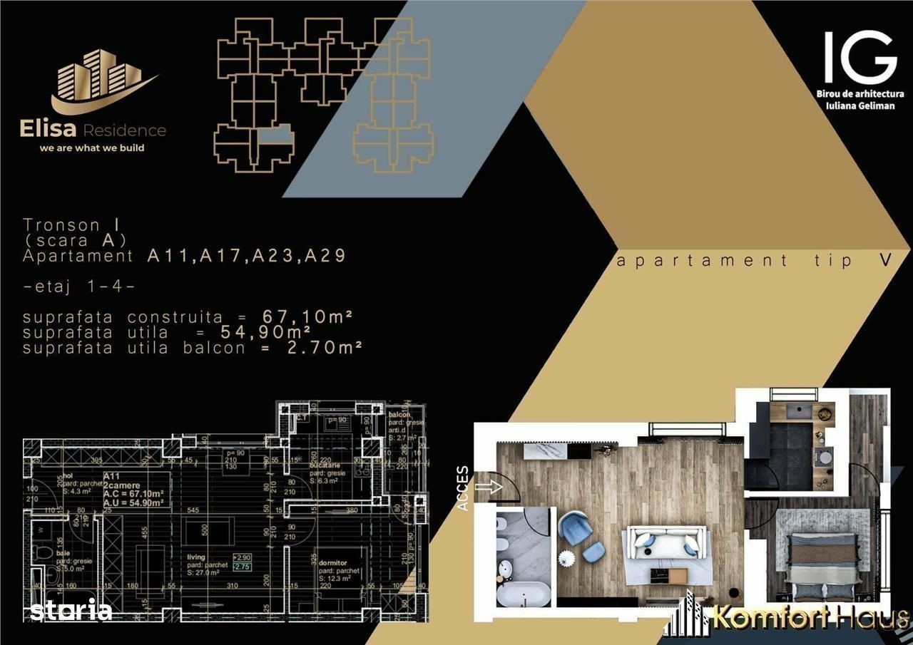 Compania Imobiliara KOMFORT HAUS va ofera spre vanzare, un apartament din cadrul complexului rezidential Elisa, complex situat pe Calea Moldovei 190, vis-a-vis de Pensiunea Moldavia. In cadrul complexului vor fi 165 de apartamente, impartite in 5 tronsoane, fiecare tronson avand regimul de inaltime P+4 ( cu lift) Apartamentul se livreaza la cheie, dispune de centrala termica individuala de apartament, aer conditionat, incalzire in pardoseala, balcon inchis cu termopan, gresie, faianta, parchet si are o suprafata utila de 57,7 mp. Pret apartament cu loc parcare 77.000 euro, la care se adauga TVA conform legislatiei in vigoare. Plata in lei la cursul BNR. Pentru detalii nu ezitati sa ne contactati! Tel.