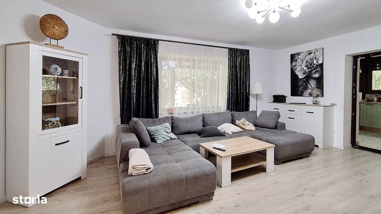 Ati accesat un imobil situat in cartierul Bartolomeu. LOCALIZARE: Apartamentul propus este pozitionat la parterul unei vile, in imediata apropiere a Blue Arena Sport, Lidl, Mega Image si a centrului comercial La Strada. COMPARTIMENTARE: Proprietatea este dispusa pe 4 camere, detine structura decomandata, foarte bine conceputa, din punct de vedere practic si are urmatoarea compartimentare: - holul de acces, acesta facand legatura intre cele 3 dormitoare, bucatarie, bai si zona de zi; - living-ul, care are o suprafata generoasa, detine o suprafata vitrata mare, din acesta facandu-se accesul catre bucatarie si terasa acoperita; - bucataria, care este inchisa, dotata si mobilata complet, dispune de electrocasnice incorporate, precum: frigider, plita, hota si cuptor electric; - dormitoarele, acestea fiind complet mobilate, dispun de suprafete generoase; - dormitorul matrimonial dispune de baie proprie si dresing; - baile, acestea sunt dotate cu cabine dus; - terasa acoperita. Apartamentul detine o suprafata de teren de 230 mp si dispune de peisagistica realizata. DOTARI: - usa metalica; - incalzire in pardoseala; - centrala termica; - tamplarie PVC, cu geam termopan; - boxa comuna; - gradina proprie. Tranzactionarea proprietatii se va face cu mobilierul aferent prezentei ofertari. IMPREJURIMI: Apartamentul este situat intr-o zona linistita, de case, accesul auto, pana la zona de centru a orasului, facandu-se in cca. 10 minute. In proximitatea imobilului exista statie de autobuz, diverse magazine, scoala si farmacii. Se accepta achizitionarea prin accesarea unui credit bancar; Comision intermediere 2%+TVA. NOTA: Informatiile prezentate reflecta situatia reala a proprietatii, fara a constitui o oferta contractuala. Aceste date au fost obtinute verbal, de la titularul de drept al imobilului. Structura acestei prezentari nu poate fi reprodusa, fara acordul scris al The Seller and Partners.