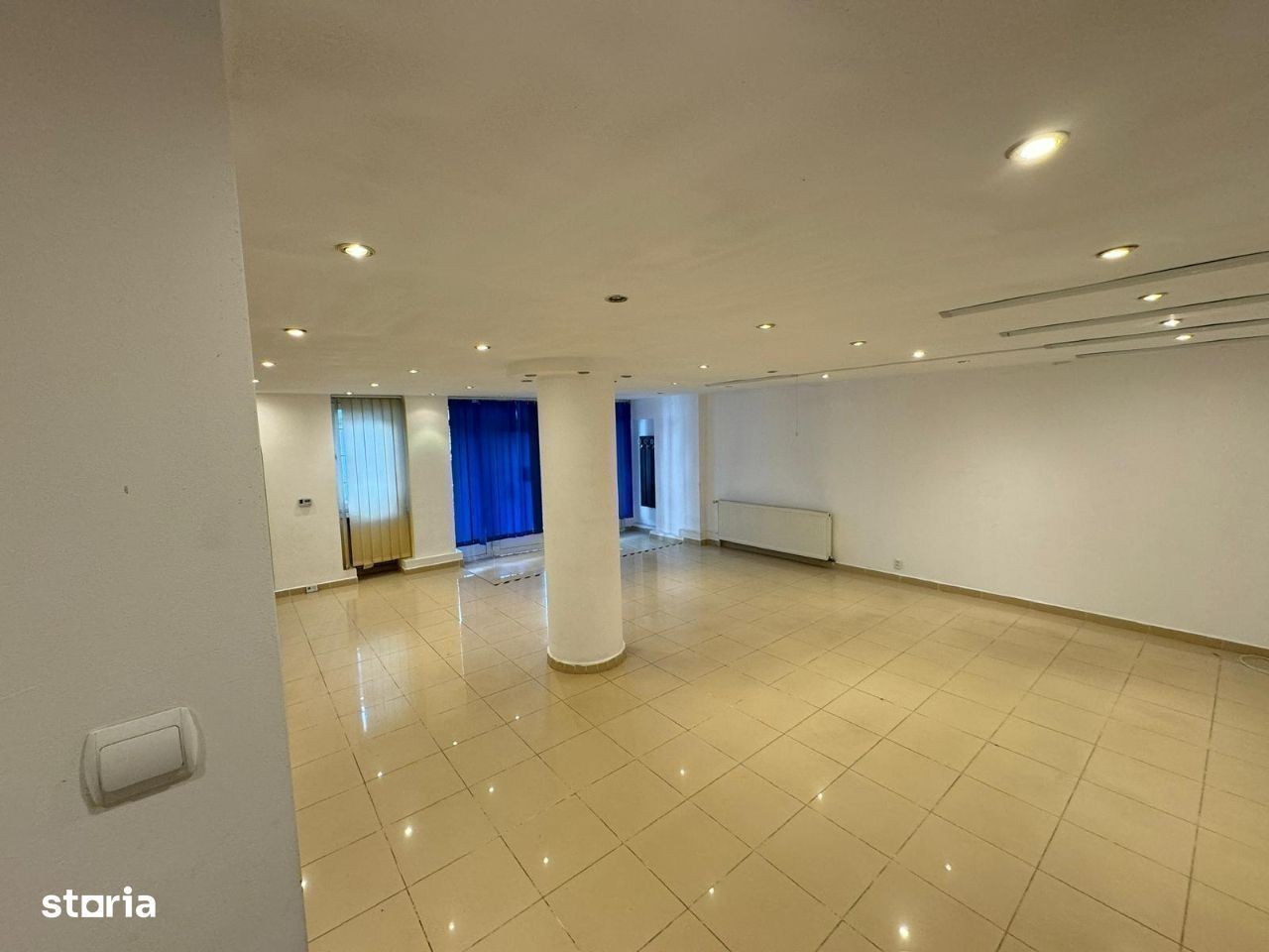 Se vinde un spațiu comercial/birouri situat într-o zonă centrală deosebită, în bloc solid din Brașov, cu o suprafață totală de 94,33 mp². Spațiul este compus din: Terasă acces (6,60 mp²) cu 7 trepte Birou principal (56,23 mp²)