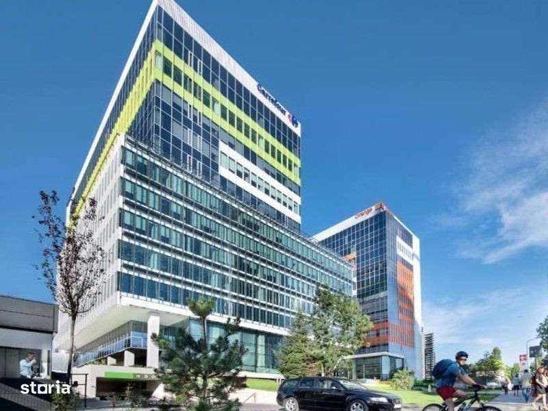 0% comision! Space planning gratuit! TRANSPORT PUBLIC: Metrou 6.00 min.; RATB/tramvai 1.00 min. TIP DISPUNERE: Open space Partitionat REGIMUL PARCARILOR COTA ALOCARE: 1 loc de parcare per 100.0mp inchiriati SUBTERAN - NORMAL: 834 locuri 140 EUR/spatiu/luna DOTARI SI FINISAJE Informatii imobil: cortina de sticla, ferestre fixe, ferestre care se deschid, min 2,7m pina la tavan, (2.85m inaltime), tavan suspendat (intensitate lumina 500.00 lucsi), podea inaltata, restaurant/cafenea, lift de marfa, facilitati conferinte, paza 24h, CCTV, utilitati pentru chicineta Specificatii tehnice: (o priza dubla pentru mp inchiriati), BMS, generator pentru sisteme vitale, generator pentru sisteme chirias, hidranti, acces control, internet fibra optica Climatizare: sistem 4 tevi, Chilled Beam Coling, aport aer proaspat (36 m3 per ora), centrala termica Utilitati - Utilitati generale (CATV) Dotari - Diverse (Senzor de fum) Servicii - Servicii imobil (Paza)