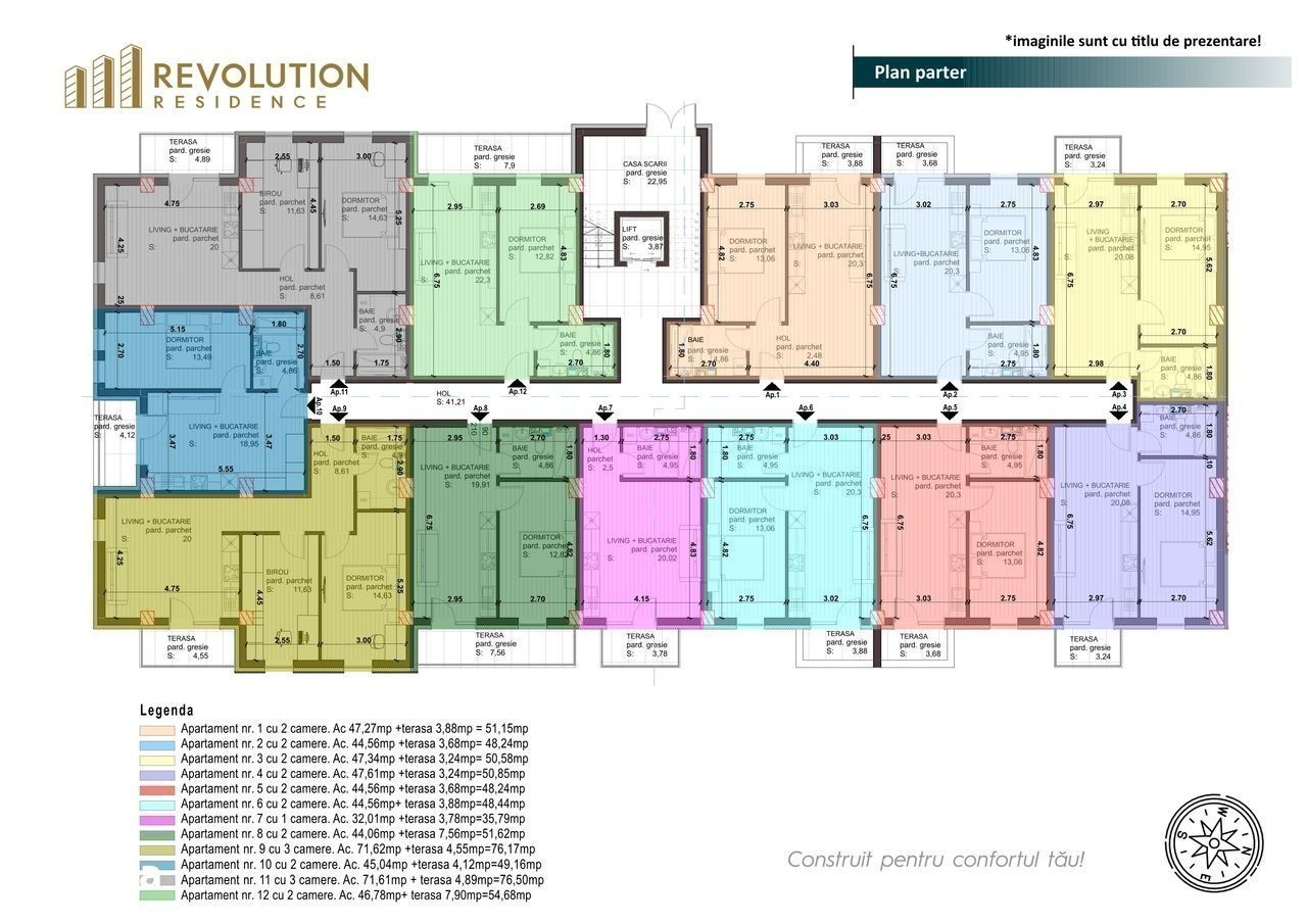 Descopera cel mai nou complex rezidential de pe str. Regele Ferdinand 77E, Baia Mare, un proiect marca Revolution Residence. Va propunem spre vanzare apartamente cu 2 si 3 camere, avand suprafete cuprinse intre 40.05 mpc si 75.26 mpc, plus terasa aferenta cu suprafata cuprinsa intre 11 mpc si 26.62mpc.