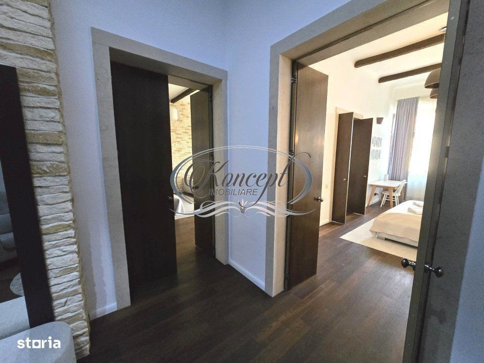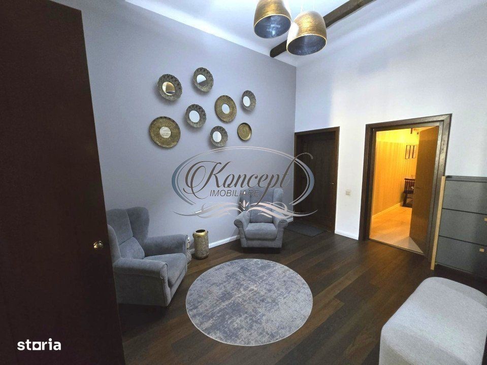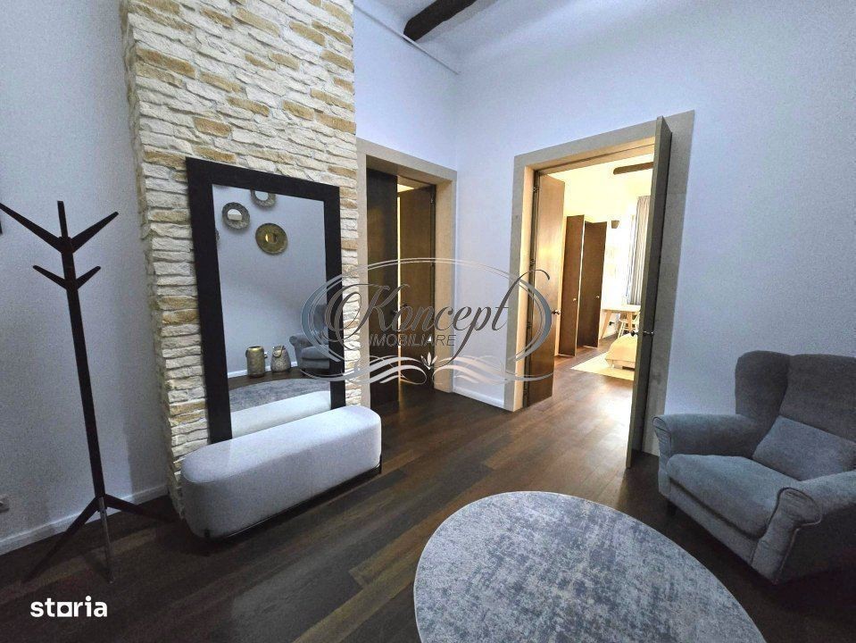 Koncept Imobiliare va propune spre inchiriere un apartament unicat, aflat in centrul vechi al Clujului, in Piata Unirii. Acesta este situat la etajul 2 al unei cladiri monument cu 2 niveluri, avand o suprafata utila de 100 mp si fiind compartimentata astfel: hol spatios, dormitor, living, bucatarie si baie. Apartamentul a fost renovat complet, toate instalatiile electrice si sanitare fiind noi, dispune de ferestre si usi din lemn de stejar cu geam termopan, parchet din lemn masiv, iar ca utilitati beneficiaza de centrala termica proprie, hota, plita, cuptor, frigider, masina de spalat si semineu. Amplasamentul in inima orasului, compartimentarea gandita si proiectul foarte ingenios gandit pana in cel mai mic detaliu, recomanda apartamentul pentru un o persoana sau un cuplu. Pentru Informatii complete, pentru programarea unei vizionari sau pentru a afla oferta noastra completa, nu ezitati sa ne contactati prin telefon, e-mail sau la sediul agentiei noastre, str. Aviator Badescu, nr. 19, Cluj-Napoca.