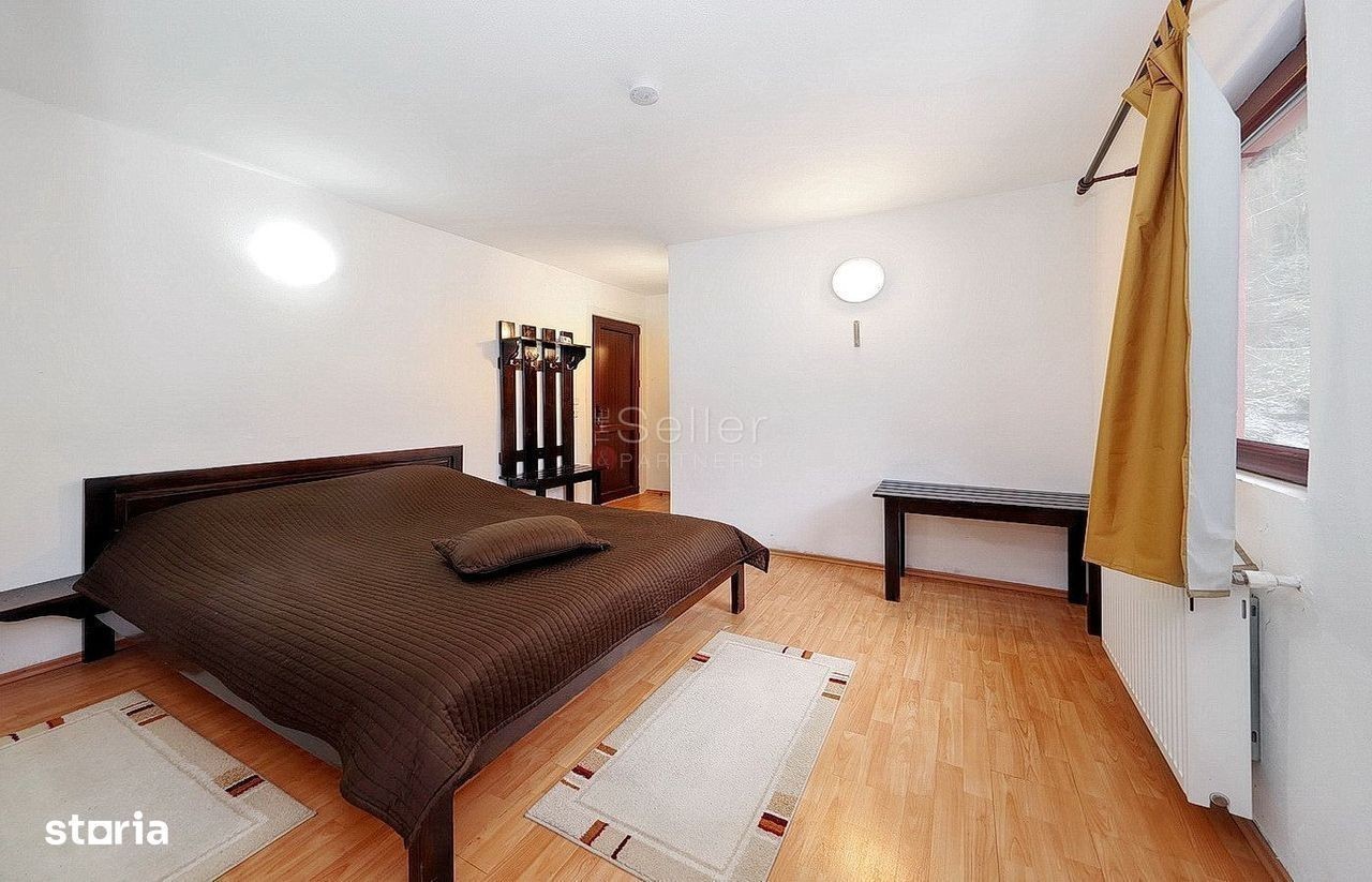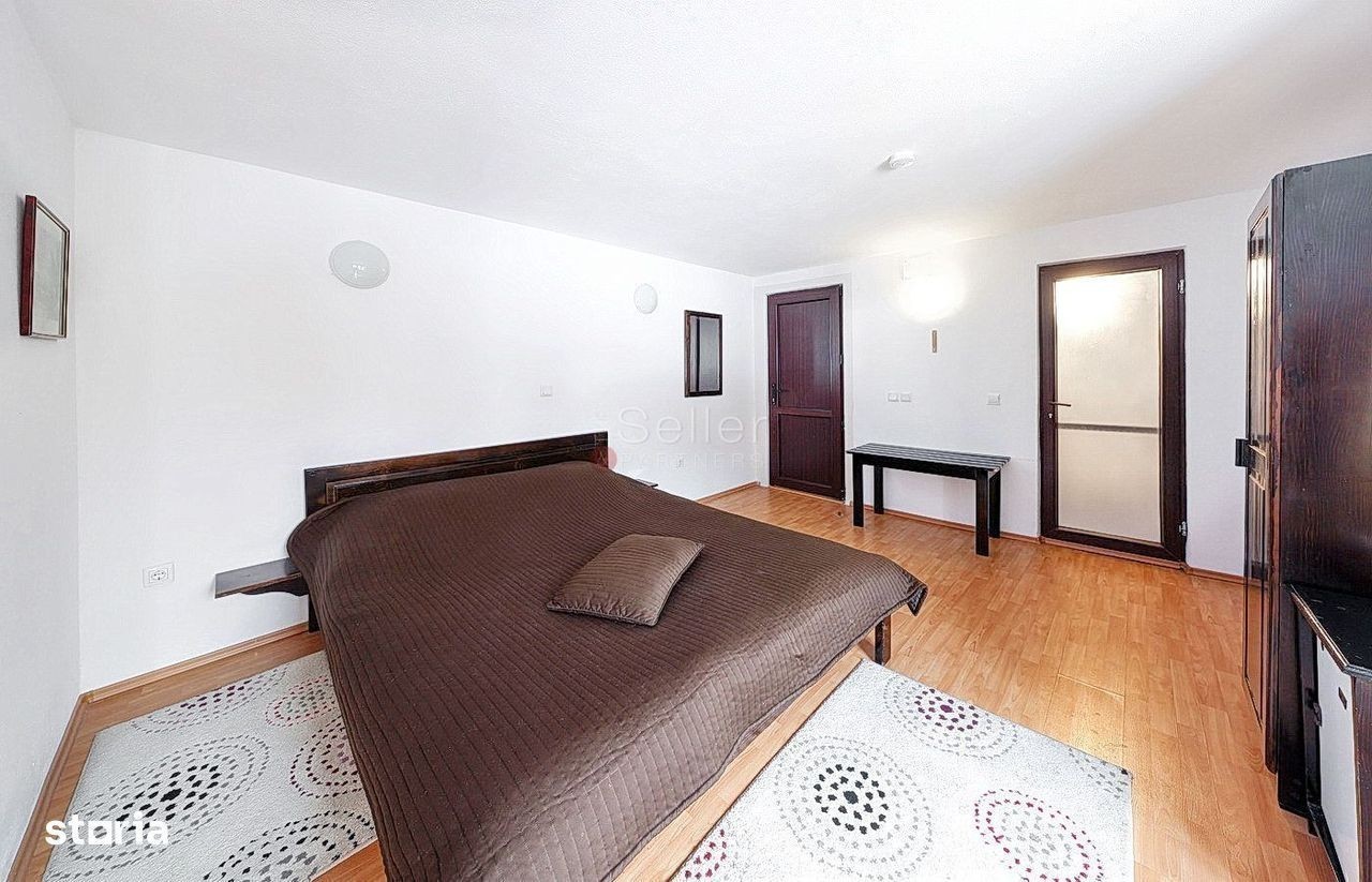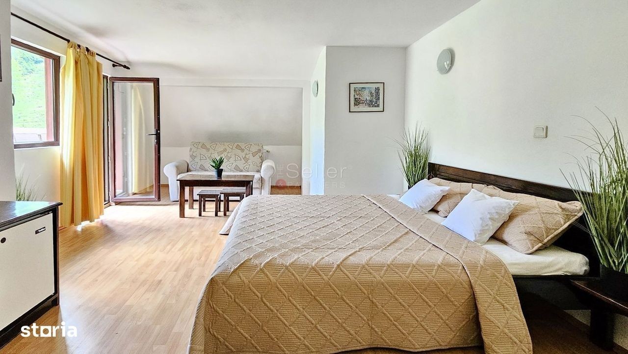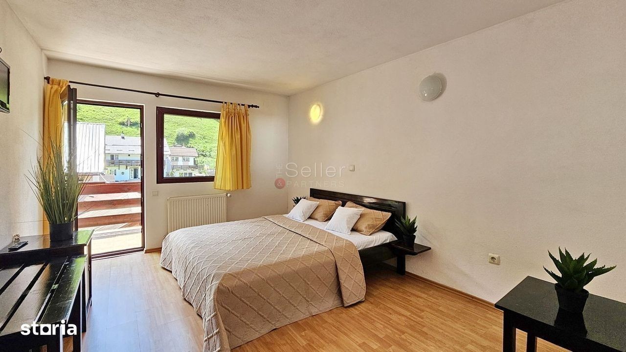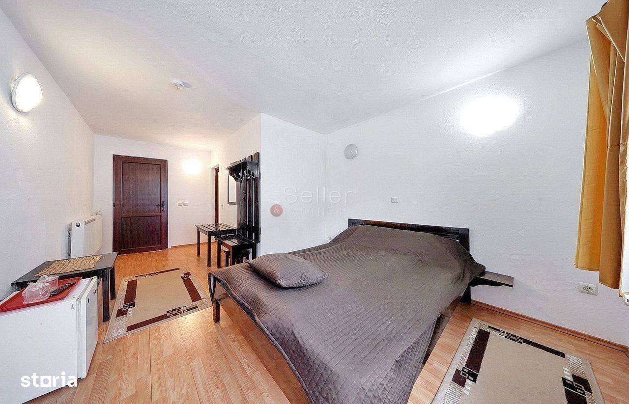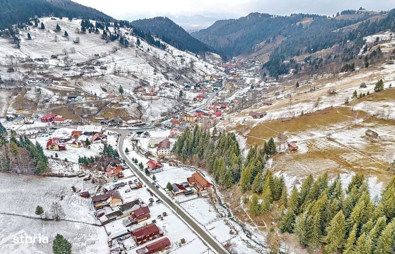 Ati accesat un imobil situat in zona Moieciu de Sus. LOCALIZARE: Proprietatea propusa este situata in Moieciu de Sus, in centrul localitatii, in imediata apropiere a Scolii Gimnaziale. Amplasata intr-o zonă montana deosebita, cu un rau ce curge prin spatele proprietatii, aceasta beneficiaza de peisaje spectaculoase si acces facil la atractii turistice locale. COMPARTIMENTARE: Dispusa pe un regim de inaltime P+1+M, proprietatea detine 12 incaperi, dintre care 9 camere duble, cu baie proprie si balcon, 1 apartament format din 2 camere, cu baie proprie, grup sanitar si balcon. Din punctul de vedere al compartimentarii, aceasta este dispusa astfel: PARTER: - holul, din care se face accesul catre incaperile de la parter si accesul la etaj; - terasa inchisa; - salonul, care este dotat cu o masa de biliard; - living-ul, cu o suprafata generoasa, dispune de acces la bucatarie si, totodata, de acces spre zona de barbeque; - 2 grupuri sanitare; ETAJ: - acest nivel este compus din 4 camere duble si 1 apartament cu doua incaperi, cu bai proprii si balcon, de unde se poate admira privelistea deosebita, spre munti si imprejurimi. MANSARDA: - patru dormitoare, fiecare avand baie proprie; - trei dintre aceste dormitoare detin acces la balcon; DOTARI: - 2 centralale termice, pe gaz; - tamplarie PVC; - acoperis din lemn, cu invelitoare din tabla; - terasa exterioara; - camera tehnica; - 8 locuri de parcare, in curte; - fosa ecologica; - foisor cu zona pentru barbeque. AVANTAJE: Potrivita pentru afaceri turistice, avand potential de venituri constante; Accesibilitate: Drumuri asfaltate; Investitie sigura: Zona montana in continua dezvoltare turistica, asigurand o apreciere constanta a valorii proprietatii. Tranzactionarea proprietatii se va face cu mobilierul aferent prezentei ofertari.
