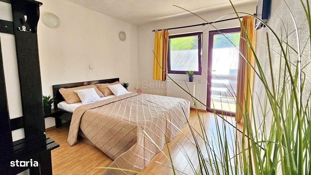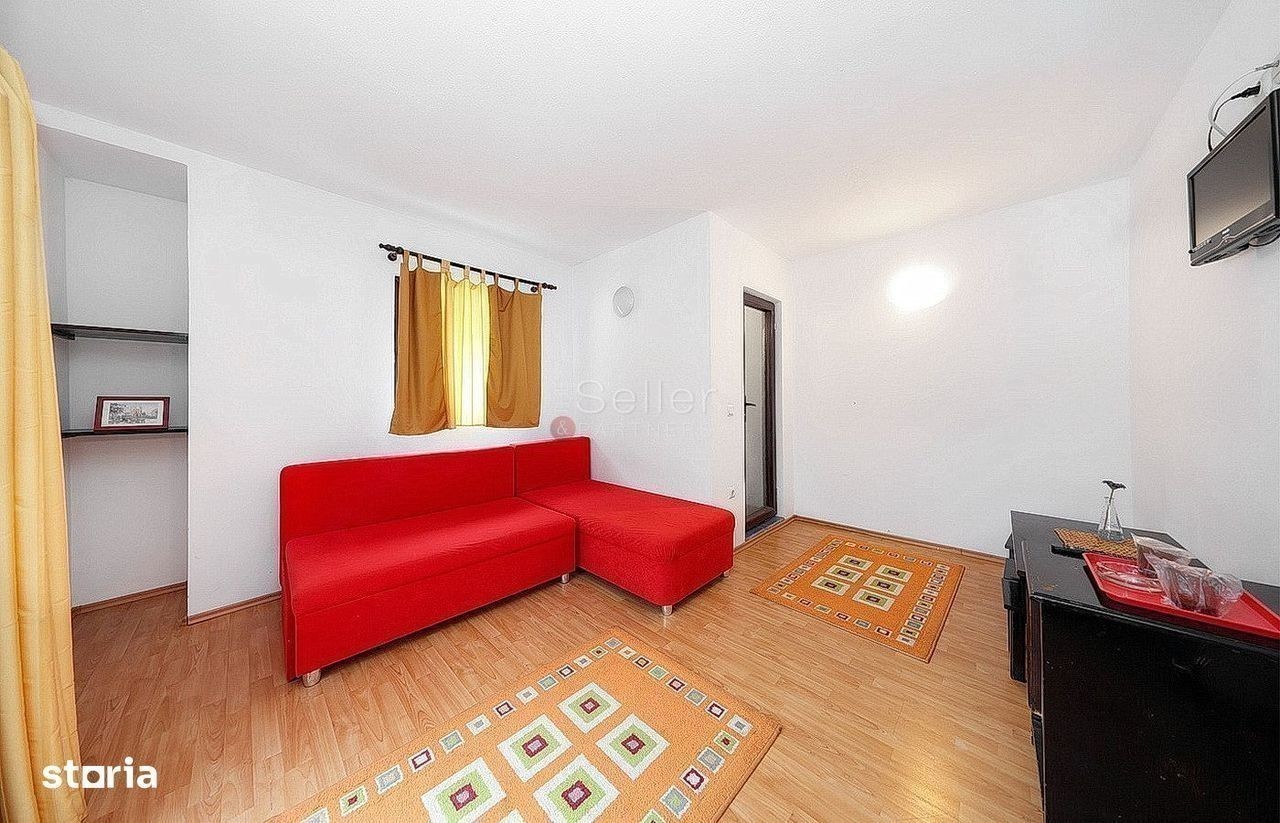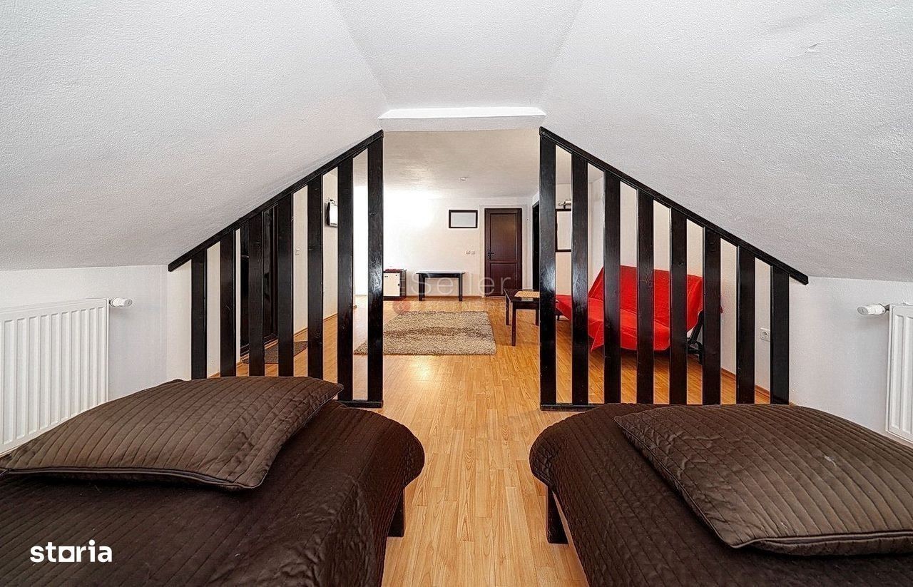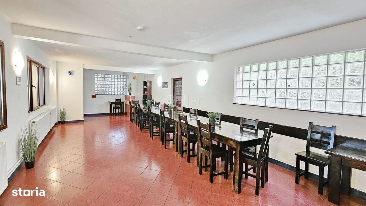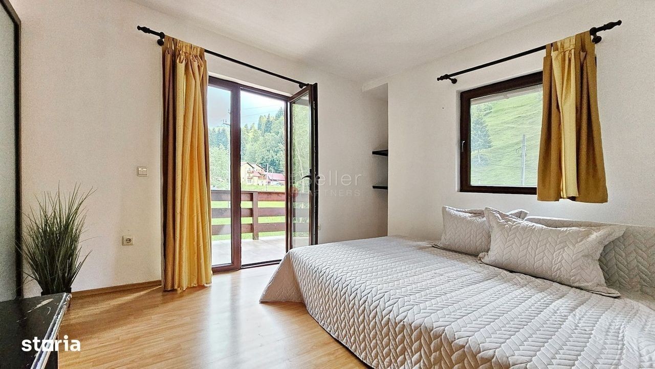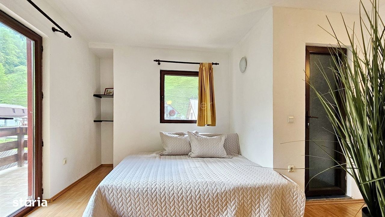 Ati accesat un imobil situat in zona Moieciu de Sus. LOCALIZARE: Proprietatea propusa este situata in Moieciu de Sus, in centrul localitatii, in imediata apropiere a Scolii Gimnaziale. Amplasata intr-o zonă montana deosebita, cu un rau ce curge prin spatele proprietatii, aceasta beneficiaza de peisaje spectaculoase si acces facil la atractii turistice locale. COMPARTIMENTARE: Dispusa pe un regim de inaltime P+1+M, proprietatea detine 12 incaperi, dintre care 9 camere duble, cu baie proprie si balcon, 1 apartament format din 2 camere, cu baie proprie, grup sanitar si balcon. Din punctul de vedere al compartimentarii, aceasta este dispusa astfel: PARTER: - holul, din care se face accesul catre incaperile de la parter si accesul la etaj; - terasa inchisa; - salonul, care este dotat cu o masa de biliard; - living-ul, cu o suprafata generoasa, dispune de acces la bucatarie si, totodata, de acces spre zona de barbeque; - 2 grupuri sanitare; ETAJ: - acest nivel este compus din 4 camere duble si 1 apartament cu doua incaperi, cu bai proprii si balcon, de unde se poate admira privelistea deosebita, spre munti si imprejurimi. MANSARDA: - patru dormitoare, fiecare avand baie proprie; - trei dintre aceste dormitoare detin acces la balcon; DOTARI: - 2 centralale termice, pe gaz; - tamplarie PVC; - acoperis din lemn, cu invelitoare din tabla; - terasa exterioara; - camera tehnica; - 8 locuri de parcare, in curte; - fosa ecologica; - foisor cu zona pentru barbeque. AVANTAJE: Potrivita pentru afaceri turistice, avand potential de venituri constante; Accesibilitate: Drumuri asfaltate; Investitie sigura: Zona montana in continua dezvoltare turistica, asigurand o apreciere constanta a valorii proprietatii. Tranzactionarea proprietatii se va face cu mobilierul aferent prezentei ofertari.