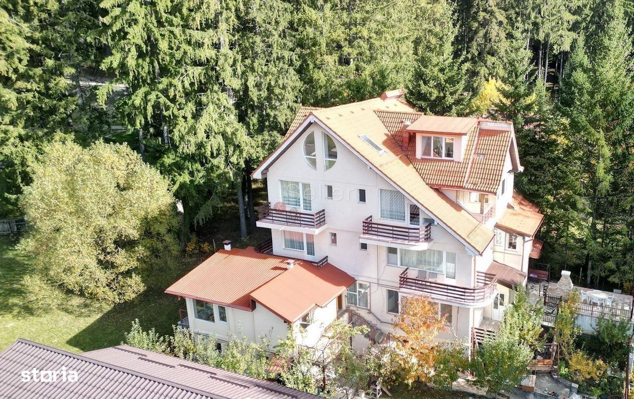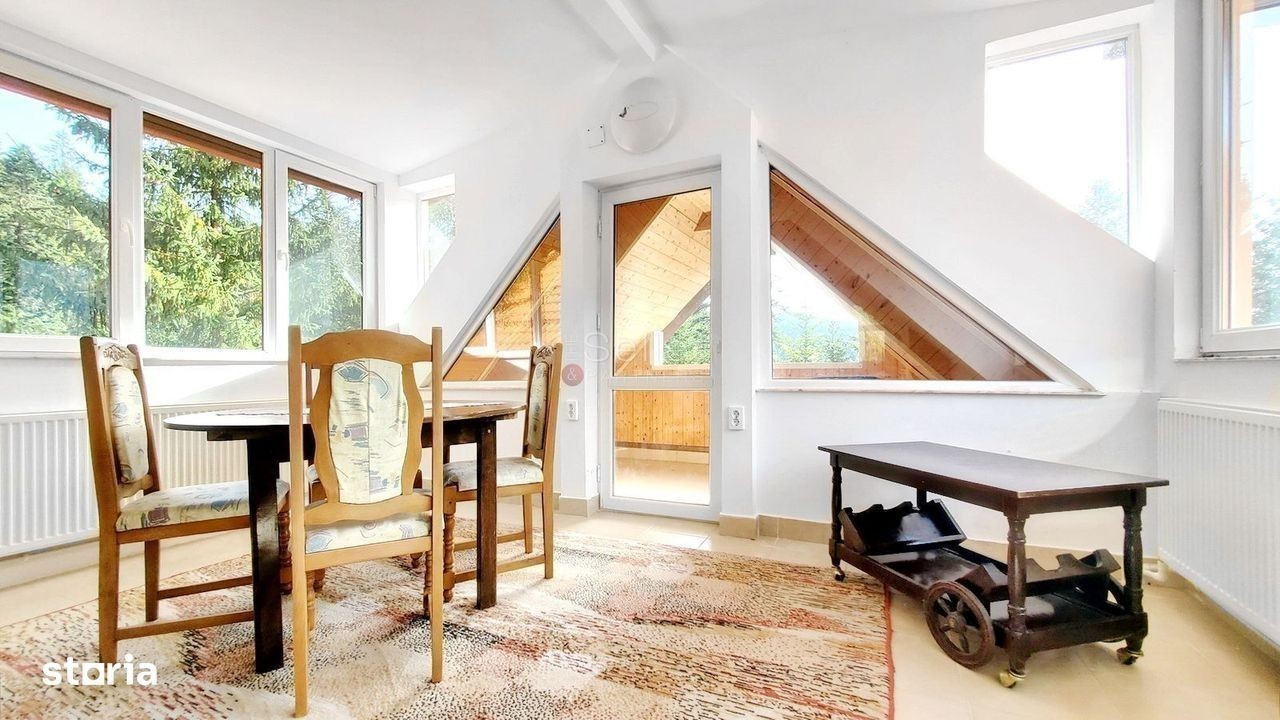 Ati accesat un imobil situat in Busteni, cartierul Zamora, strada 13 Septembrie nr.15. LOCALIZARE: Imobilul este pozitionat la liziera padurii, beneficiind de o priveliste panoramica, atat catre muntii Bucegi cat si catre padurea limitrofa. Aceasta pozitionare poate transforma locatia in cea mai frumoasa locuinta de vacanta. In plus, la doar cativa kilometri distanta se afla mai multe atractii turistice, cum ar fi partile de schi, traseele montane si zonele de drumetii. Imobilul este construit din materiale de calitate si este complet utilat cu toate facilitatile necesare pentru a va oferi o experienta confortabila si memorabila. Exista o terasa spatioasa unde va puteti relaxa si bucura de priveliste. Aceasta poate fi locul perfect pentru a petrece timp cu familia sau prietenii sau pentru a scapa de agitatia orasului si a va bucura de natura. Chiar si in timpul iernii, cand muntii Bucegi sunt acoperiti de zapada, acest loc ramane un refugiu perfect si o oaza de liniste si pace. COMPARTIMENTARE: Proprietatea este dispusa pe 3 camera, avand o o suprafata totala de 111,9 mp, iar dispunerea este urmatoarea: - Holul de acces cu scara interioara ce apartine apartamentului si face legatura intre etajul 2 si mansarda; -Livingul generos de 27,4 mp, ce ofera acces catre balconul tip logie de 8,4 mp; -Cele doua dormitoare echipate fiecare cu baie si veranda proprie; - Chitchineta si debara; DOTARI: - centrala termica; - tamplarie PVC, cu geam termopan; Tranzactionarea proprietatii se va face cu mobilierul aferent prezentei ofertari. Apartamentul beneficiaza si de acces la o zona comuna de terasa amenajata pentru gratar. Comision Intermediere 0% IMPREJURIMI: Apartamentul este situat intr-o zona de vile accesul fiind unul facil. Accesul auto, pana la zona de centru a orasului se poate face in cca. 5 minute. Se accepta achizitionarea prin accesarea unui credit bancar; Pentru informatii suplimentare, broker-ul care administreaza aceasta oferta, va sta la dispozitie.